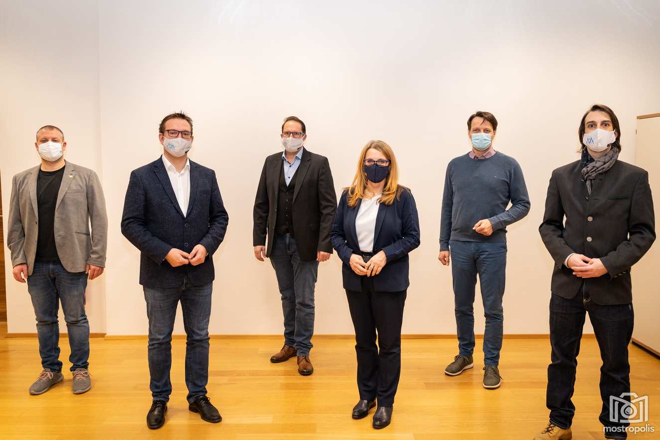 Foto © Stadtgemeinde Amstetten, v.l.n.r.: Vzbgm. Dominic Hörlezeder, Bgm. Christian Haberhauer, Vzbgm. Markus Brandstetter, LR Ulrike Königsberger-Ludwig, Vzbgm. Mag. Gerhard Riegler u. GR Christopher Hager