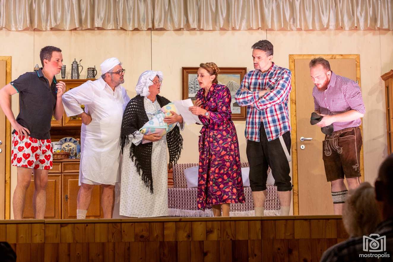 In ihren Rollen blühen Max Strauß als Alt-Althammer Bauer und Großvater Sixtus sowie Wolfgang Grafeneder als Gendarm, Pfarrer und Nachbar Gangl förmlich auf. Ihnen um nichts nach stehen Herbert Kassberger und Margit Payreder als Felix und Leni Althammer, Leopold Latschbacher als Sohn Flori, Jonathan Schmutz als Knecht Franzl, Anna Schmutz als Großmutter Althammer, Ruth Schmutz als Nachbarstochter Evi, Claudia Aigner als Kellnerin Kathi aus Wien sowie Erika Huber, ein Besuch aus Wien.