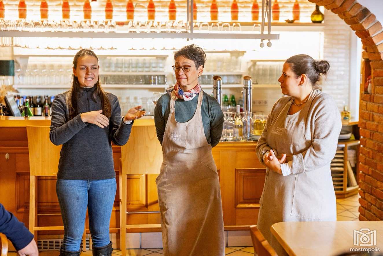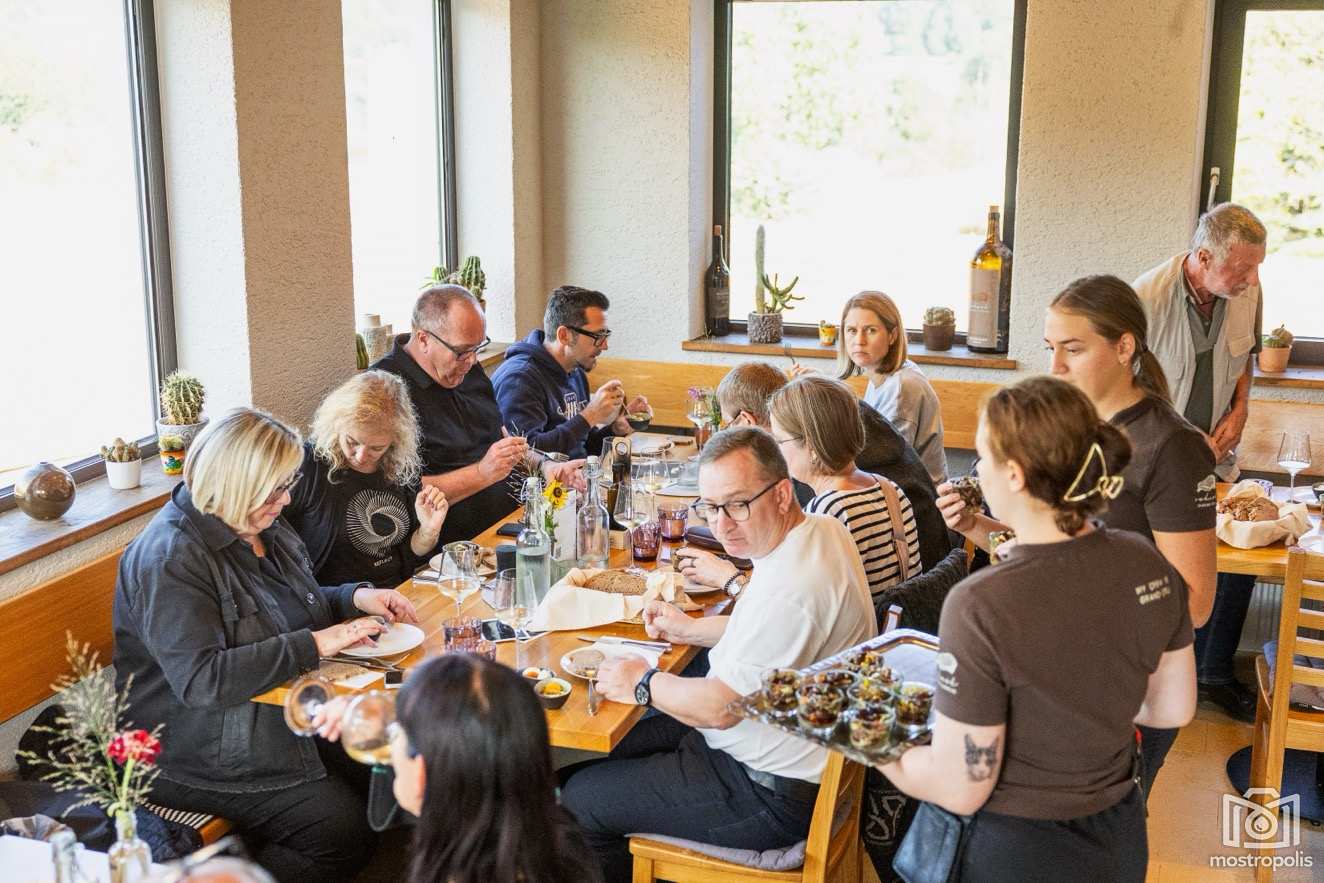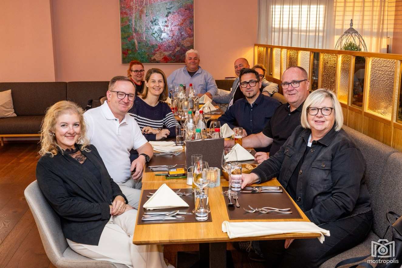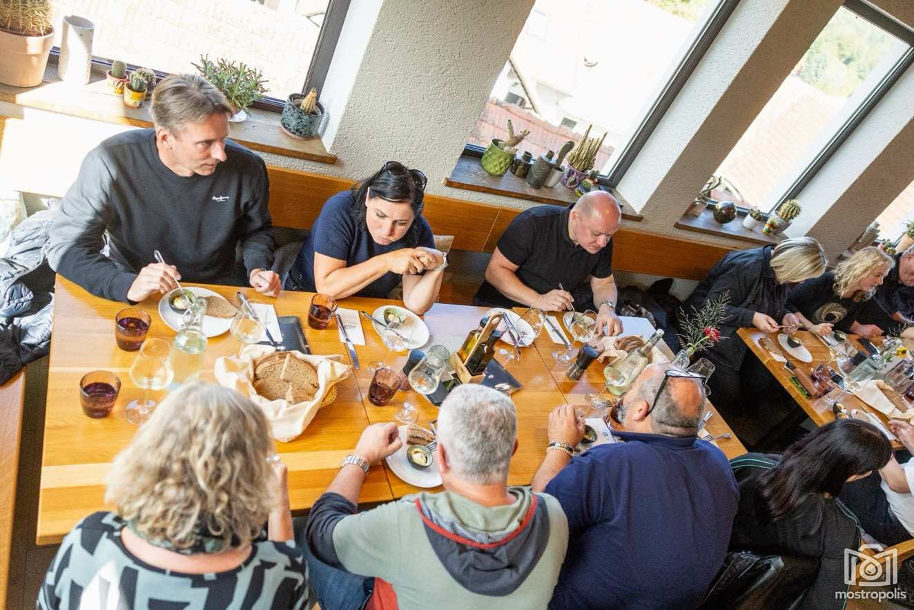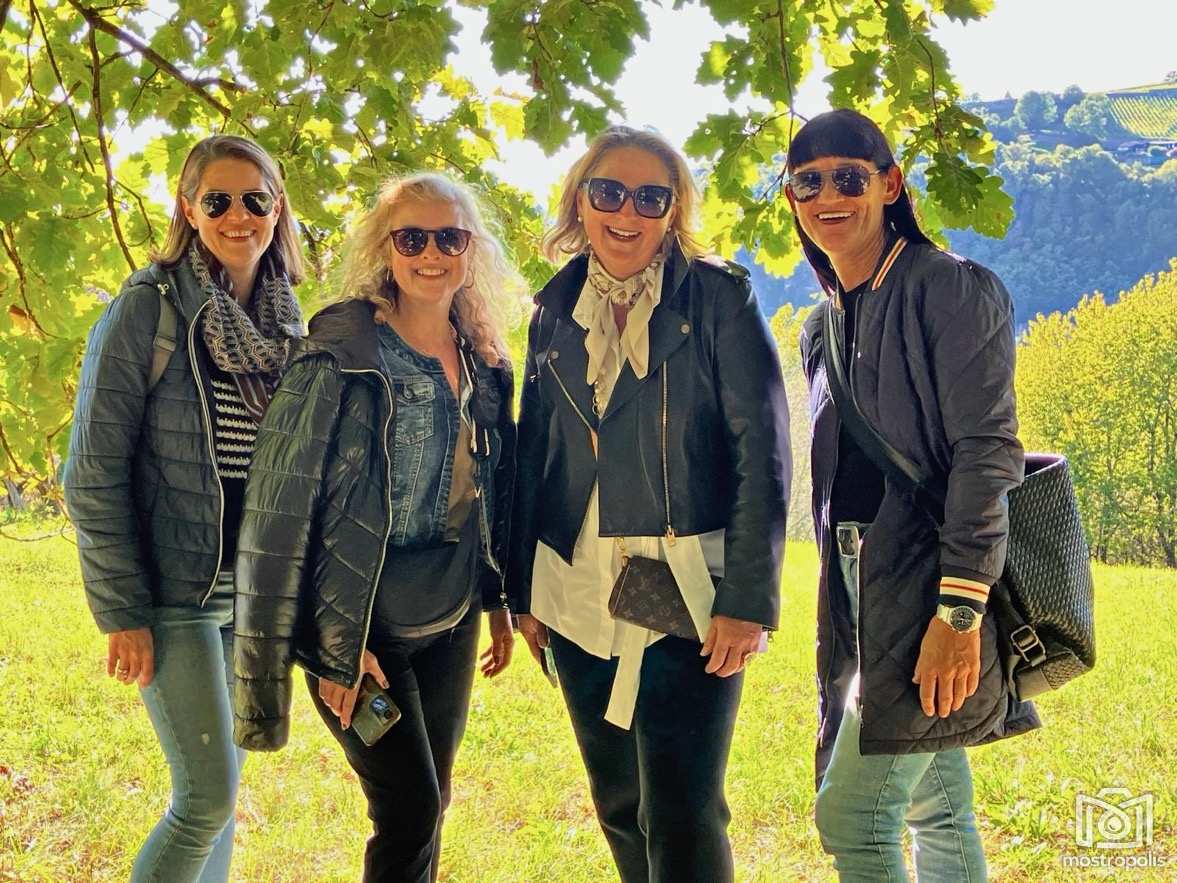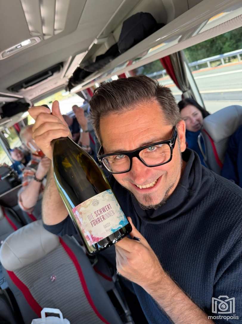 Perfekt organisiert von Jutta Koczirz ging es mit leichten Startschwierigkeiten zum Winzerfrühstück und Weinverkostung bei den Schwertführerinnen in Sooss, wo uns Kellermeisterin Kerstin und Heurigenchefin Sigrid das Weingut bzw. die Produktion sowie den Heurigen vorstellten. Bescheiden im Hintergrund Christine und Johann Schwertführer, die nach wie vor ihren beiden Töchtern nicht nur mit Rat, sondern immer noch mit Tat zur Seite stehen. Im Anschluss ging es weiter nach Riegersburg, wo uns Silvia Bernhart vom gleichnamigen Weingut mit Buschenschank mit einer üppigen Winzerjause samt Weinverkostung bereits erwartete. Gestärkt und gut gelaunt checkte dann die illustre Runde im wunderschönen Genusshotel Riegersburg ein. Die freie Zeit nutzten einige zum Spazieren, Kuscheln, Weitertrinken oder Wellnessen. Am Abend gab es dann ein 5-gängiges Menü mit Weinbegleitung, bestens kommentiert von Sommelier Lukas Fleck. Beeindruckt hat sie alle auch das Kennenlernen von Edi, dem singenden Baggerfahrer auf Feldkirchen bei Mattighofen, der mit seinen Gesangseinlagen alle begeisterte. Hier gibt's ein kleines VIDEO dazu! Mit launigem Fachsimpeln bis nach Mitternacht fand der erste Tag einen gemütlichen Ausklang.