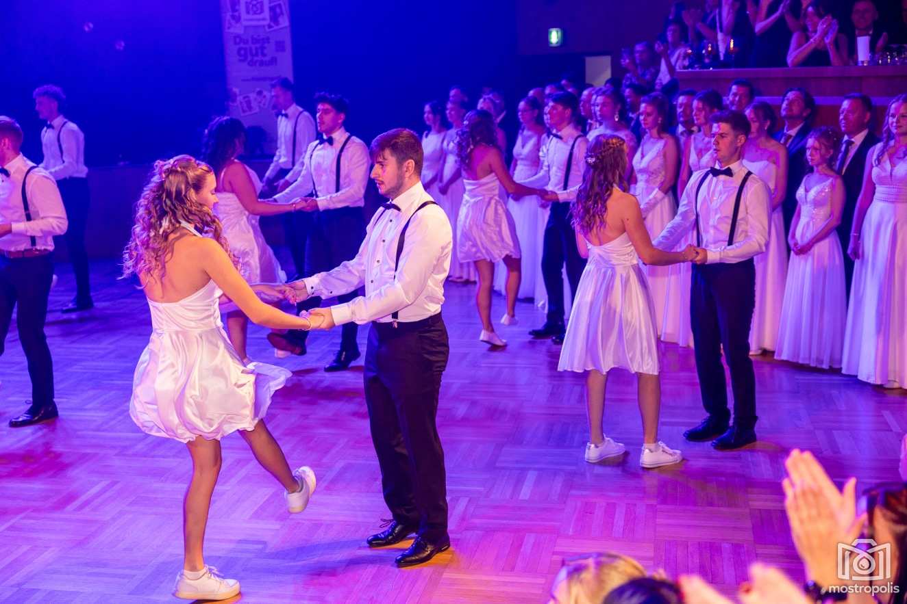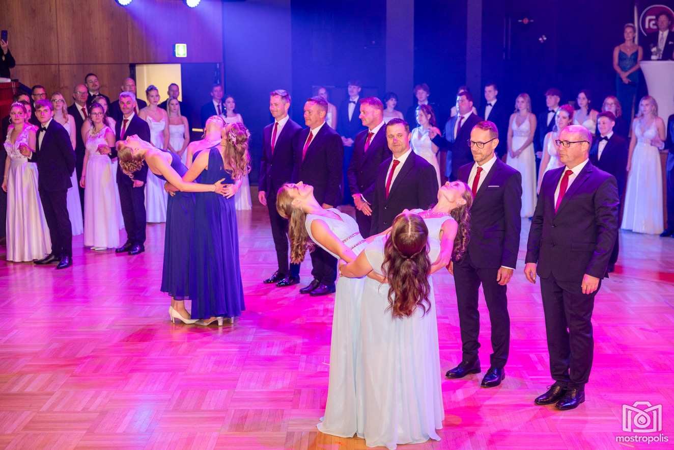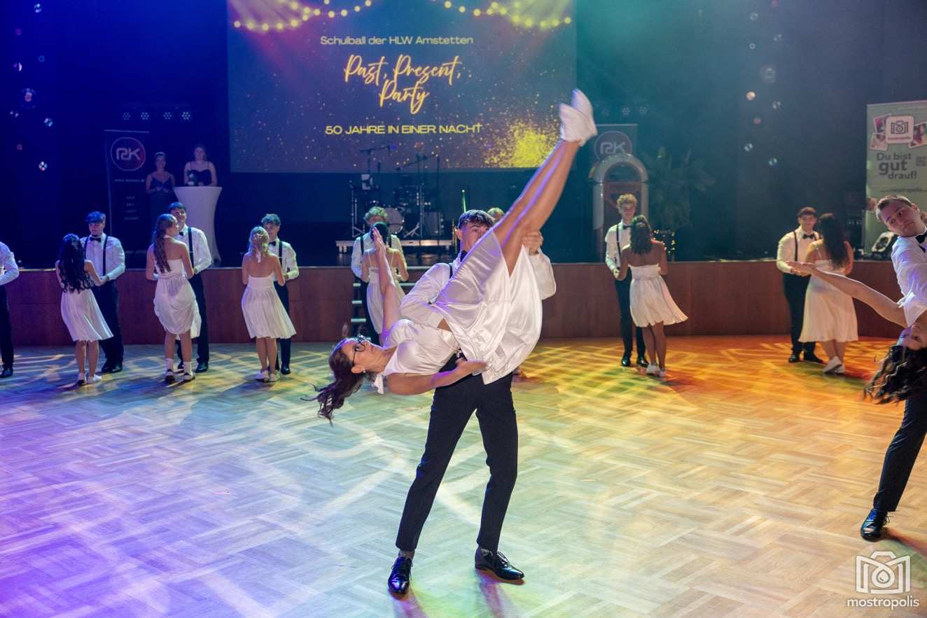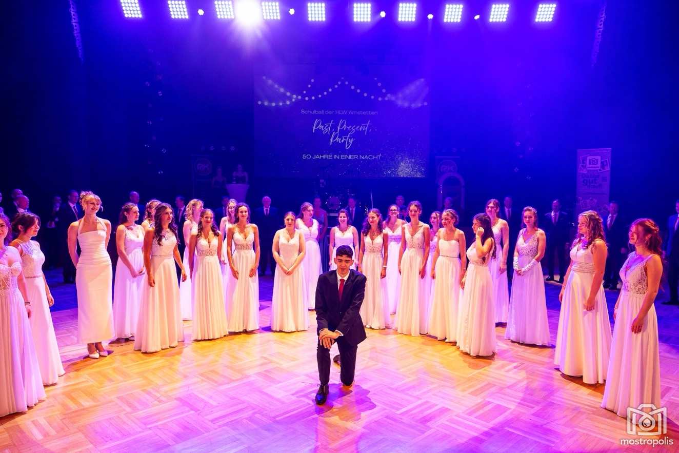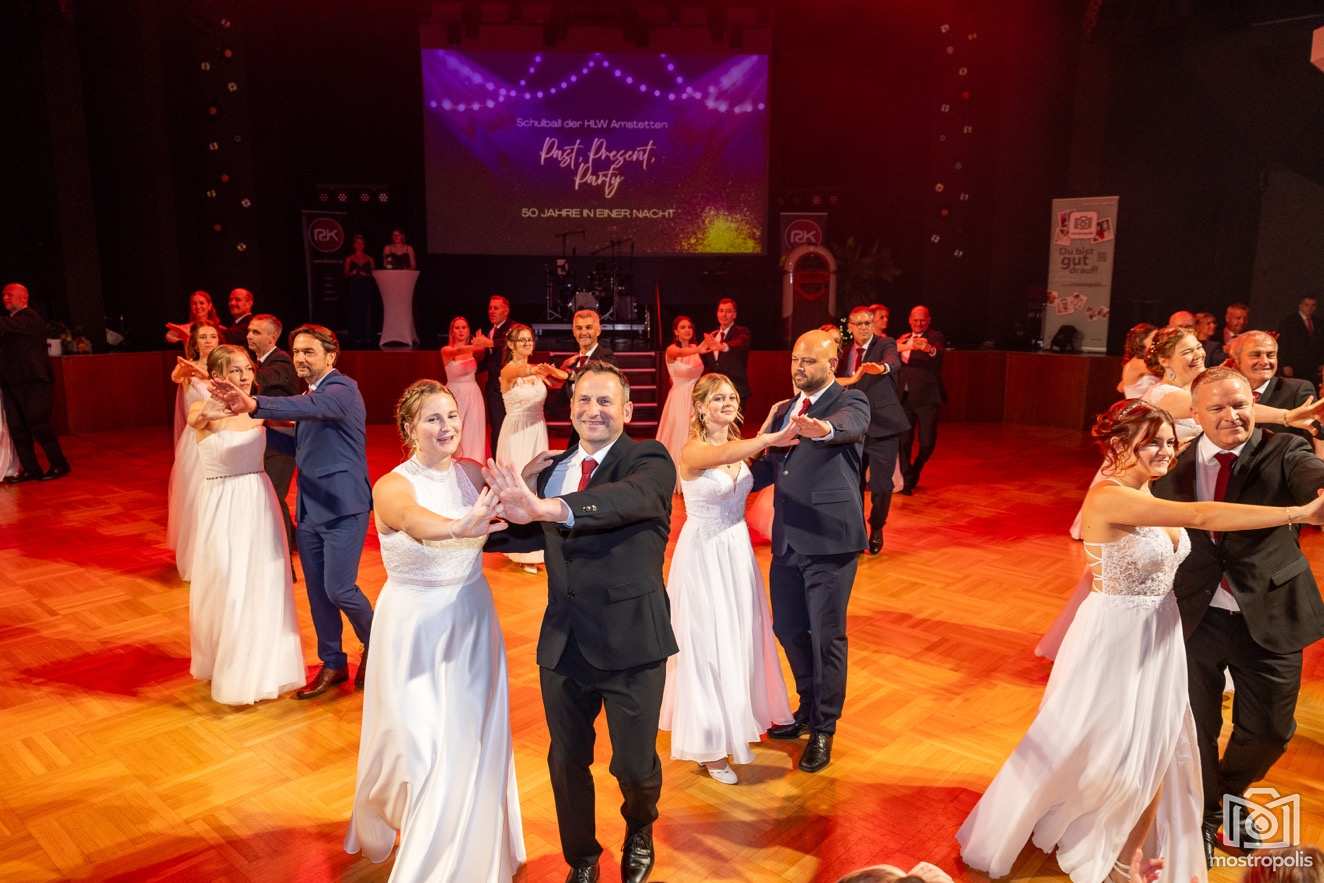 Karl Schlager hat eine bezaubernde Polonaise mit 42 Pärchen mit Vätern, einem Paar mit einer Mama sowie 19 Paaren mit Freunden einstudiert, die beeindruckte und viele berührte. Geboten wurde eine Bottle-, Disco-, Wein- und Cocktailbar sowie eine Absolventenbar mit Prosecco und Kaffee. Nicht fehlen durfte auch eine Fotobox und das Glücksrad im ersten Stock. Für schwungvolle Tanzbeine sorgte das Tanzorchester im Ballsaal und die Schulband in der Sporthalle, welche zu späterer Stunde DJ Alex Morgan mit fetten Beats so richtig zum Beben brachte.