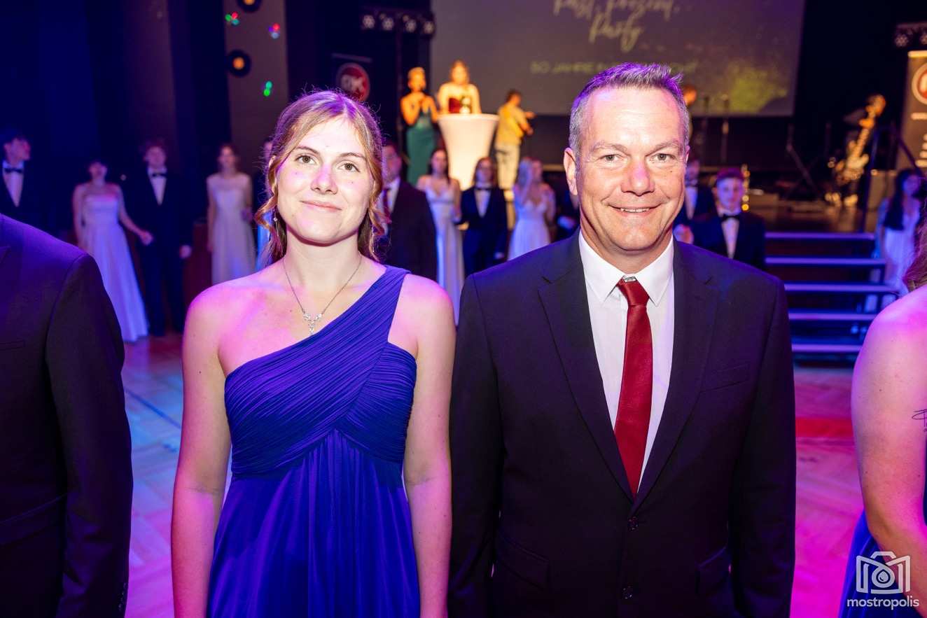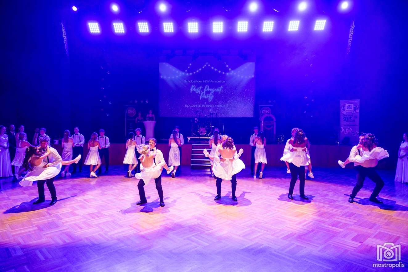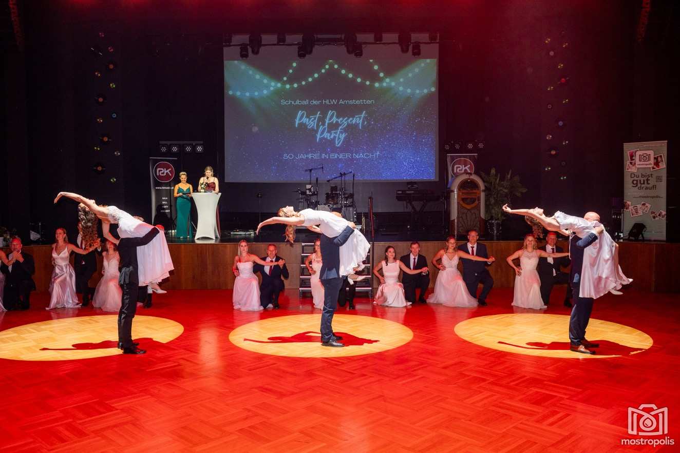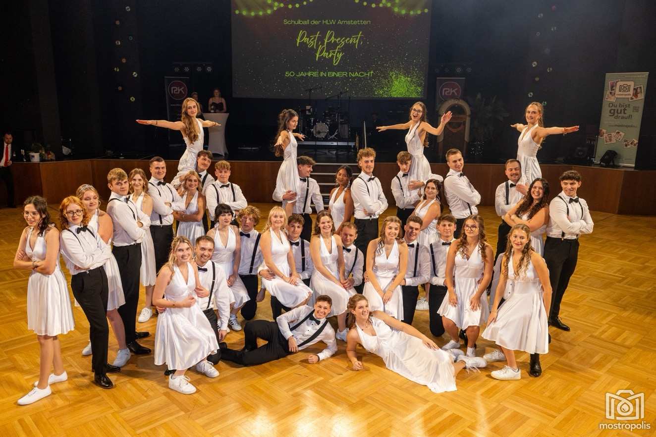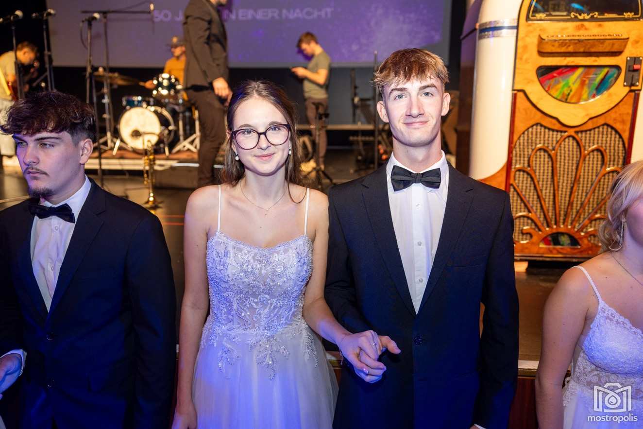 Karl Schlager hat eine bezaubernde Polonaise mit 42 Pärchen mit Vätern, einem Paar mit einer Mama sowie 19 Paaren mit Freunden einstudiert, die beeindruckte und viele berührte. Geboten wurde eine Bottle-, Disco-, Wein- und Cocktailbar sowie eine Absolventenbar mit Prosecco und Kaffee. Nicht fehlen durfte auch eine Fotobox und das Glücksrad im ersten Stock. Für schwungvolle Tanzbeine sorgte das Tanzorchester im Ballsaal und die Schulband in der Sporthalle, welche zu späterer Stunde DJ Alex Morgan mit fetten Beats so richtig zum Beben brachte.