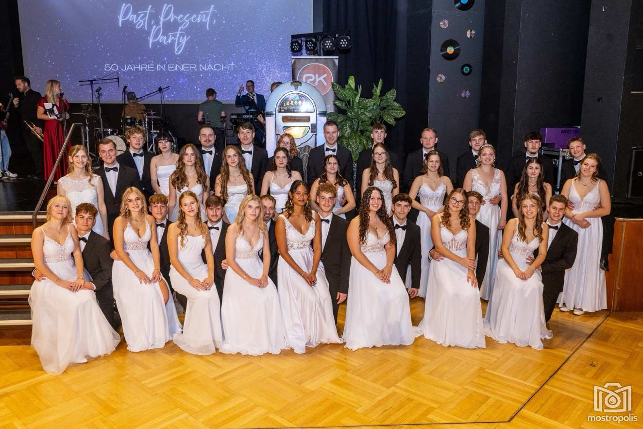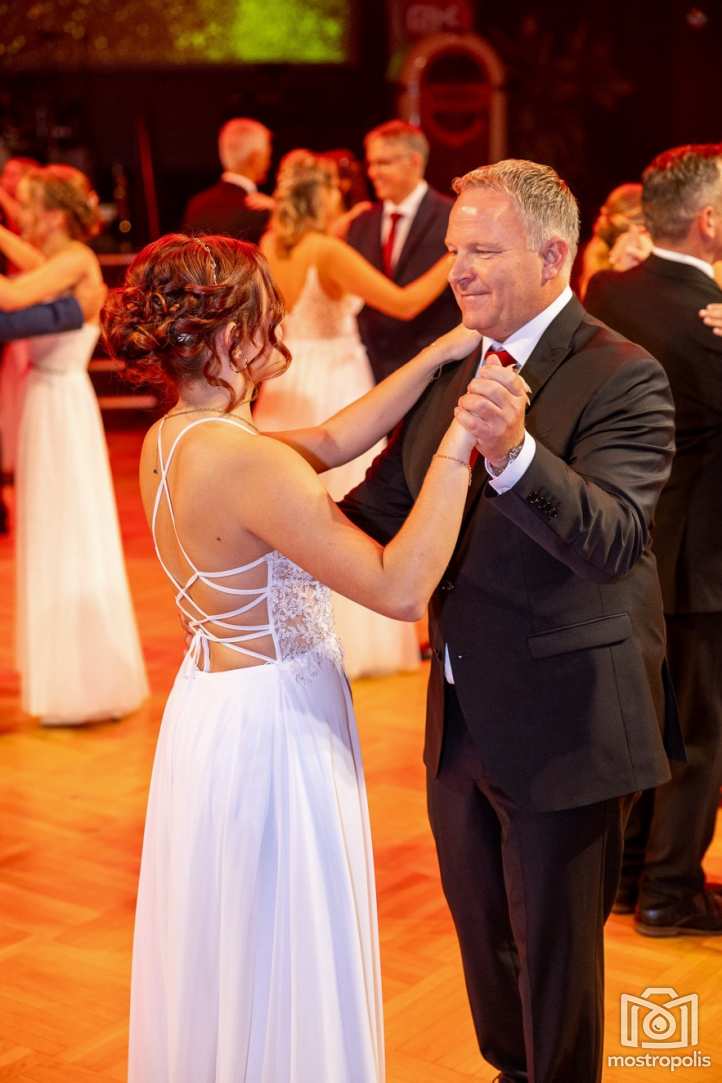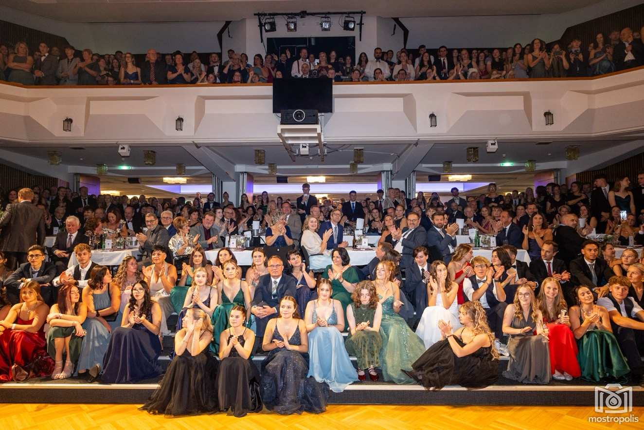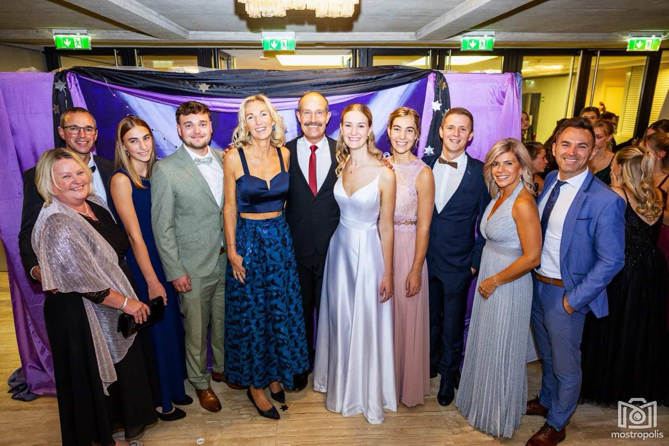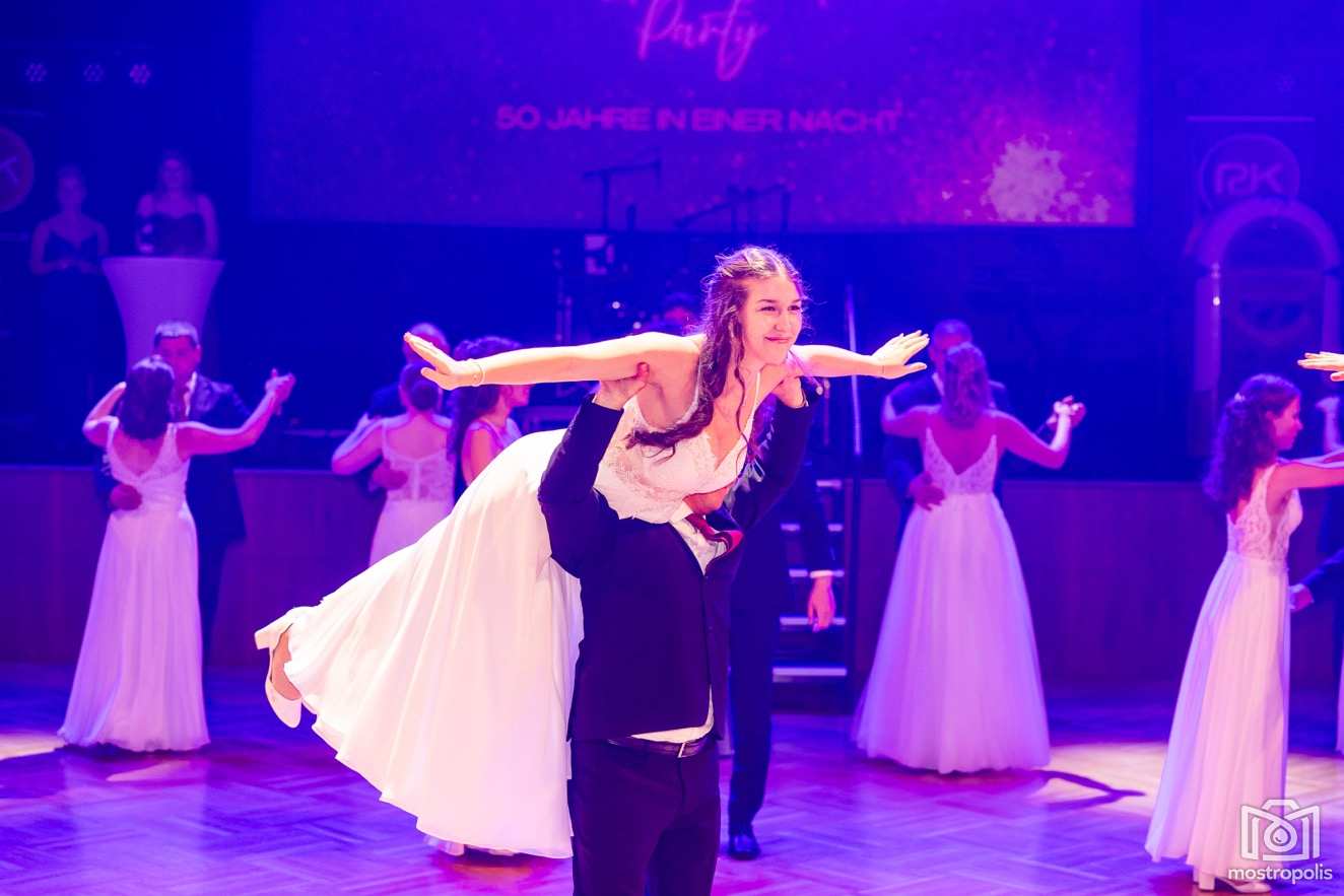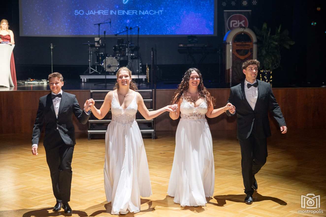 Karl Schlager hat eine bezaubernde Polonaise mit 42 Pärchen mit Vätern, einem Paar mit einer Mama sowie 19 Paaren mit Freunden einstudiert, die beeindruckte und viele berührte. Geboten wurde eine Bottle-, Disco-, Wein- und Cocktailbar sowie eine Absolventenbar mit Prosecco und Kaffee. Nicht fehlen durfte auch eine Fotobox und das Glücksrad im ersten Stock. Für schwungvolle Tanzbeine sorgte das Tanzorchester im Ballsaal und die Schulband in der Sporthalle, welche zu späterer Stunde DJ Alex Morgan mit fetten Beats so richtig zum Beben brachte.