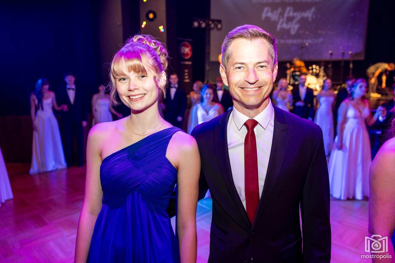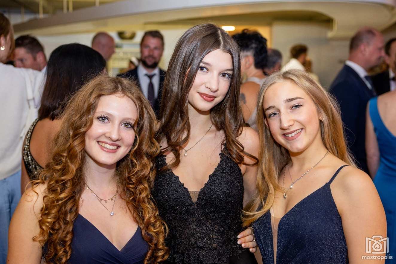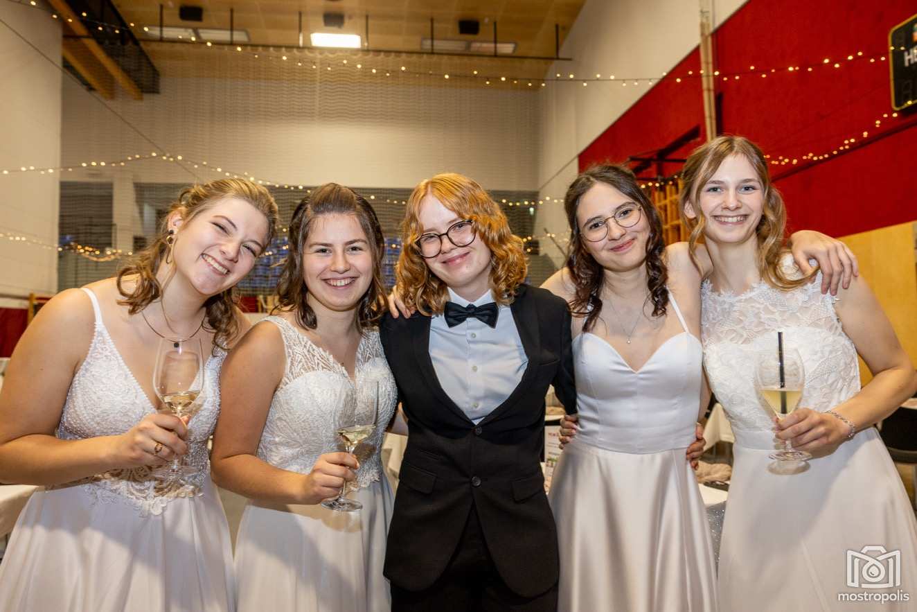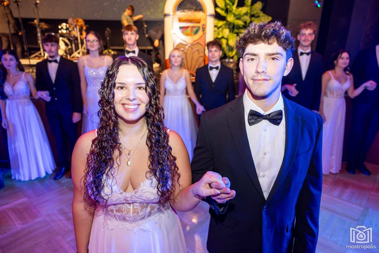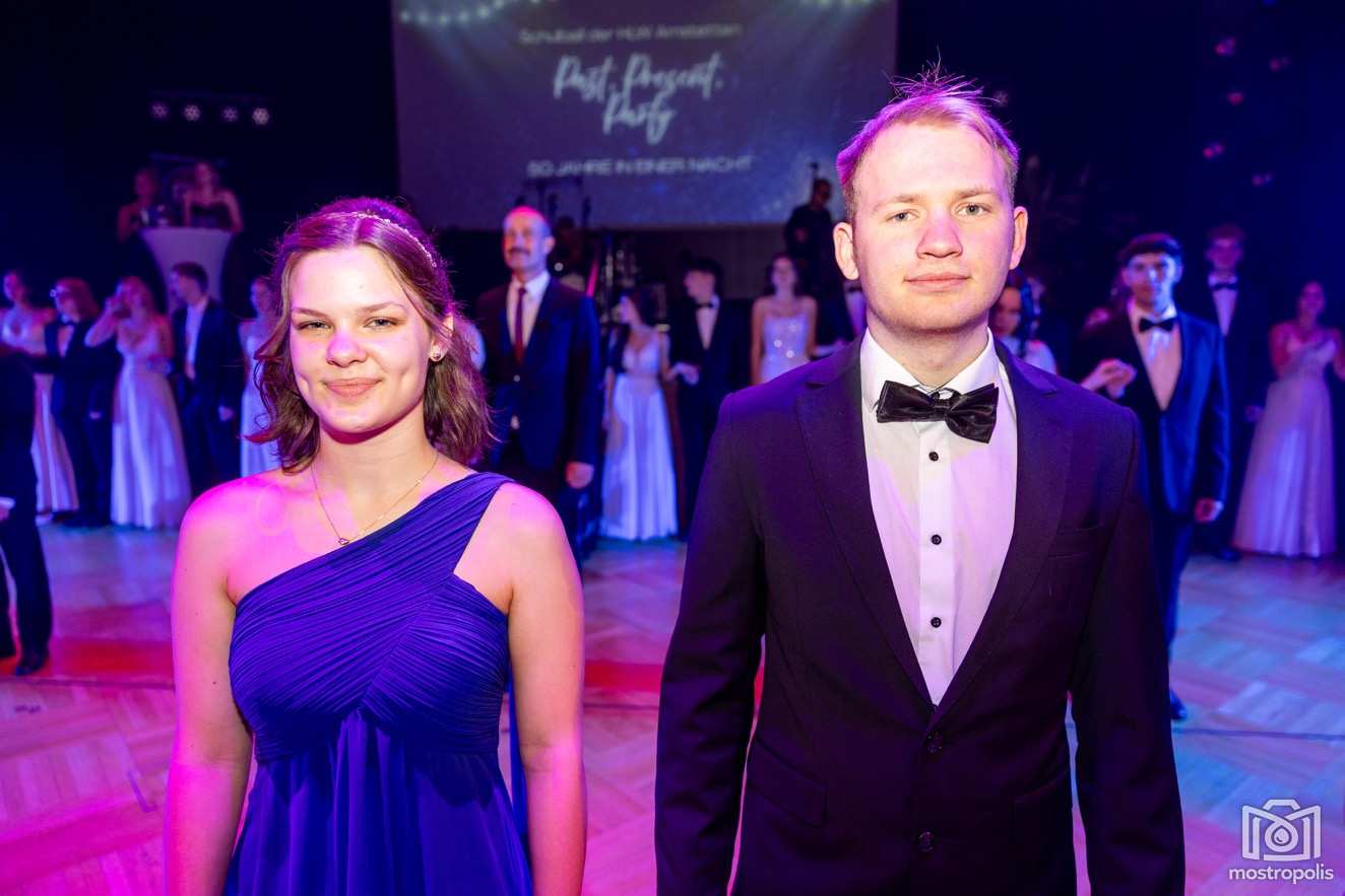 Karl Schlager hat eine bezaubernde Polonaise mit 42 Pärchen mit Vätern, einem Paar mit einer Mama sowie 19 Paaren mit Freunden einstudiert, die beeindruckte und viele berührte. Geboten wurde eine Bottle-, Disco-, Wein- und Cocktailbar sowie eine Absolventenbar mit Prosecco und Kaffee. Nicht fehlen durfte auch eine Fotobox und das Glücksrad im ersten Stock. Für schwungvolle Tanzbeine sorgte das Tanzorchester im Ballsaal und die Schulband in der Sporthalle, welche zu späterer Stunde DJ Alex Morgan mit fetten Beats so richtig zum Beben brachte.