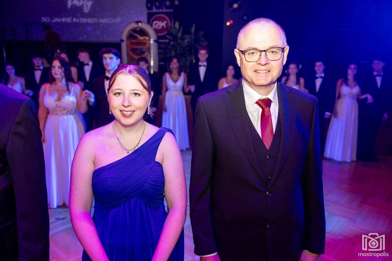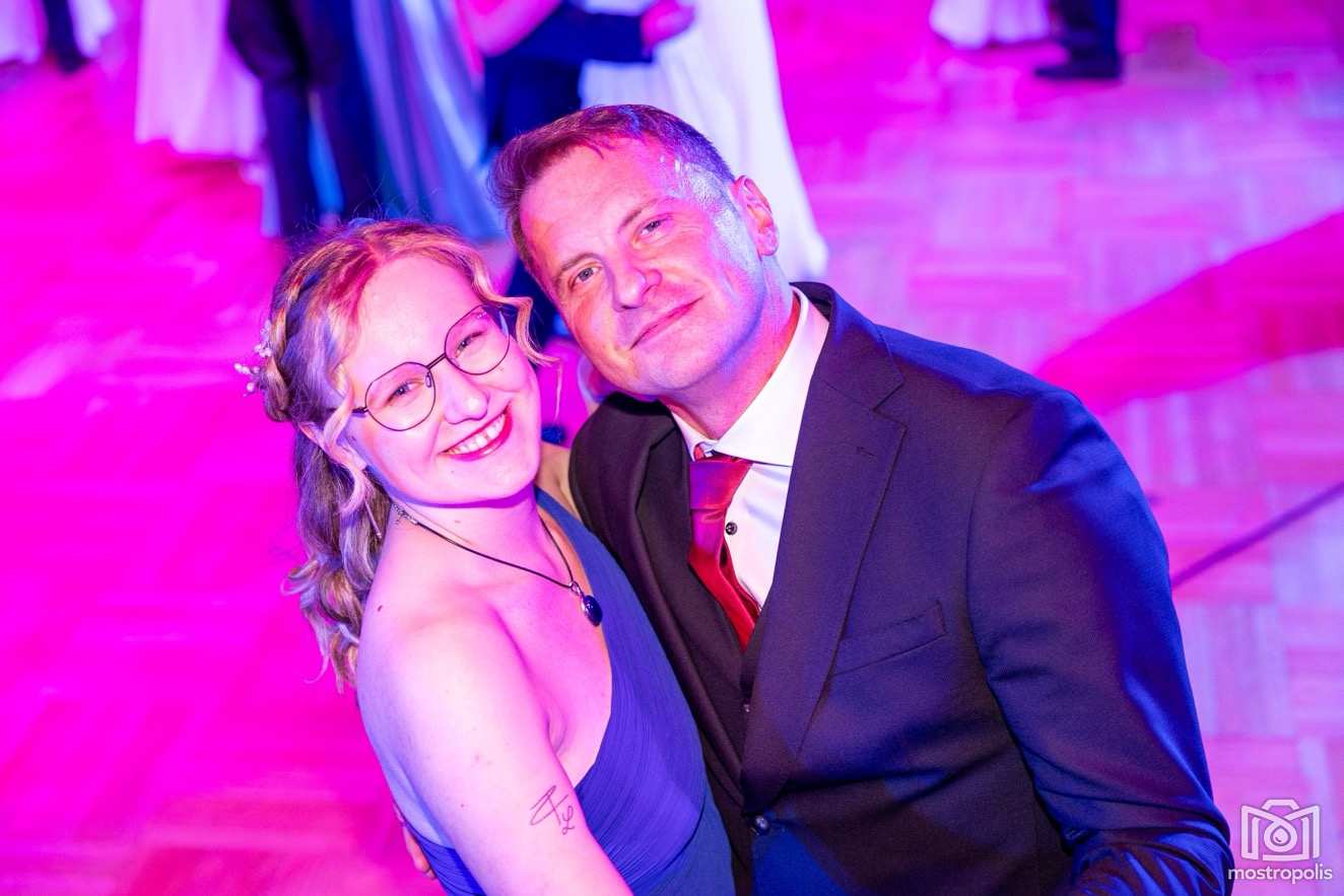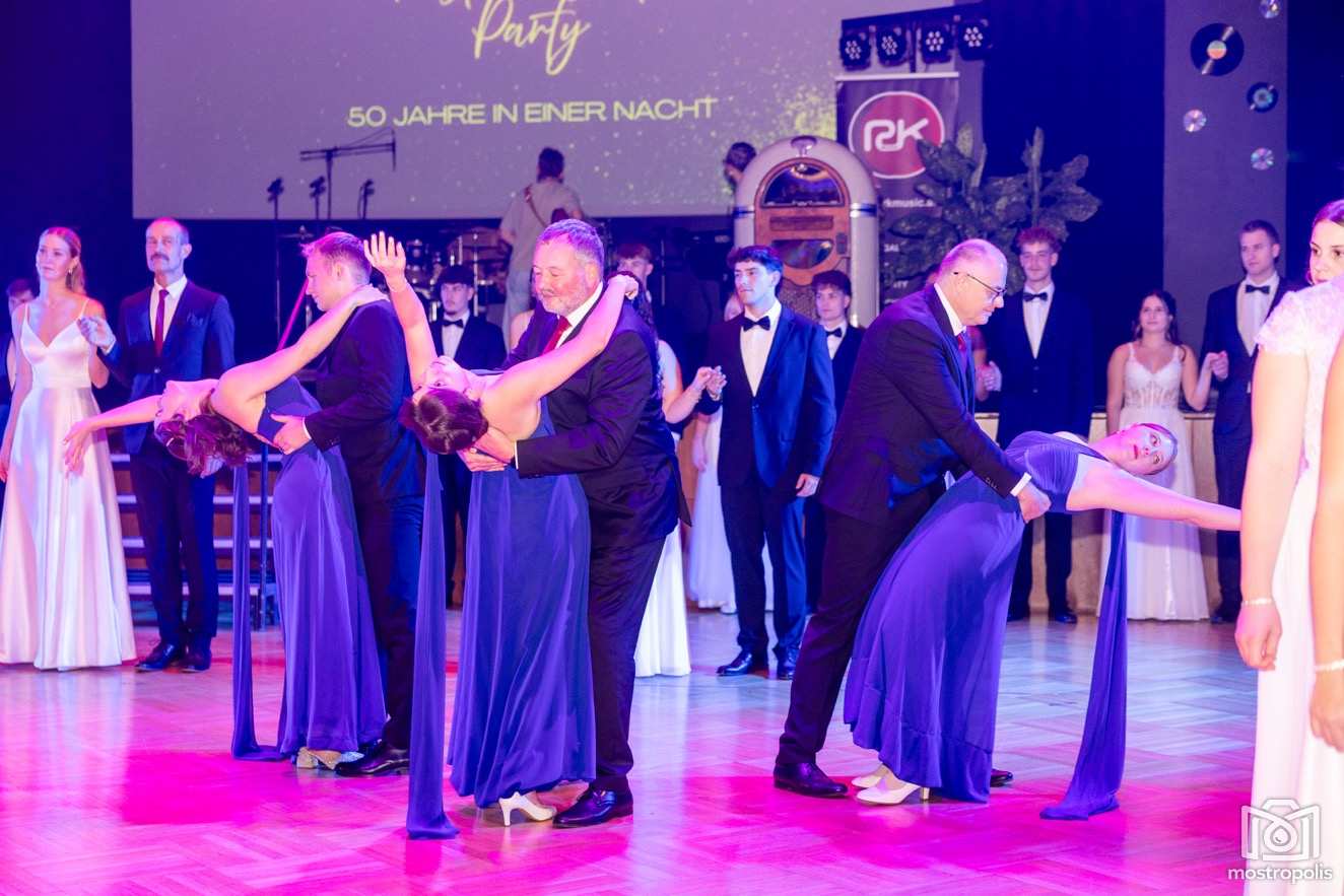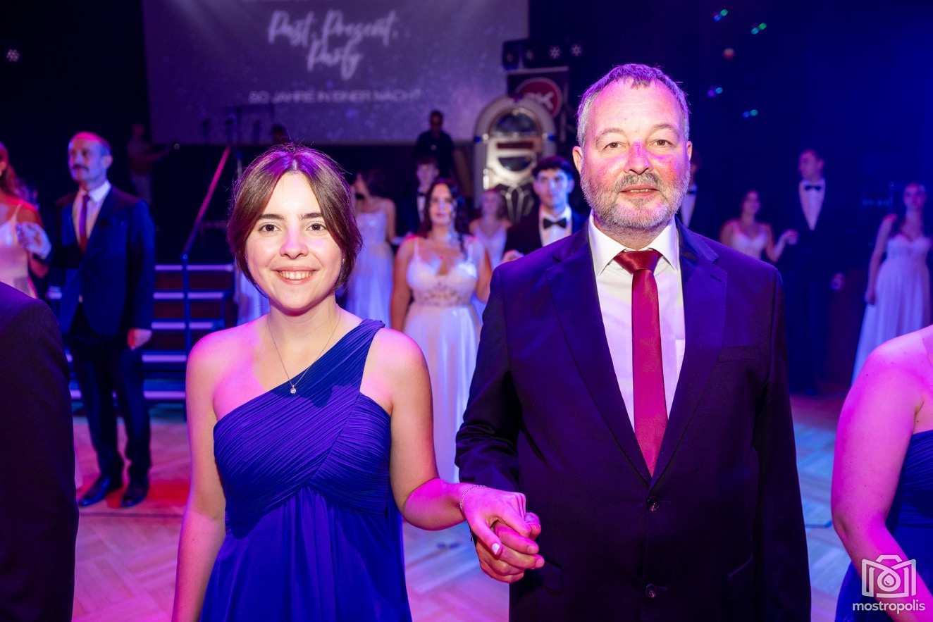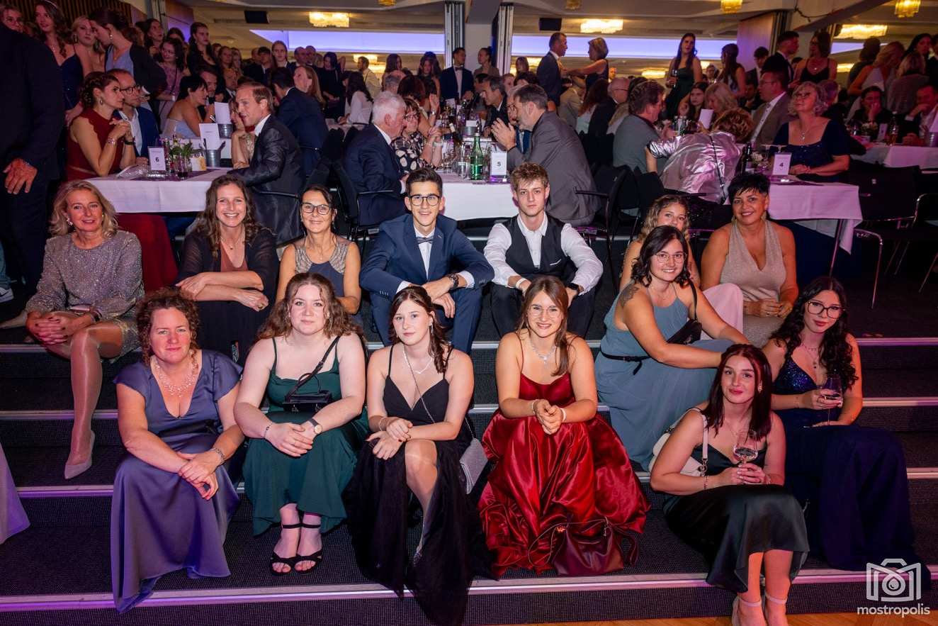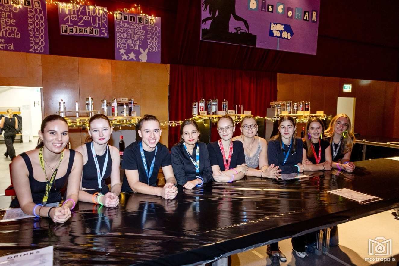 Karl Schlager hat eine bezaubernde Polonaise mit 42 Pärchen mit Vätern, einem Paar mit einer Mama sowie 19 Paaren mit Freunden einstudiert, die beeindruckte und viele berührte. Geboten wurde eine Bottle-, Disco-, Wein- und Cocktailbar sowie eine Absolventenbar mit Prosecco und Kaffee. Nicht fehlen durfte auch eine Fotobox und das Glücksrad im ersten Stock. Für schwungvolle Tanzbeine sorgte das Tanzorchester im Ballsaal und die Schulband in der Sporthalle, welche zu späterer Stunde DJ Alex Morgan mit fetten Beats so richtig zum Beben brachte.