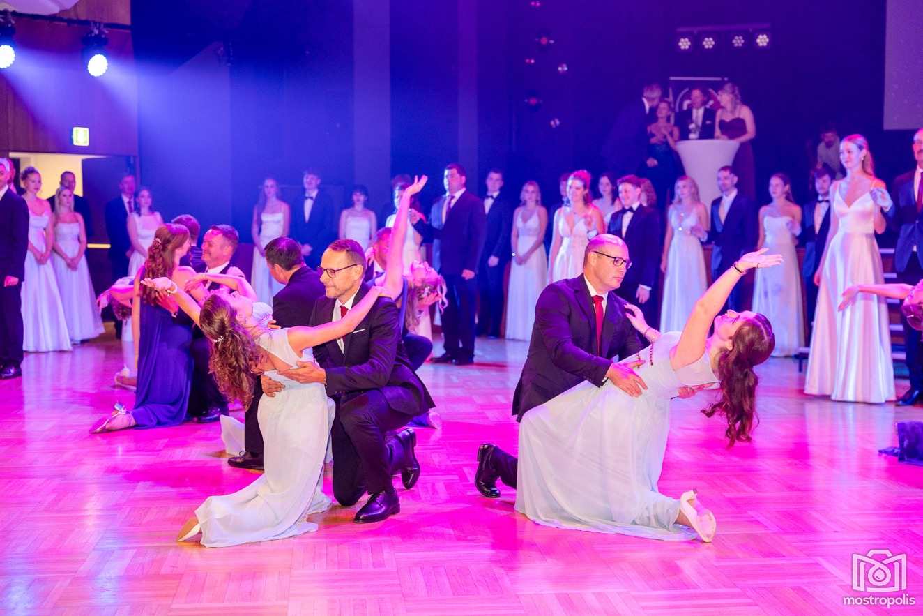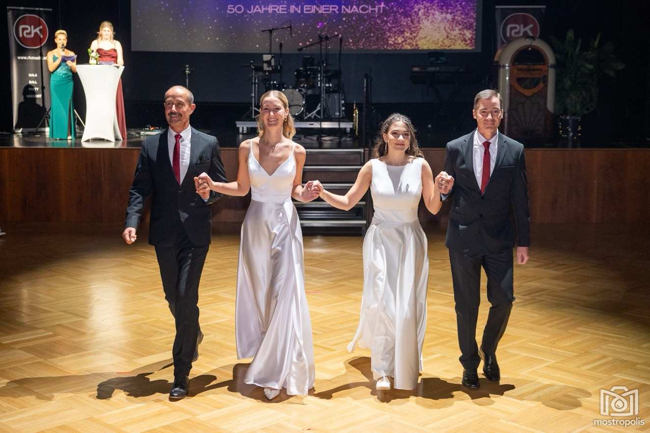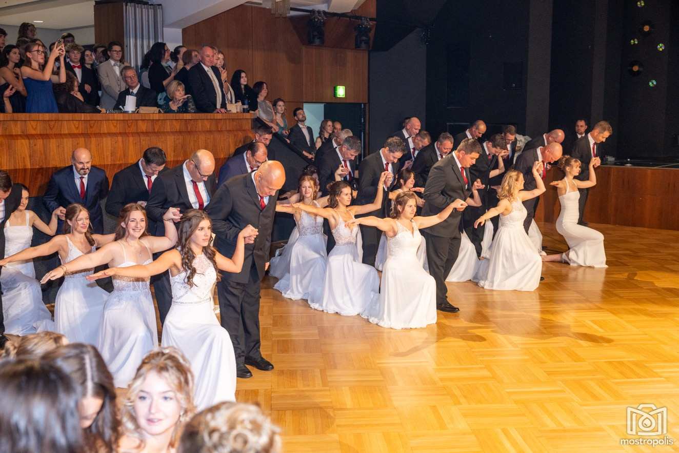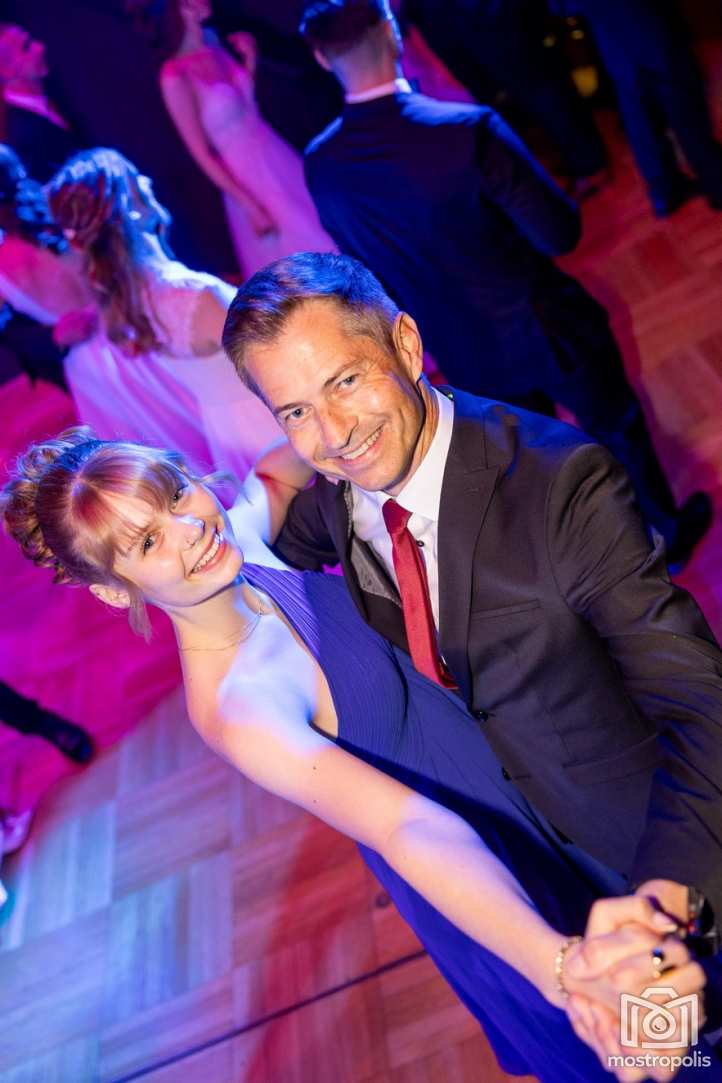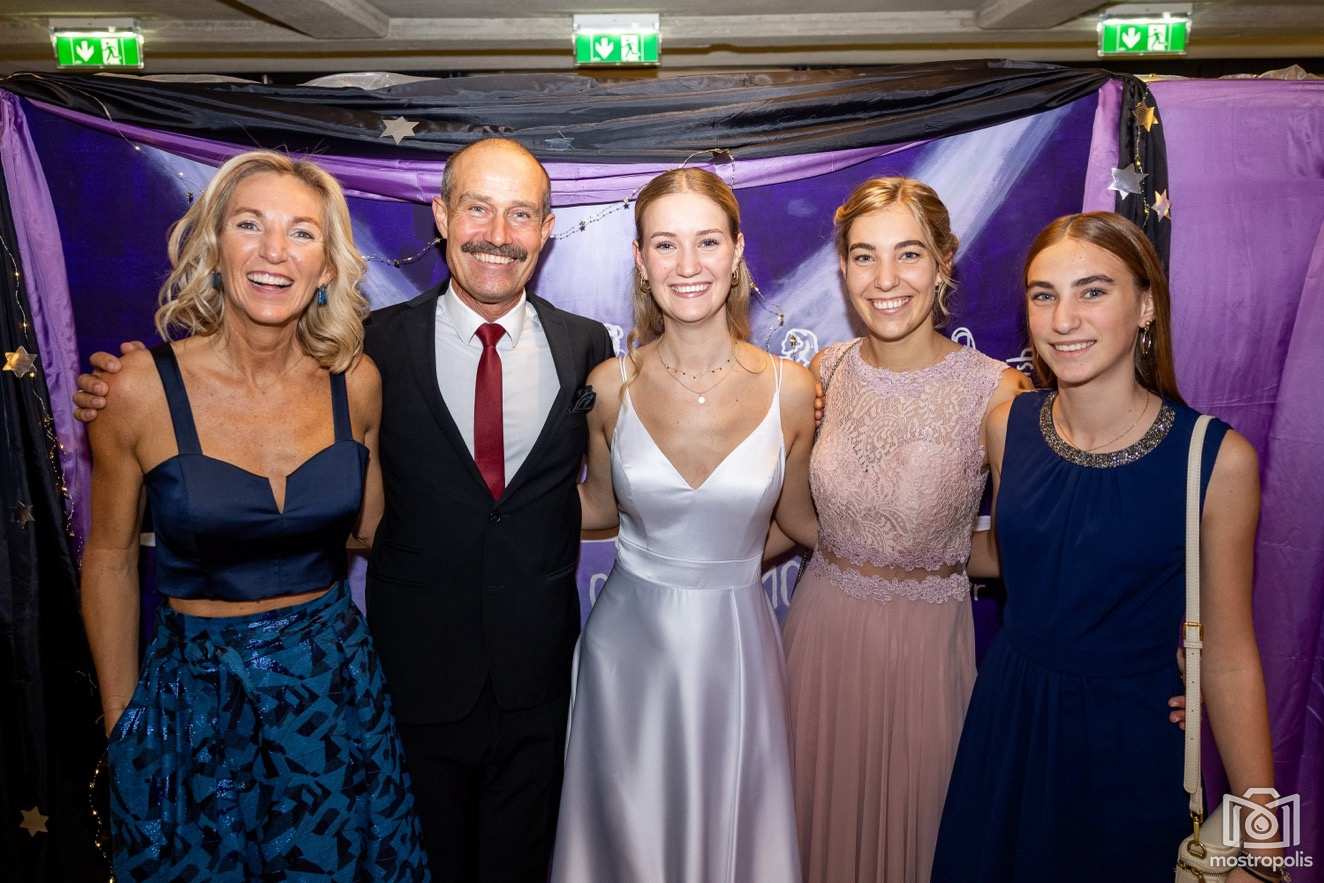 Karl Schlager hat eine bezaubernde Polonaise mit 42 Pärchen mit Vätern, einem Paar mit einer Mama sowie 19 Paaren mit Freunden einstudiert, die beeindruckte und viele berührte. Geboten wurde eine Bottle-, Disco-, Wein- und Cocktailbar sowie eine Absolventenbar mit Prosecco und Kaffee. Nicht fehlen durfte auch eine Fotobox und das Glücksrad im ersten Stock. Für schwungvolle Tanzbeine sorgte das Tanzorchester im Ballsaal und die Schulband in der Sporthalle, welche zu späterer Stunde DJ Alex Morgan mit fetten Beats so richtig zum Beben brachte.