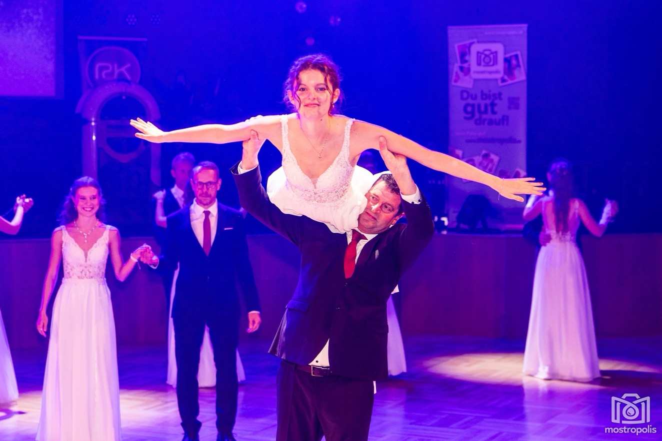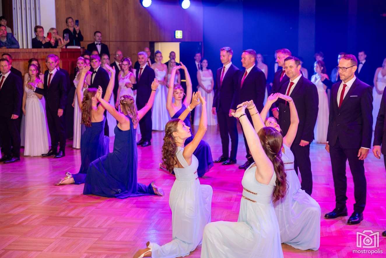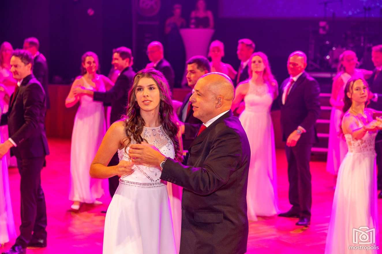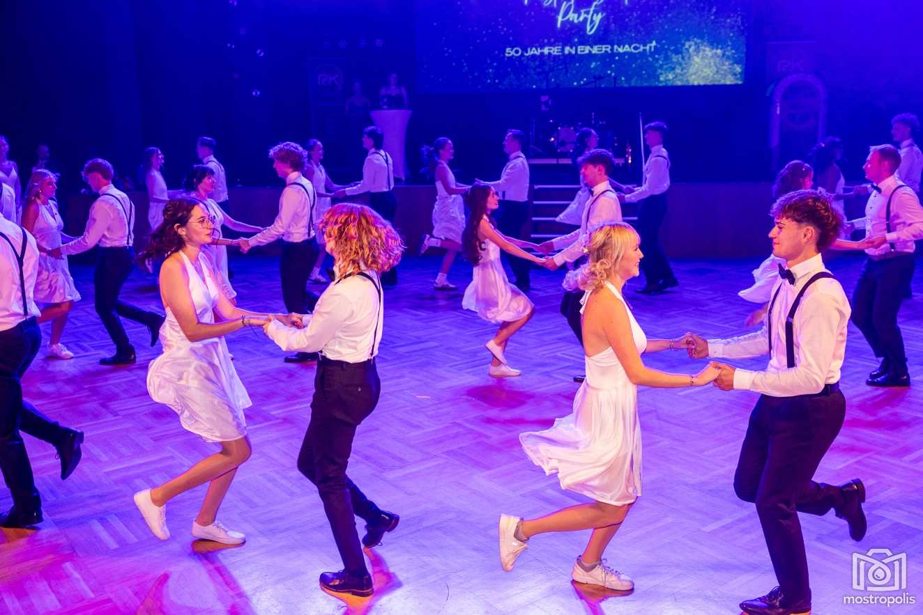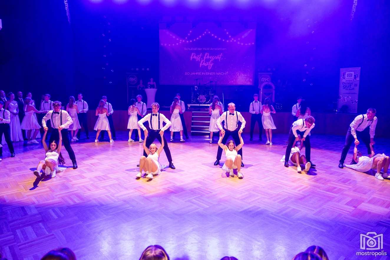 Karl Schlager hat eine bezaubernde Polonaise mit 42 Pärchen mit Vätern, einem Paar mit einer Mama sowie 19 Paaren mit Freunden einstudiert, die beeindruckte und viele berührte. Geboten wurde eine Bottle-, Disco-, Wein- und Cocktailbar sowie eine Absolventenbar mit Prosecco und Kaffee. Nicht fehlen durfte auch eine Fotobox und das Glücksrad im ersten Stock. Für schwungvolle Tanzbeine sorgte das Tanzorchester im Ballsaal und die Schulband in der Sporthalle, welche zu späterer Stunde DJ Alex Morgan mit fetten Beats so richtig zum Beben brachte.