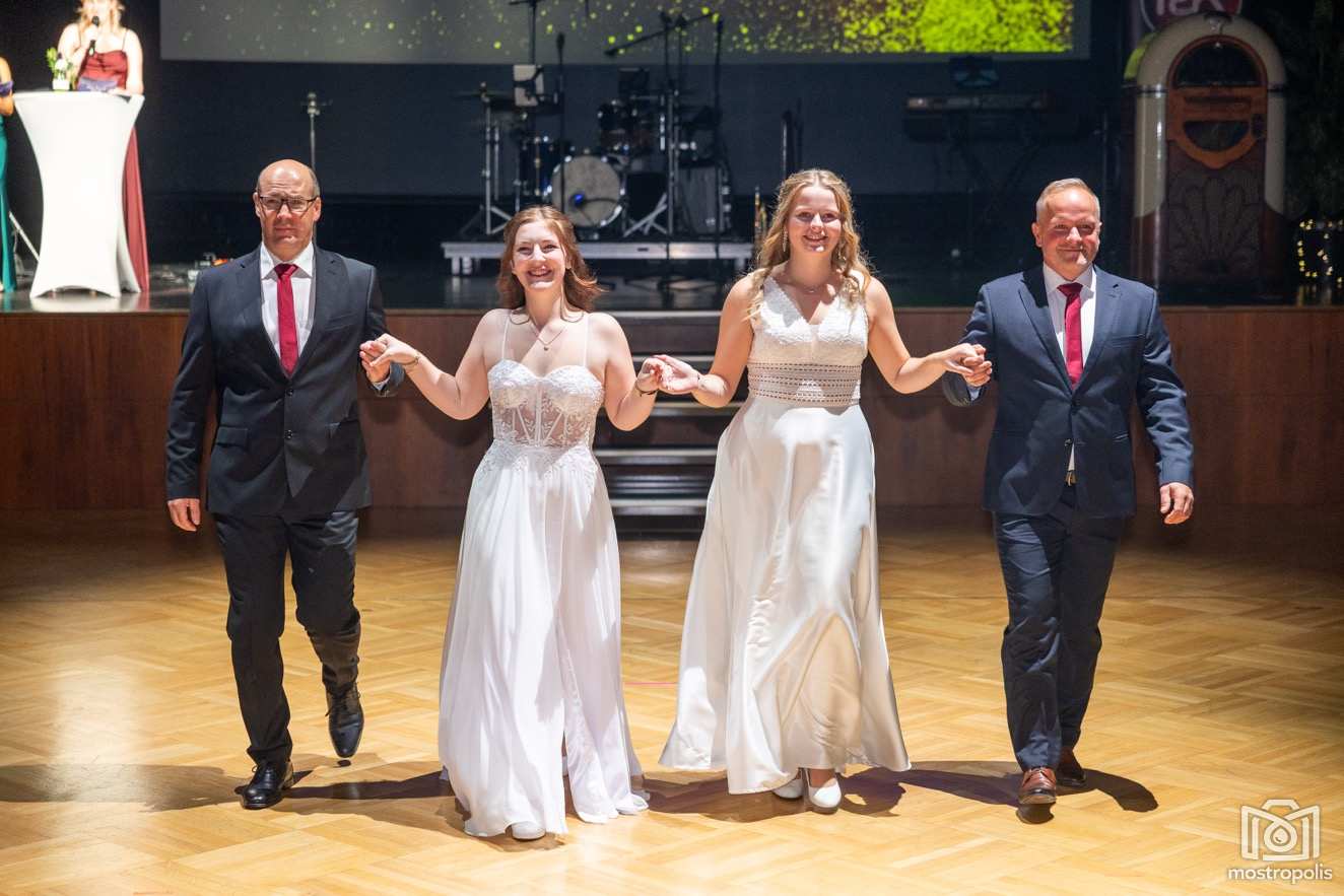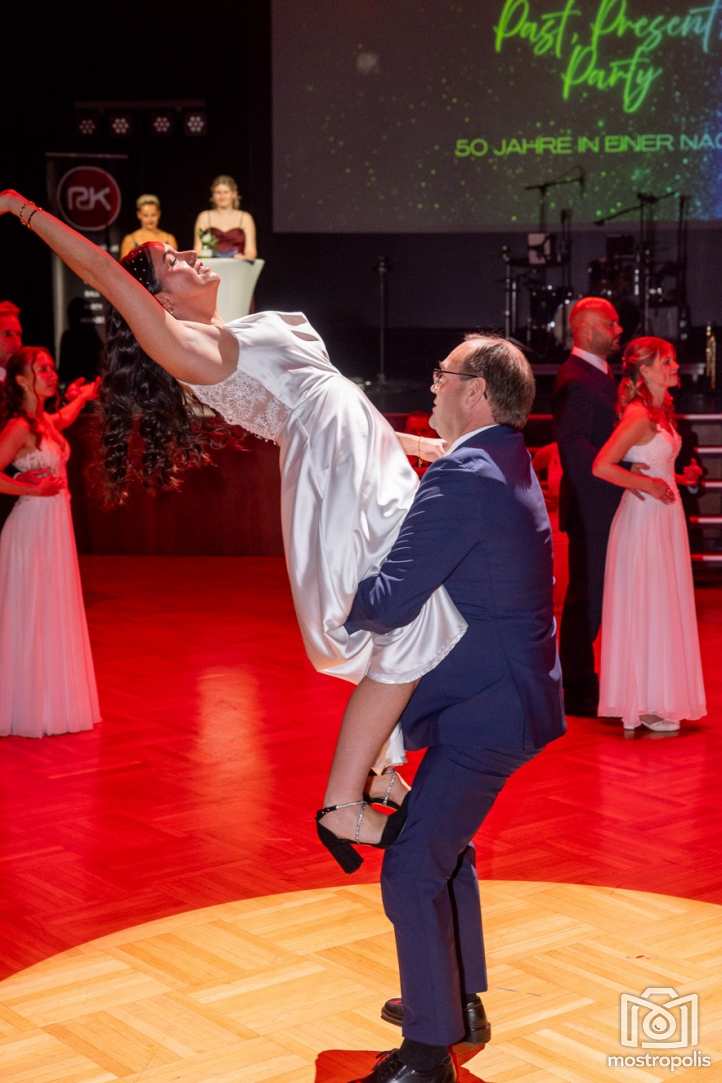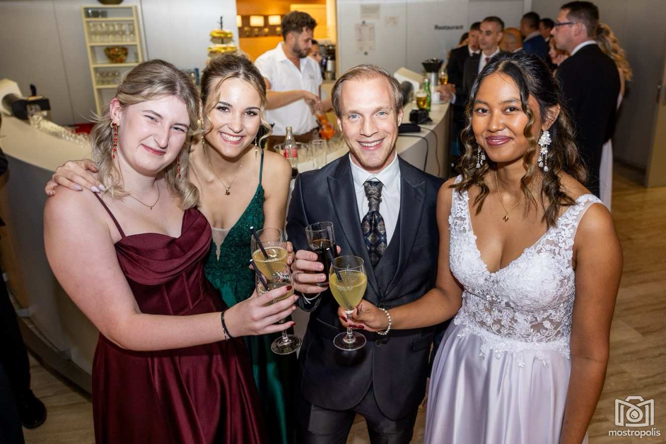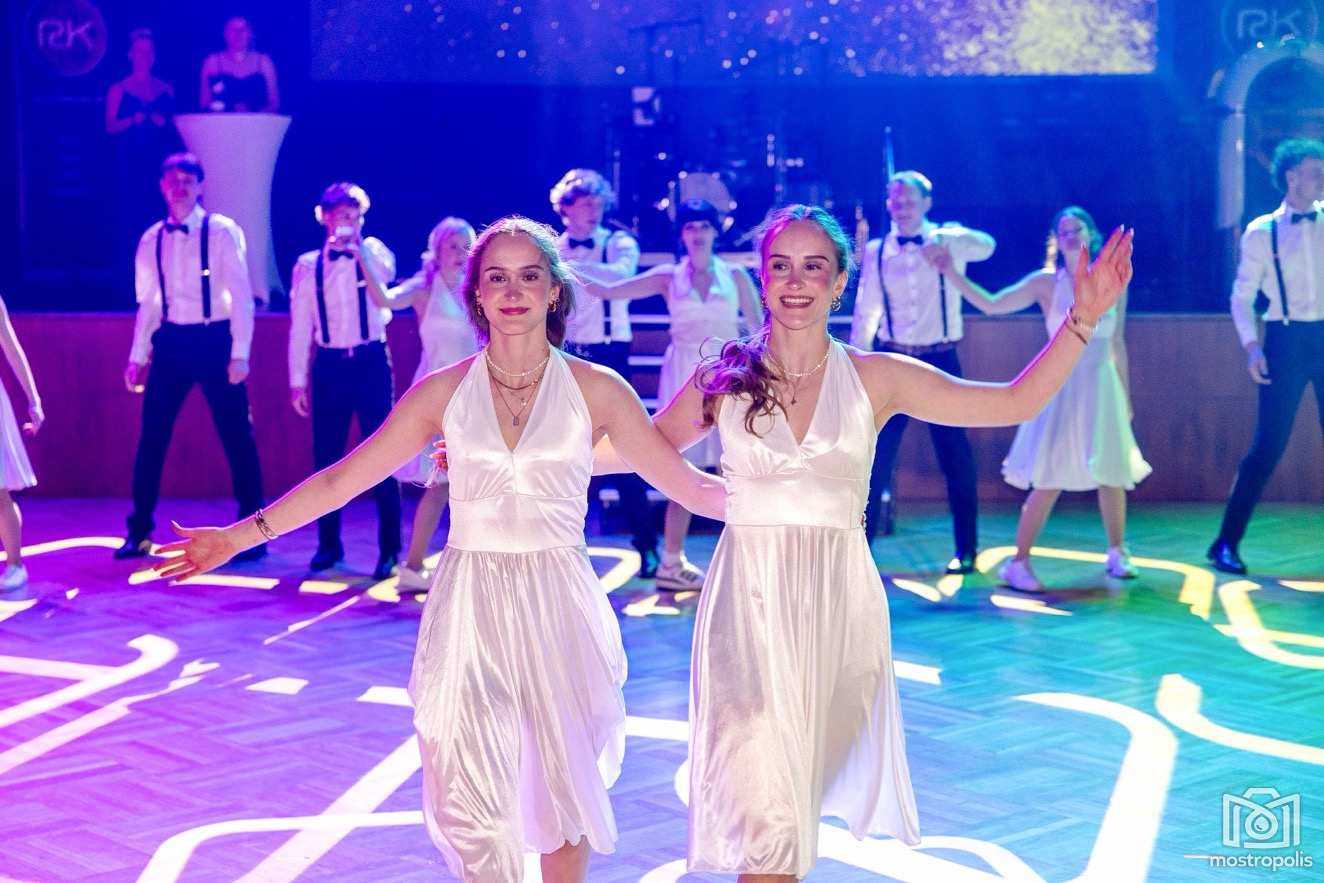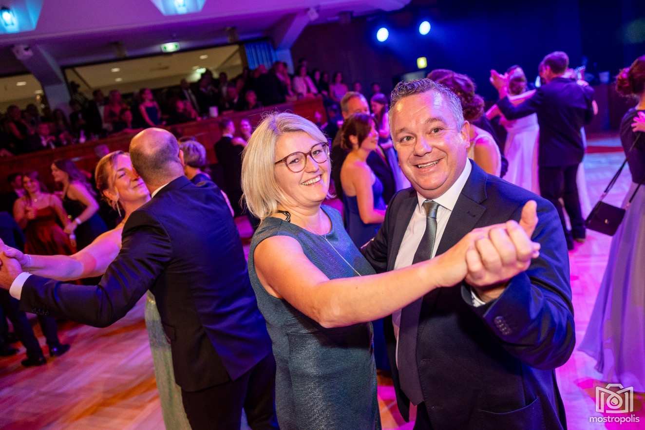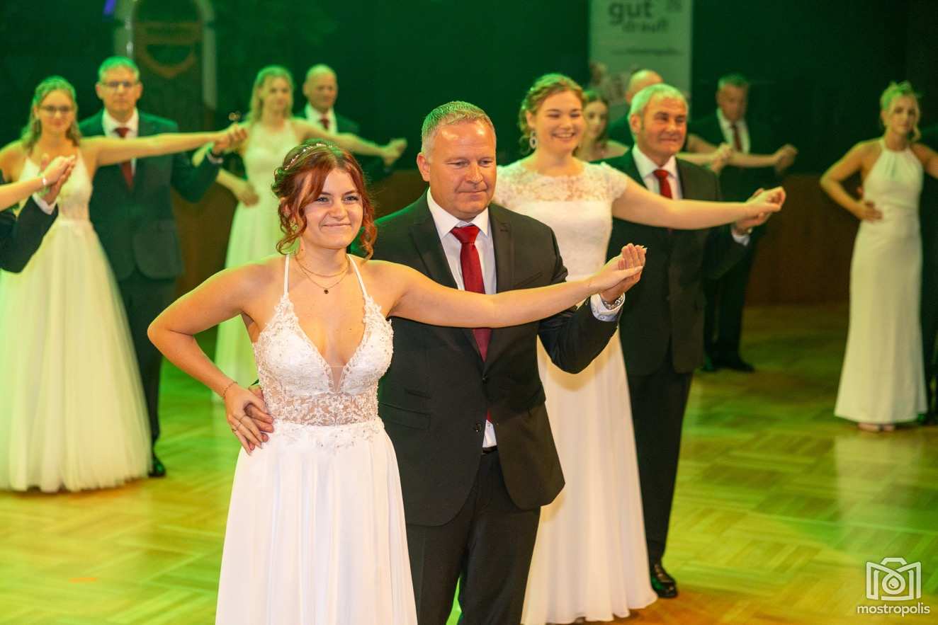 Karl Schlager hat eine bezaubernde Polonaise mit 42 Pärchen mit Vätern, einem Paar mit einer Mama sowie 19 Paaren mit Freunden einstudiert, die beeindruckte und viele berührte. Geboten wurde eine Bottle-, Disco-, Wein- und Cocktailbar sowie eine Absolventenbar mit Prosecco und Kaffee. Nicht fehlen durfte auch eine Fotobox und das Glücksrad im ersten Stock. Für schwungvolle Tanzbeine sorgte das Tanzorchester im Ballsaal und die Schulband in der Sporthalle, welche zu späterer Stunde DJ Alex Morgan mit fetten Beats so richtig zum Beben brachte.