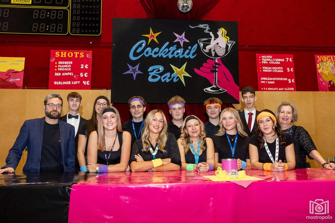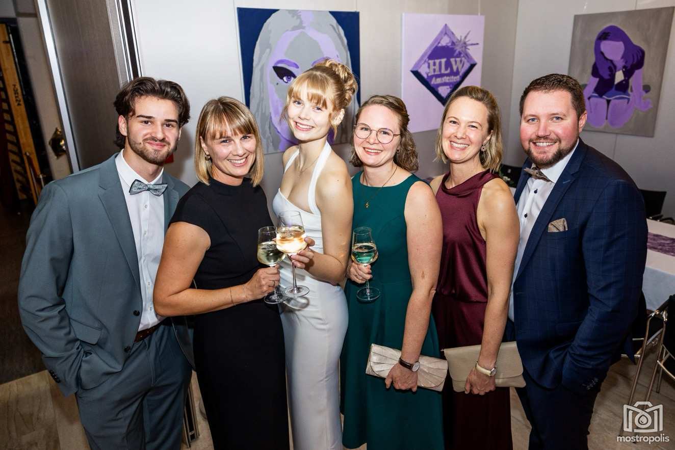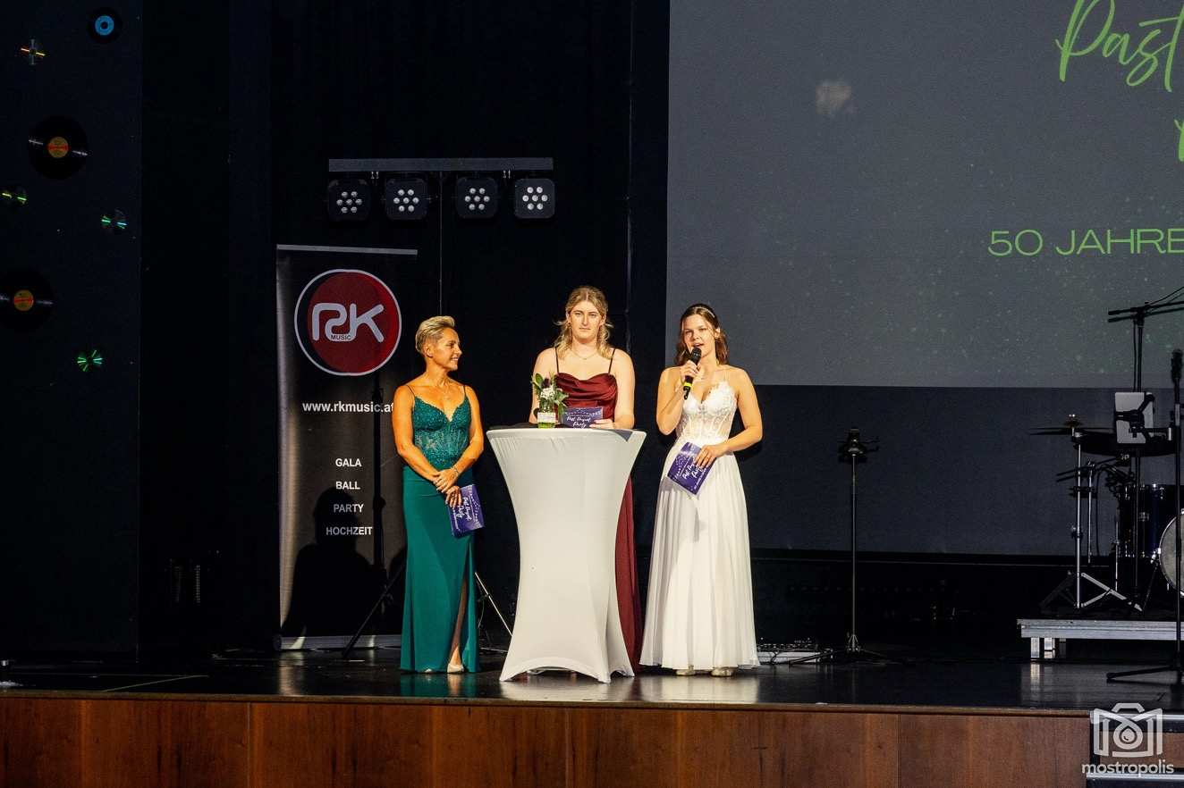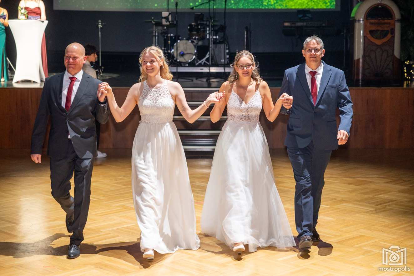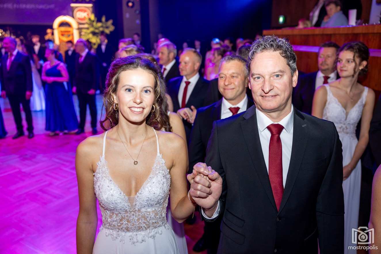 Karl Schlager hat eine bezaubernde Polonaise mit 42 Pärchen mit Vätern, einem Paar mit einer Mama sowie 19 Paaren mit Freunden einstudiert, die beeindruckte und viele berührte. Geboten wurde eine Bottle-, Disco-, Wein- und Cocktailbar sowie eine Absolventenbar mit Prosecco und Kaffee. Nicht fehlen durfte auch eine Fotobox und das Glücksrad im ersten Stock. Für schwungvolle Tanzbeine sorgte das Tanzorchester im Ballsaal und die Schulband in der Sporthalle, welche zu späterer Stunde DJ Alex Morgan mit fetten Beats so richtig zum Beben brachte.