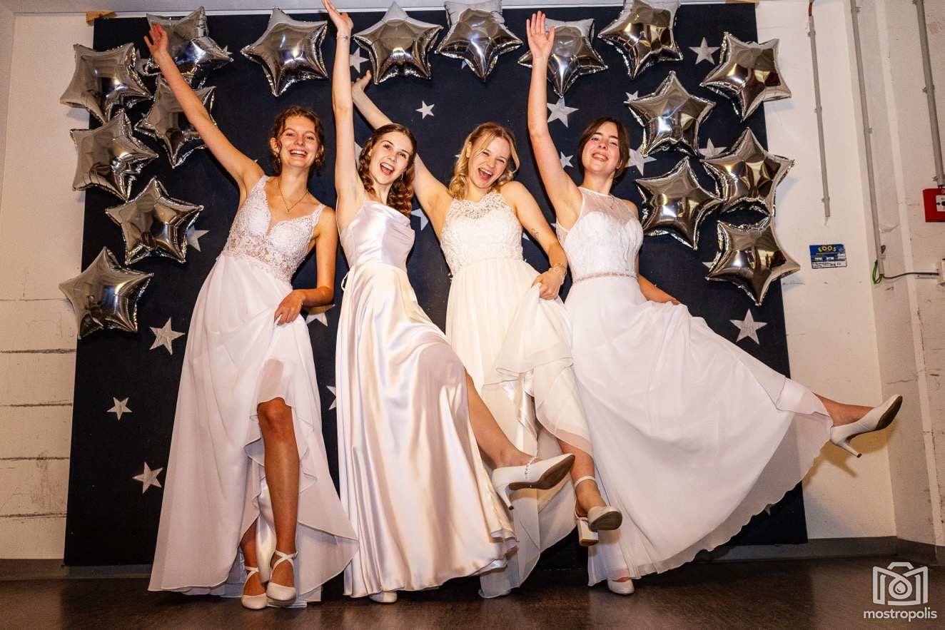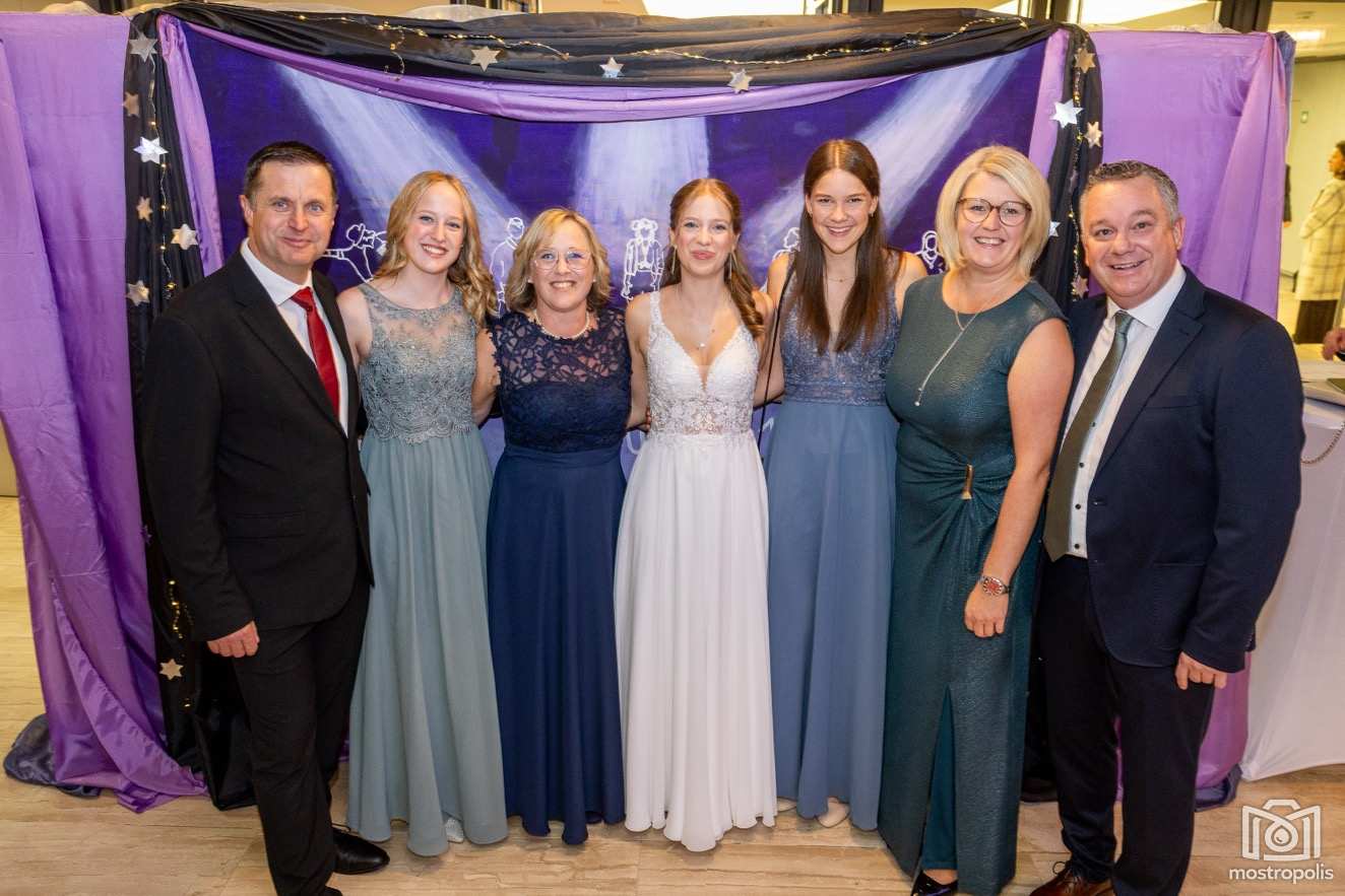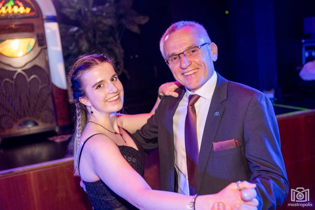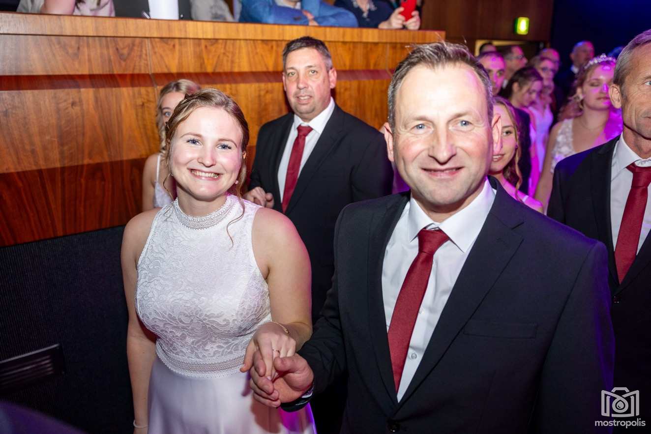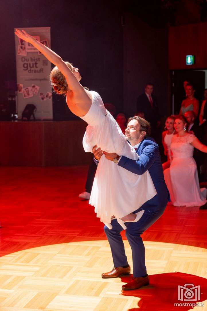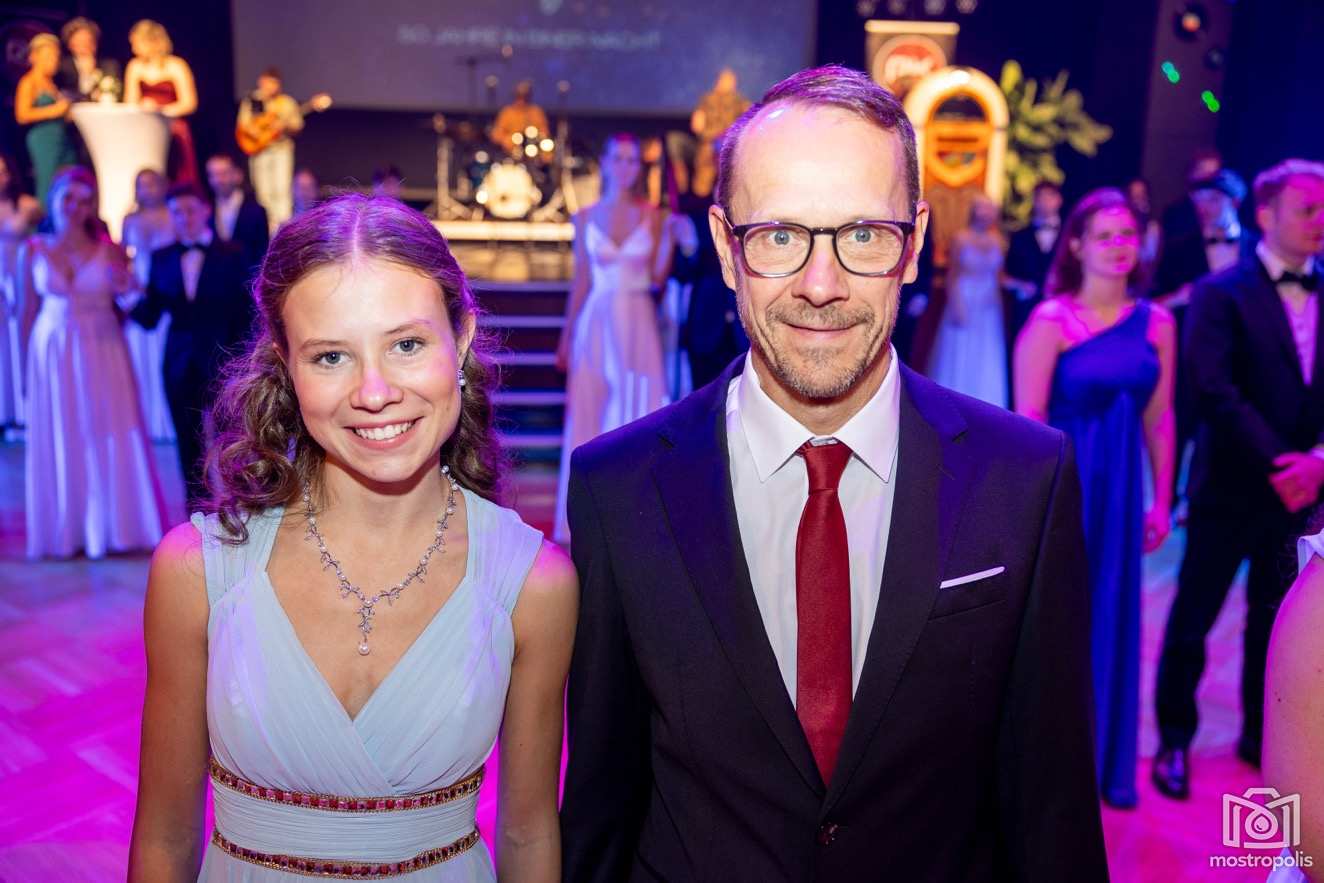 Karl Schlager hat eine bezaubernde Polonaise mit 42 Pärchen mit Vätern, einem Paar mit einer Mama sowie 19 Paaren mit Freunden einstudiert, die beeindruckte und viele berührte. Geboten wurde eine Bottle-, Disco-, Wein- und Cocktailbar sowie eine Absolventenbar mit Prosecco und Kaffee. Nicht fehlen durfte auch eine Fotobox und das Glücksrad im ersten Stock. Für schwungvolle Tanzbeine sorgte das Tanzorchester im Ballsaal und die Schulband in der Sporthalle, welche zu späterer Stunde DJ Alex Morgan mit fetten Beats so richtig zum Beben brachte.