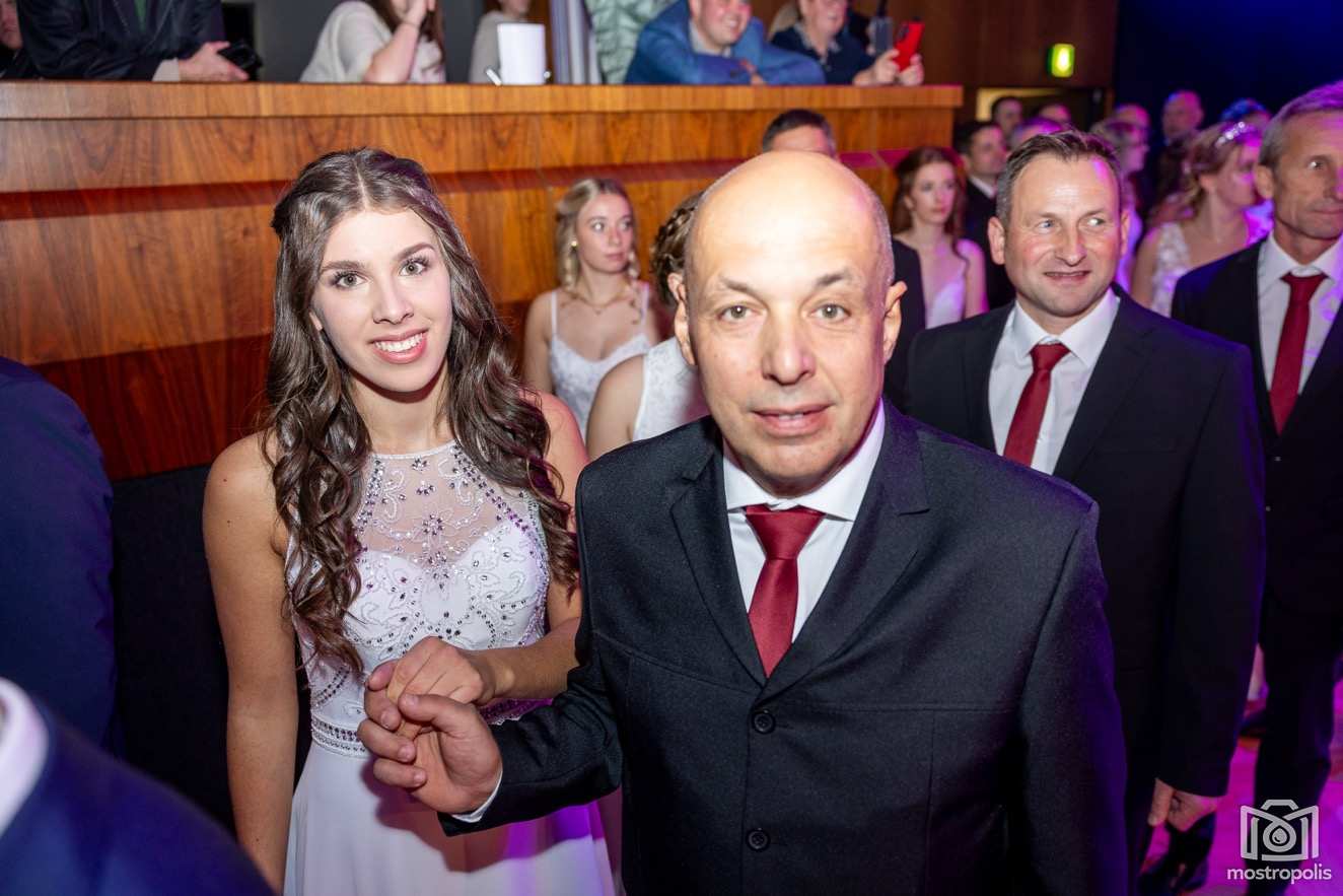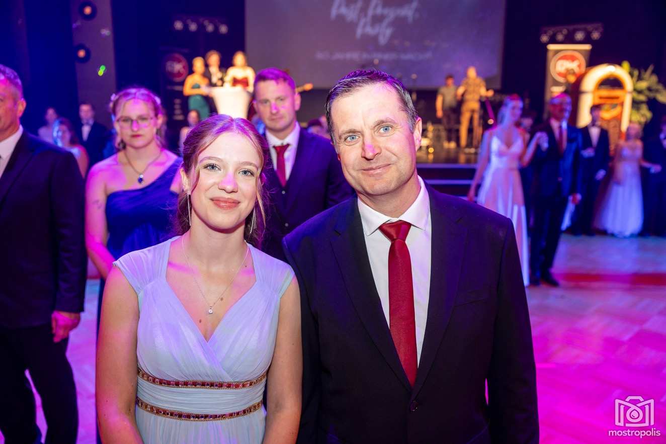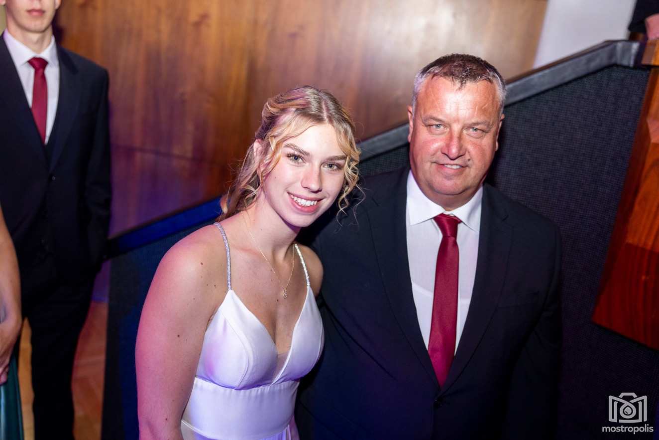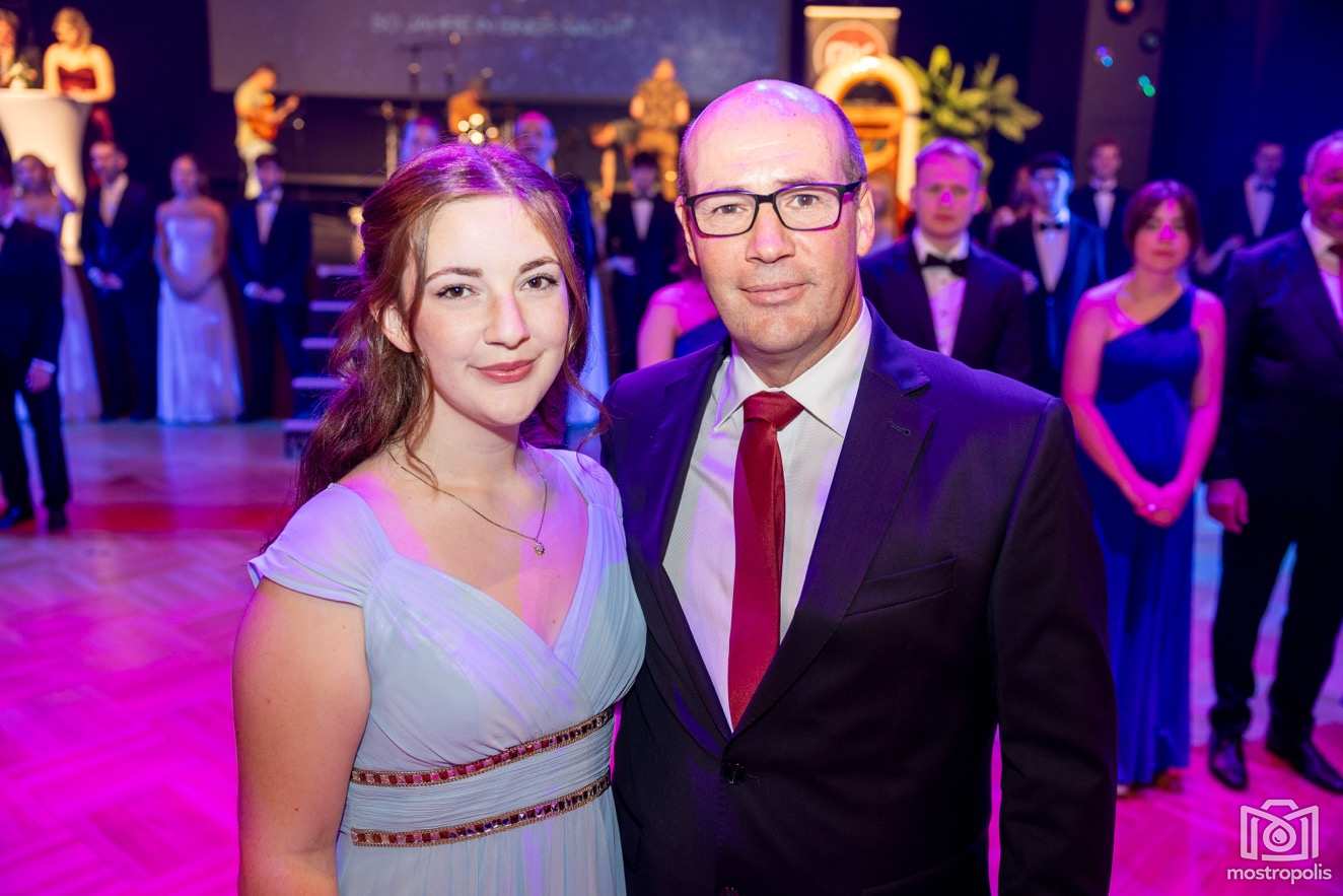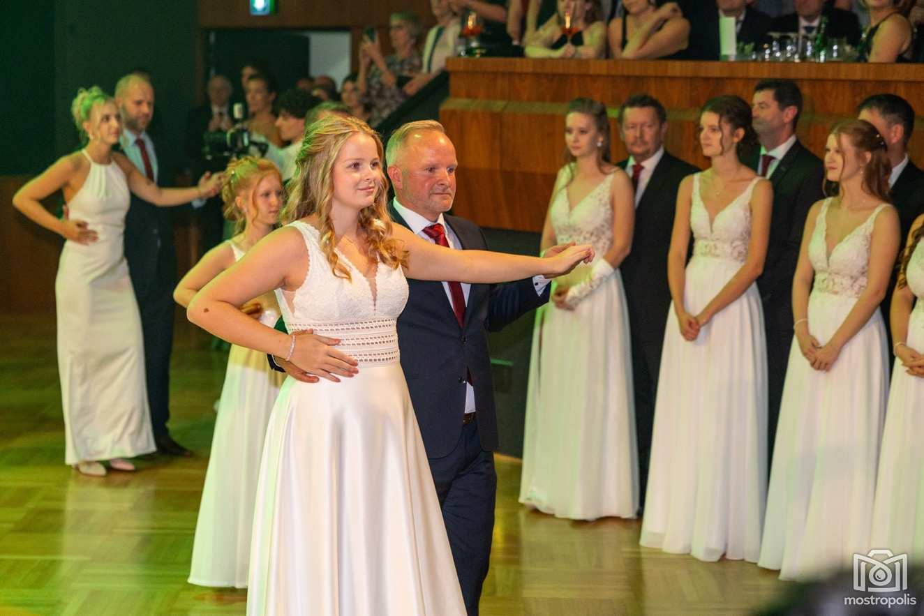 Karl Schlager hat eine bezaubernde Polonaise mit 42 Pärchen mit Vätern, einem Paar mit einer Mama sowie 19 Paaren mit Freunden einstudiert, die beeindruckte und viele berührte. Geboten wurde eine Bottle-, Disco-, Wein- und Cocktailbar sowie eine Absolventenbar mit Prosecco und Kaffee. Nicht fehlen durfte auch eine Fotobox und das Glücksrad im ersten Stock. Für schwungvolle Tanzbeine sorgte das Tanzorchester im Ballsaal und die Schulband in der Sporthalle, welche zu späterer Stunde DJ Alex Morgan mit fetten Beats so richtig zum Beben brachte.