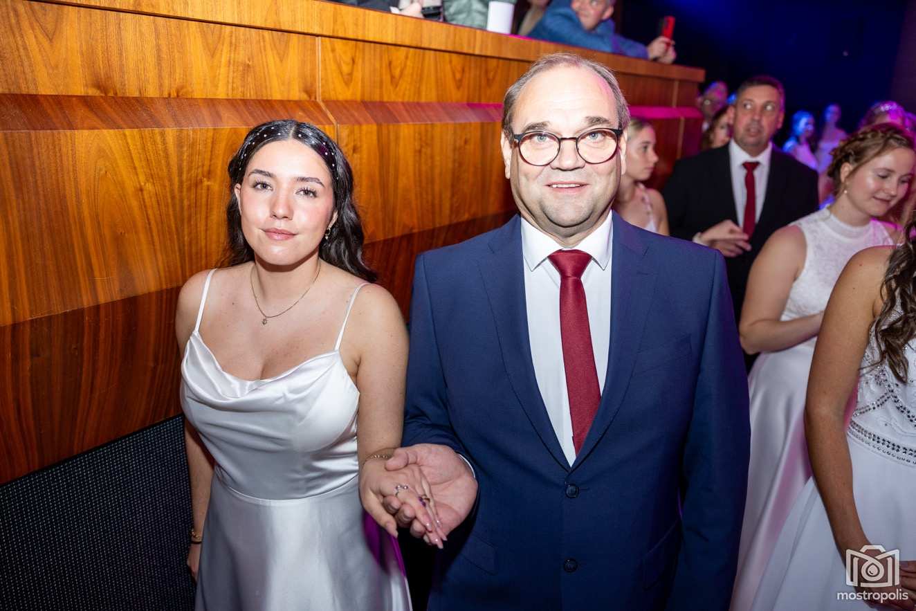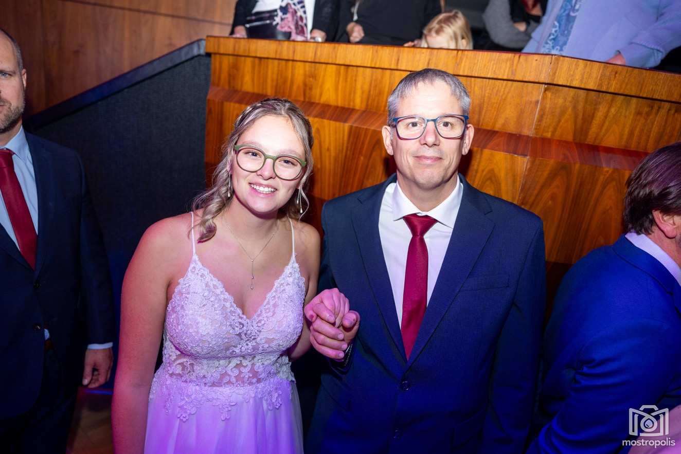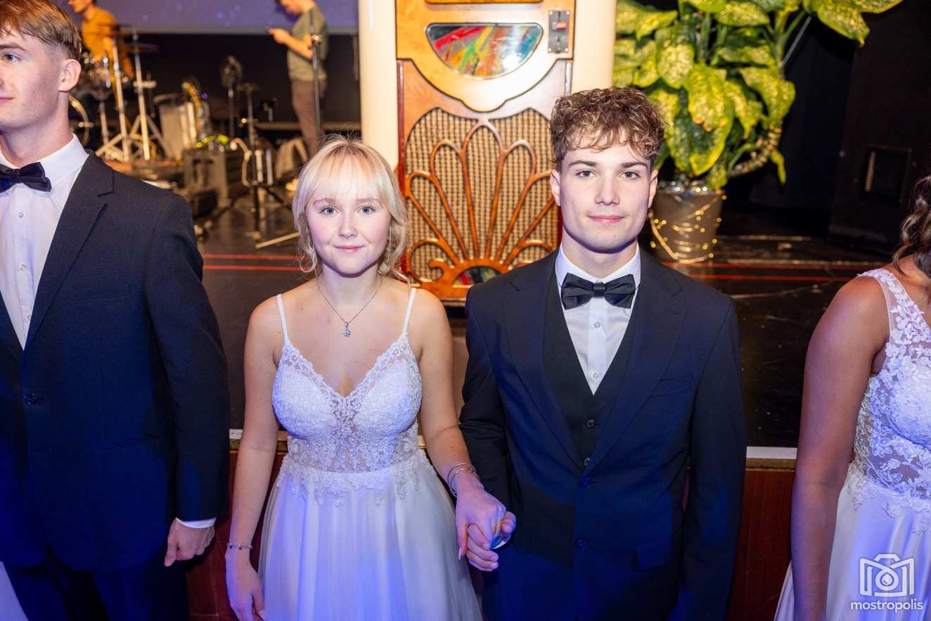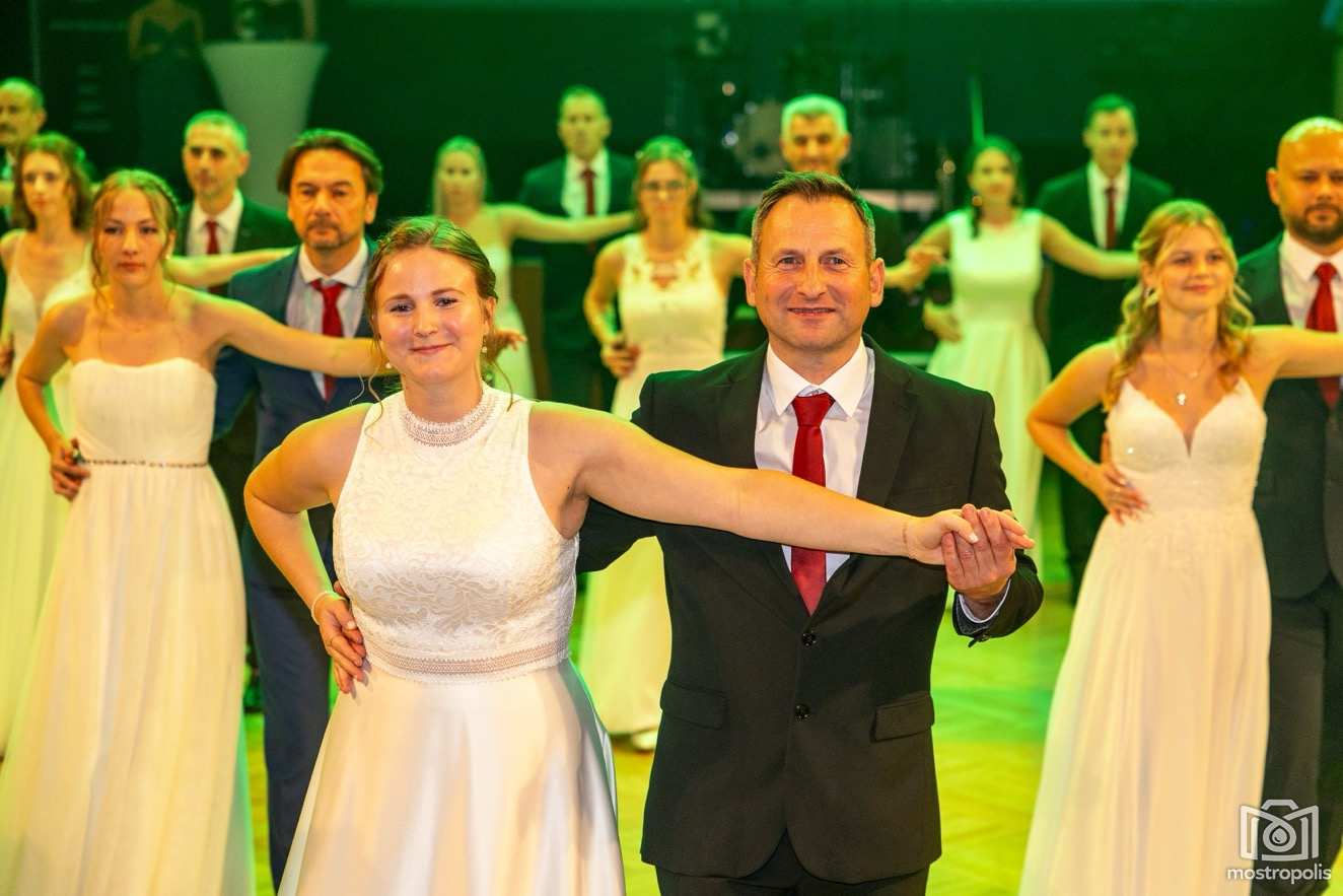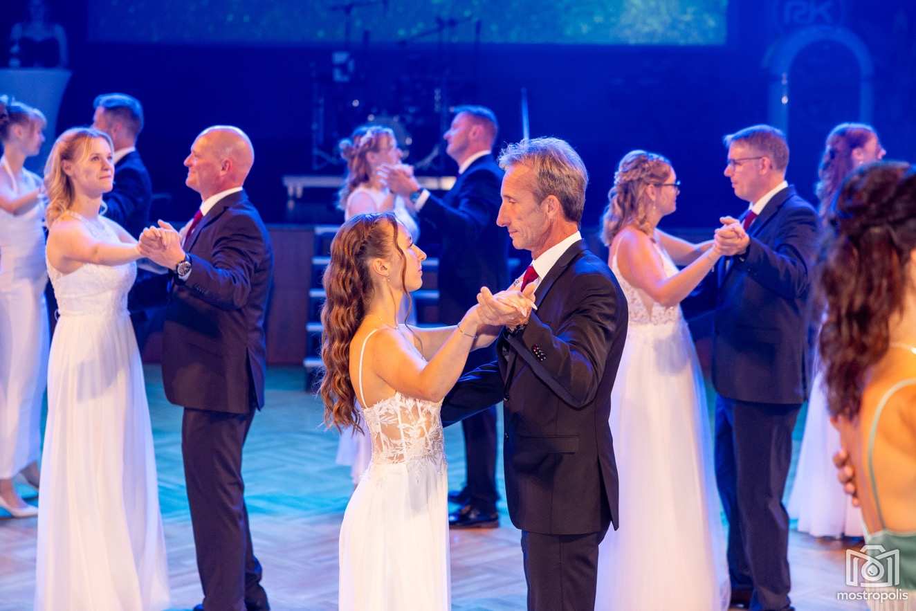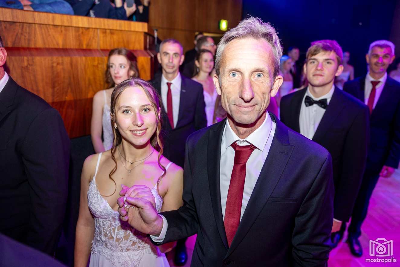 Karl Schlager hat eine bezaubernde Polonaise mit 42 Pärchen mit Vätern, einem Paar mit einer Mama sowie 19 Paaren mit Freunden einstudiert, die beeindruckte und viele berührte. Geboten wurde eine Bottle-, Disco-, Wein- und Cocktailbar sowie eine Absolventenbar mit Prosecco und Kaffee. Nicht fehlen durfte auch eine Fotobox und das Glücksrad im ersten Stock. Für schwungvolle Tanzbeine sorgte das Tanzorchester im Ballsaal und die Schulband in der Sporthalle, welche zu späterer Stunde DJ Alex Morgan mit fetten Beats so richtig zum Beben brachte.