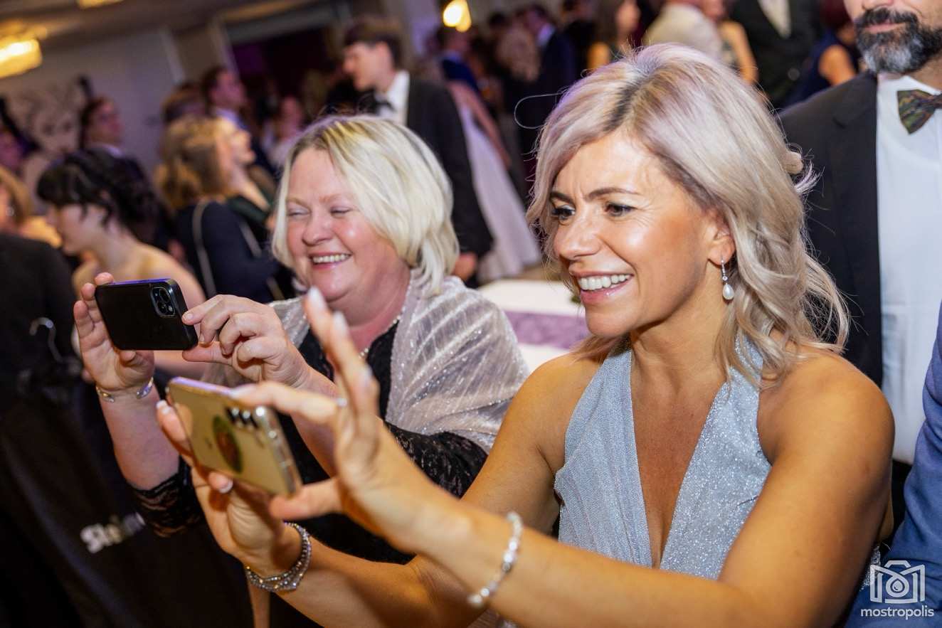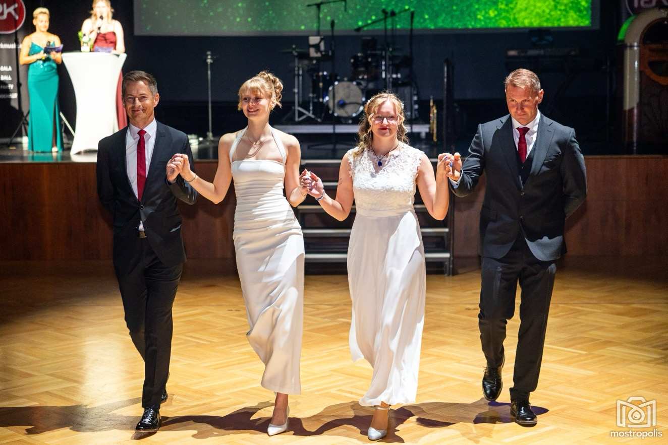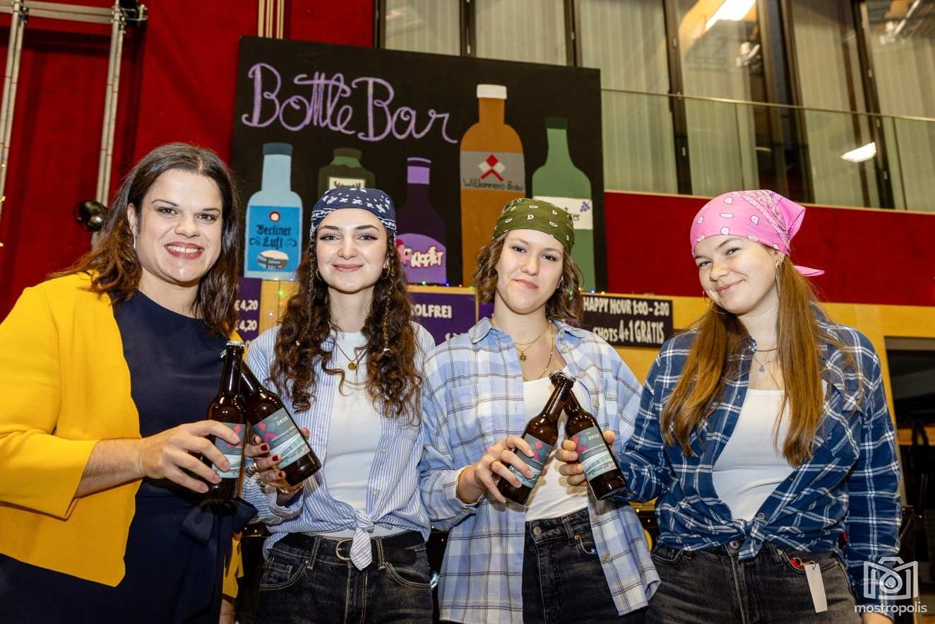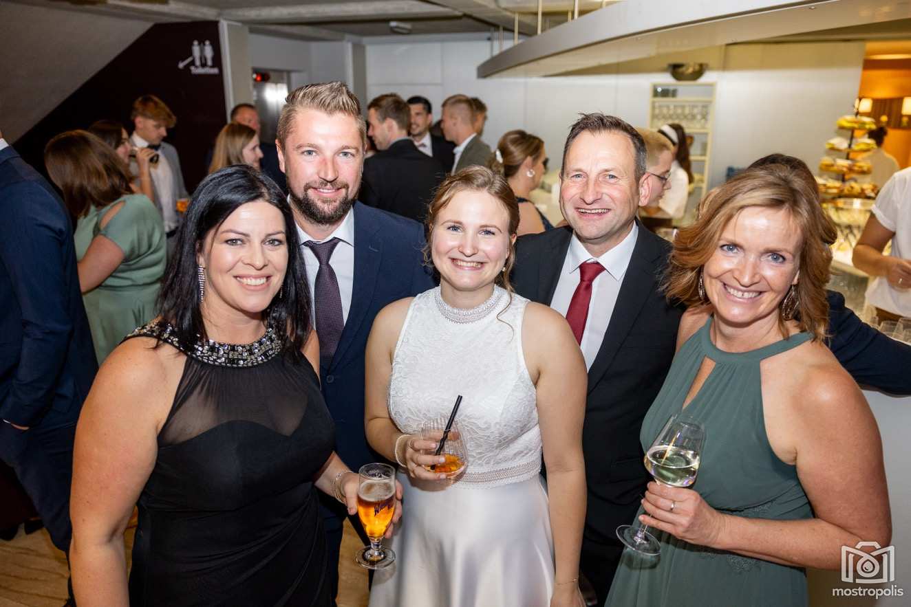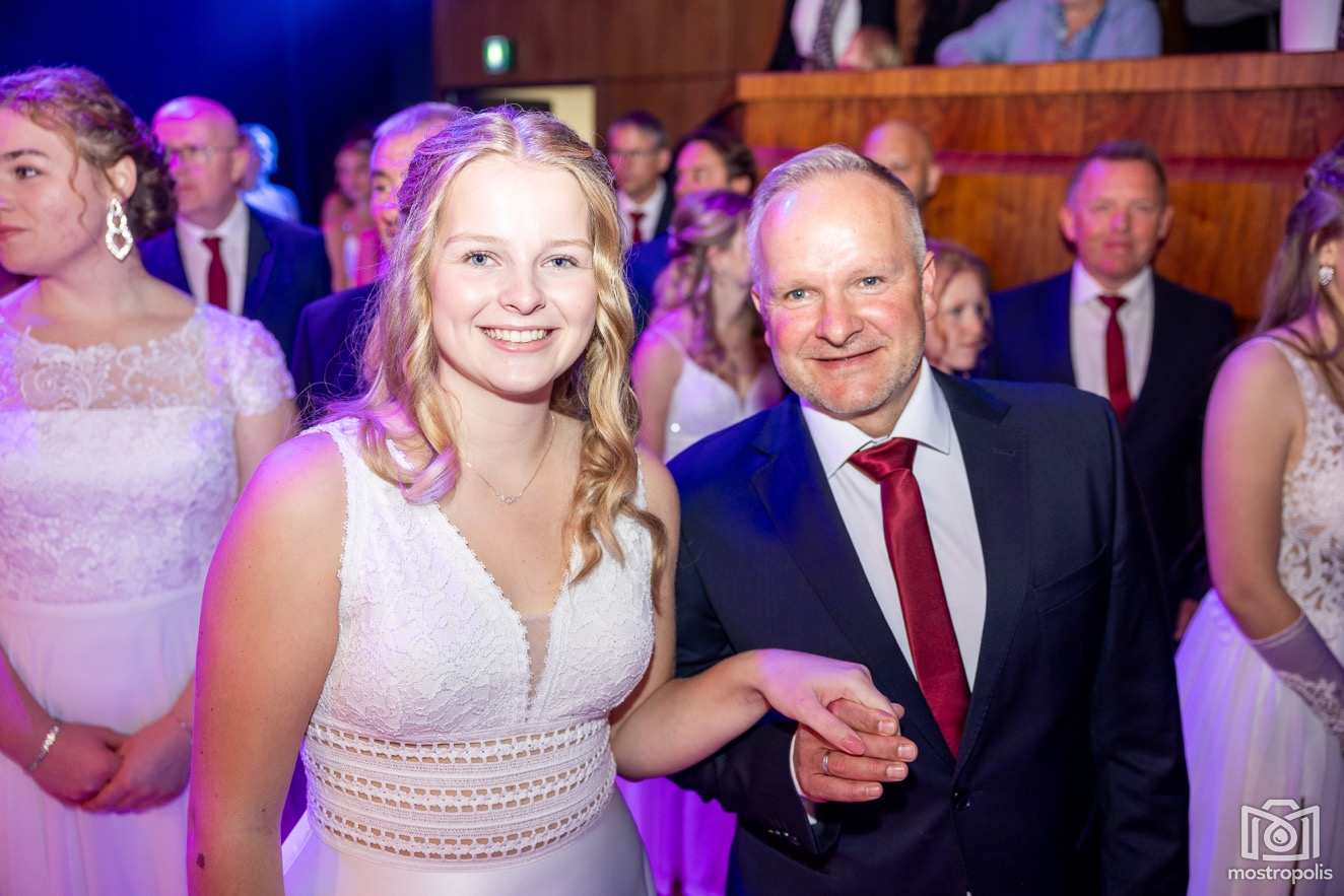 Karl Schlager hat eine bezaubernde Polonaise mit 42 Pärchen mit Vätern, einem Paar mit einer Mama sowie 19 Paaren mit Freunden einstudiert, die beeindruckte und viele berührte. Geboten wurde eine Bottle-, Disco-, Wein- und Cocktailbar sowie eine Absolventenbar mit Prosecco und Kaffee. Nicht fehlen durfte auch eine Fotobox und das Glücksrad im ersten Stock. Für schwungvolle Tanzbeine sorgte das Tanzorchester im Ballsaal und die Schulband in der Sporthalle, welche zu späterer Stunde DJ Alex Morgan mit fetten Beats so richtig zum Beben brachte.