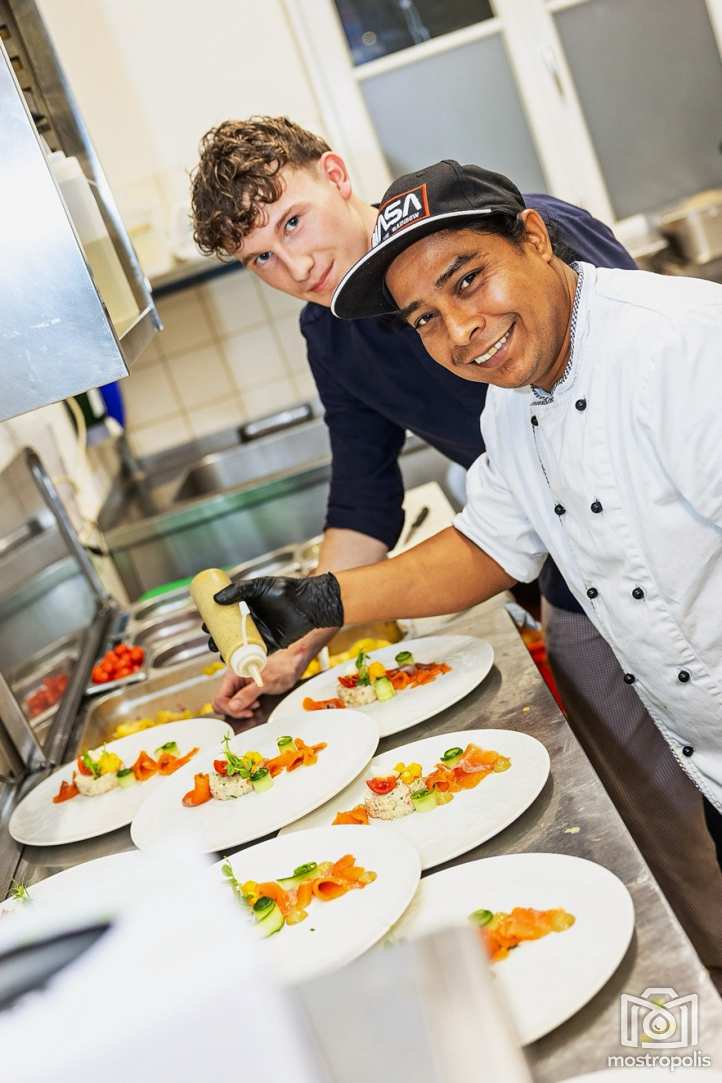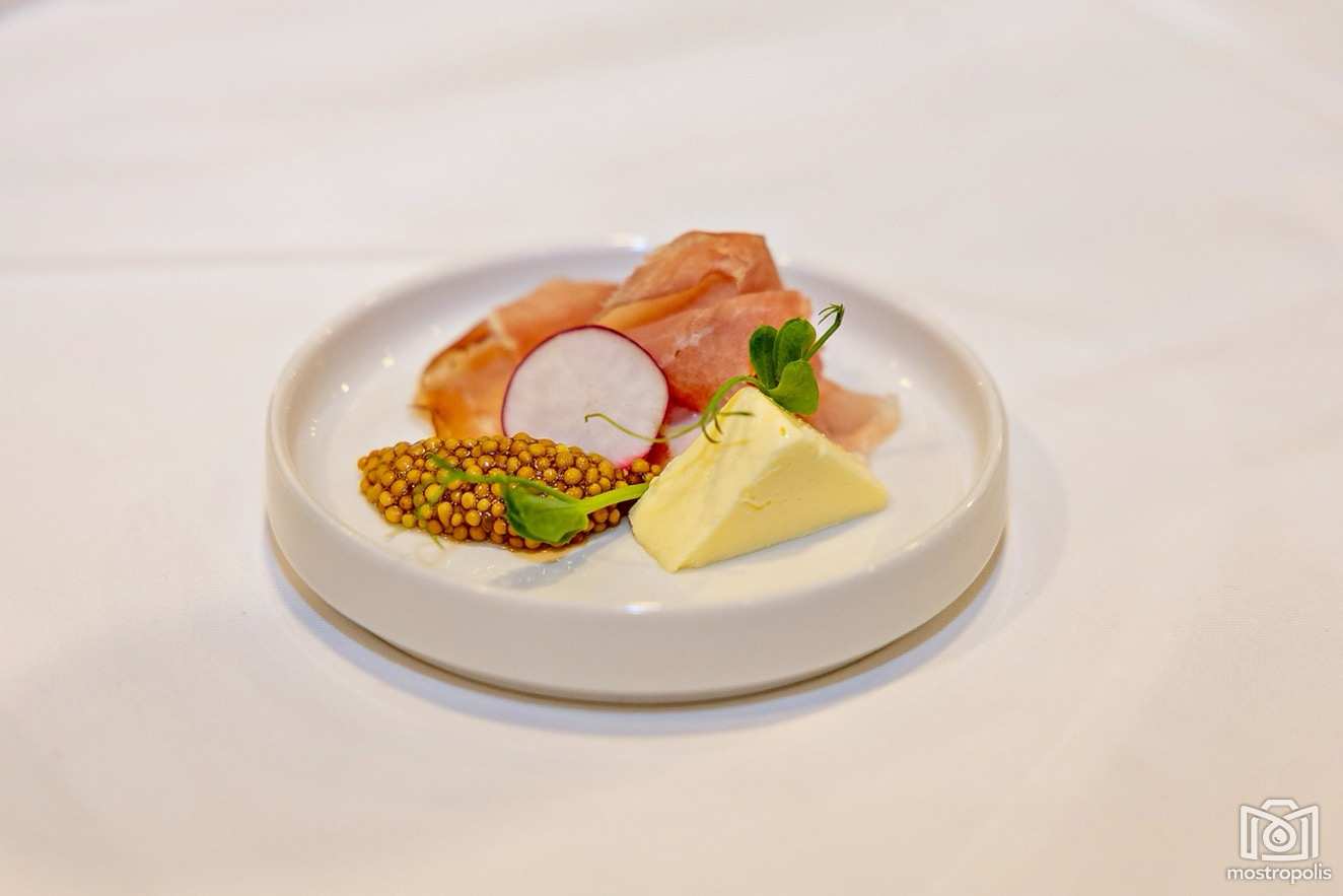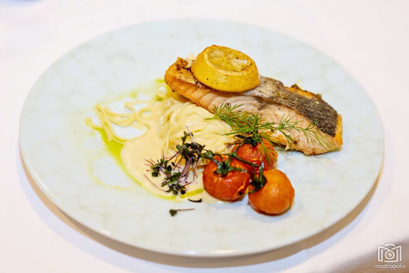 Weihnachtsmenü: Duett vom Fisch - gebeizte Lachsforelle, Tartar vom Räucherfisch, Honig-Senf-Dip, Dille / Erdäpfelcreme Suppe, Schwarzbrot Chips / Mittelstück vom Lachs, cremige Tagliatelle, heimische Kräuter / Kalbs-Butterschnitzerl, getrüffelter Erdäpfelstampf, Pfeffersauce / Vanillekipferl-Moussse, Glühweiin-Sauce.