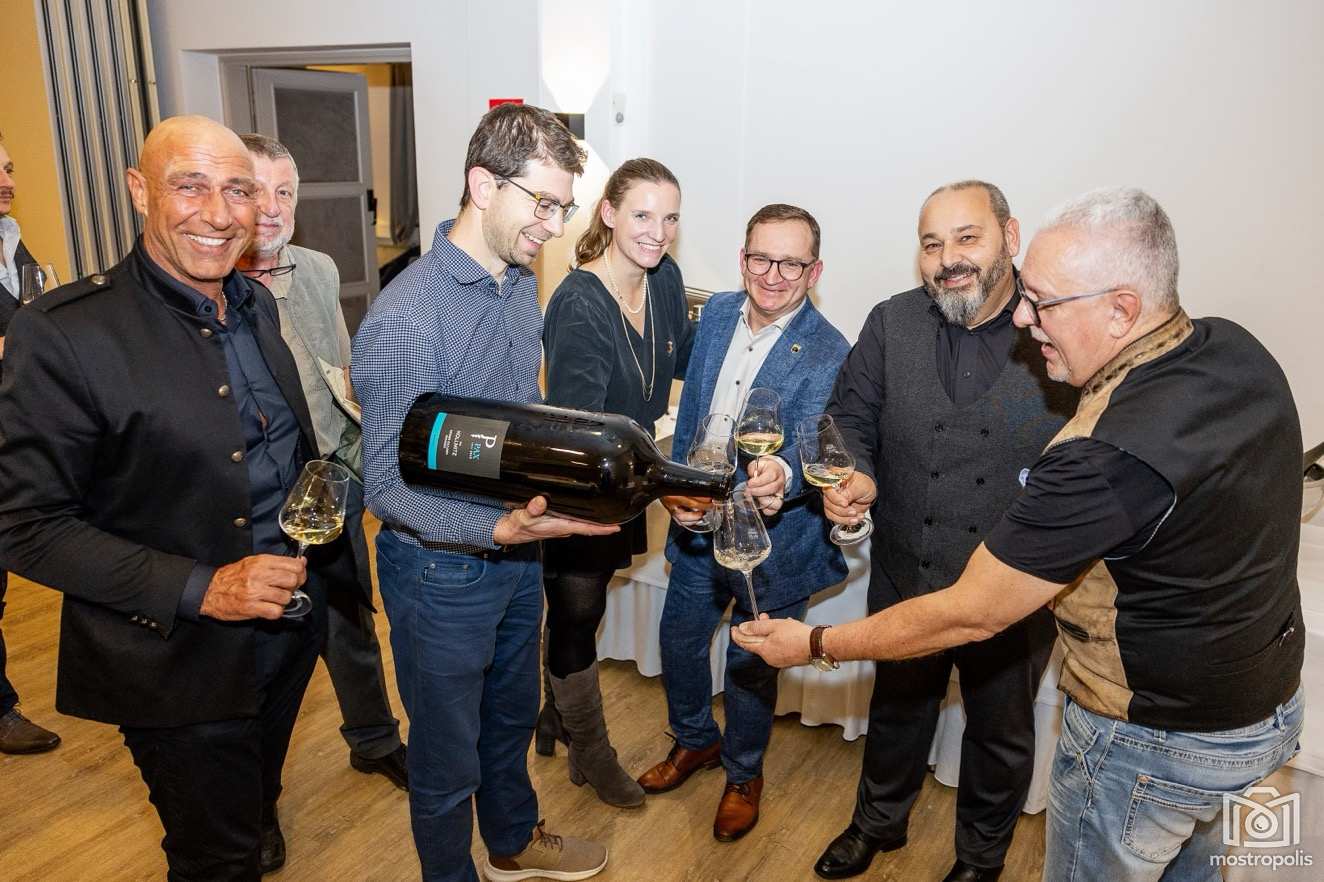 Weine: GV Federspiel Weissenkirchen 2024, Riesling Federspiel Wösendorf 2024, Chardonnay Wachauer Reserve 2021, GV Smaragd Pichl Point 2023 und GV Smaragd Kollmitz 2021 aus der 9-Liter Flasche (Salmanazar).