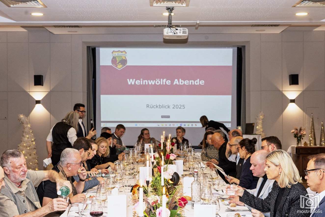 Nach einem wärmenden Begrüßungspunsch ging es in den festlich geschmückten Saal, wo mit vielen Bildern die Ereignisse des letzten Clubjahres Revue passierten und schöne Erlebnisse wieder in Erinnerung kamen. Obmann Jürgen Nobis freute sich, dass von aktuell 47 Mitgliedern knapp zwei Drittel mit dieser Feier das Clubjahr ausklingen ließen. Gastwinzer, Exkursionen und ein Herbstausflug ins Mittelburgenland stehen 2026 am Programm.