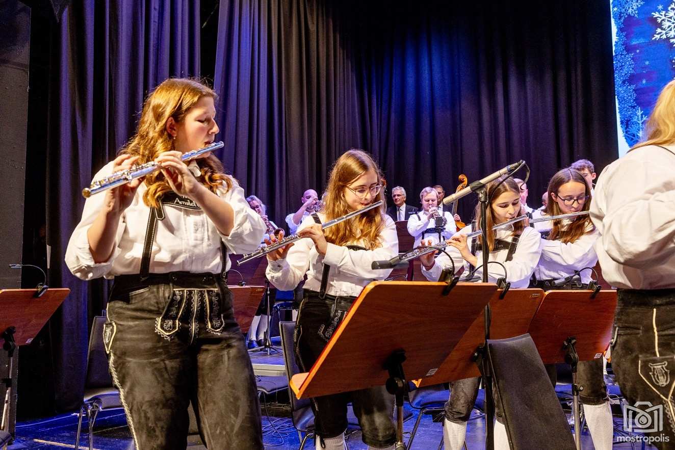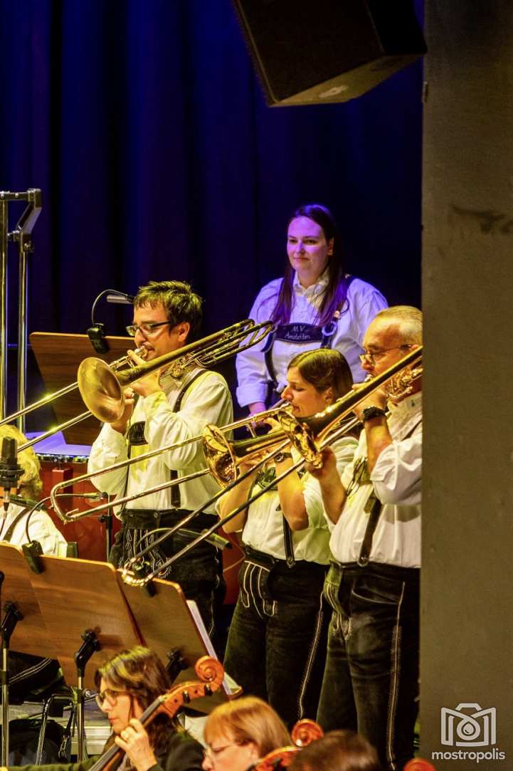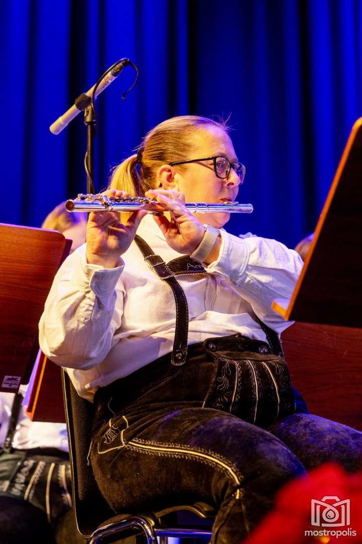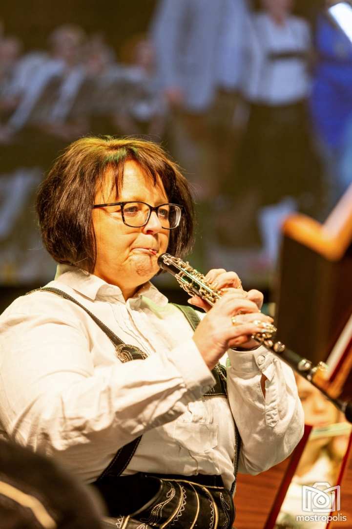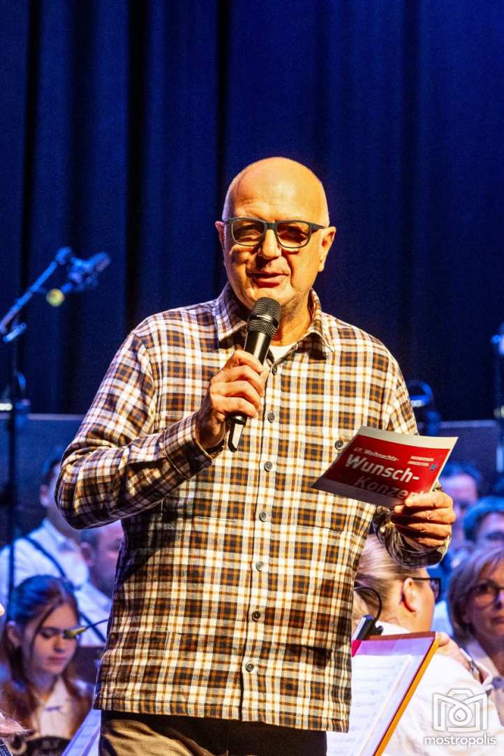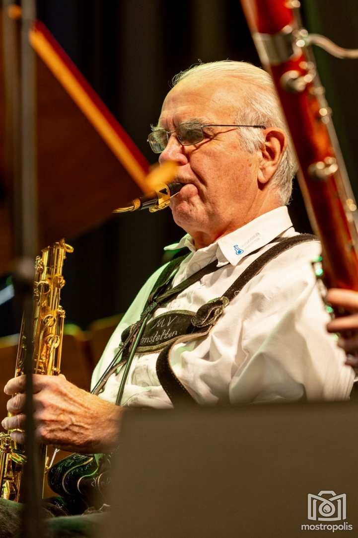 Nach der Begrüßung durch Obmann Herbert Klaus führte mit gewohnt launigem Charme Moderator Ernst Mayer durch das abwechslungsreiche Programm. Heuer reichte der musikalische Bogen von Fanfare und Marsch über alpine Inspirationen (in Erinnerung an die Konzertreise nach Wolkenstein/Südtirol) bis hin zu Bette Midler und einem Medley in Gedenken an Udo Jürgens.