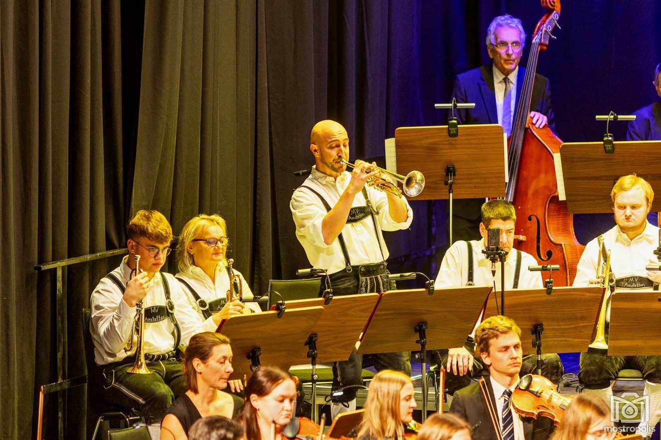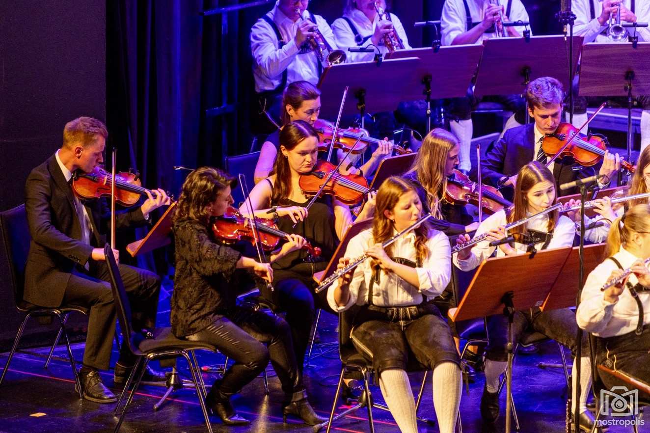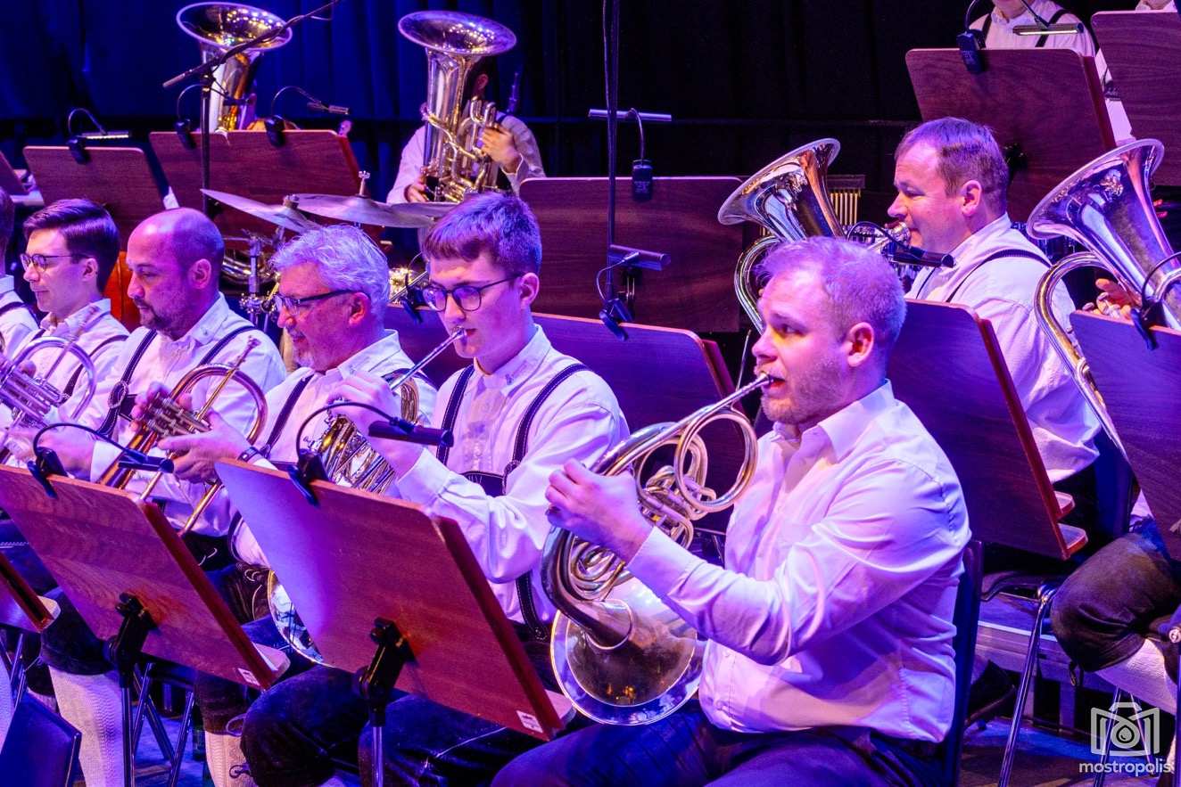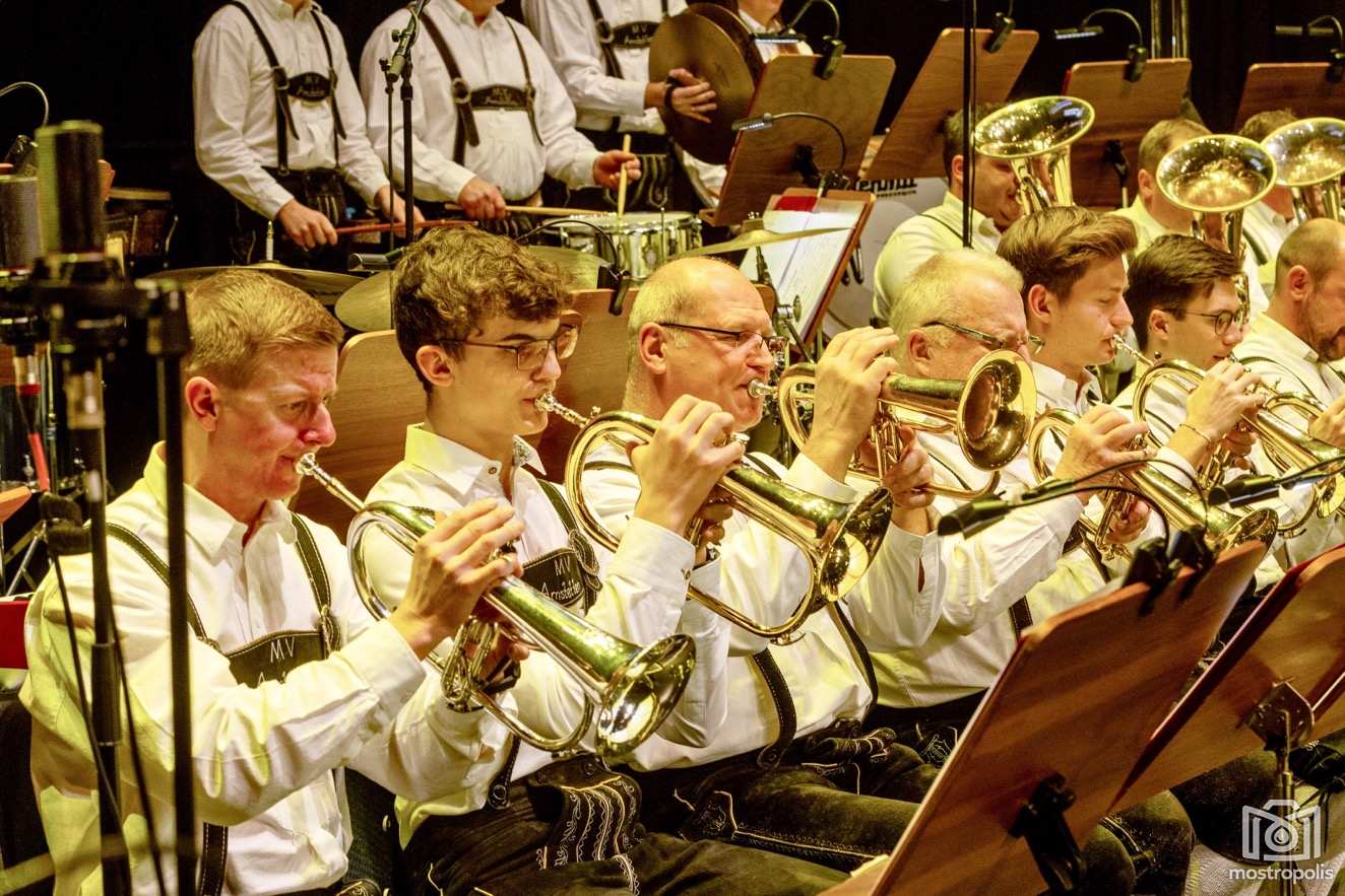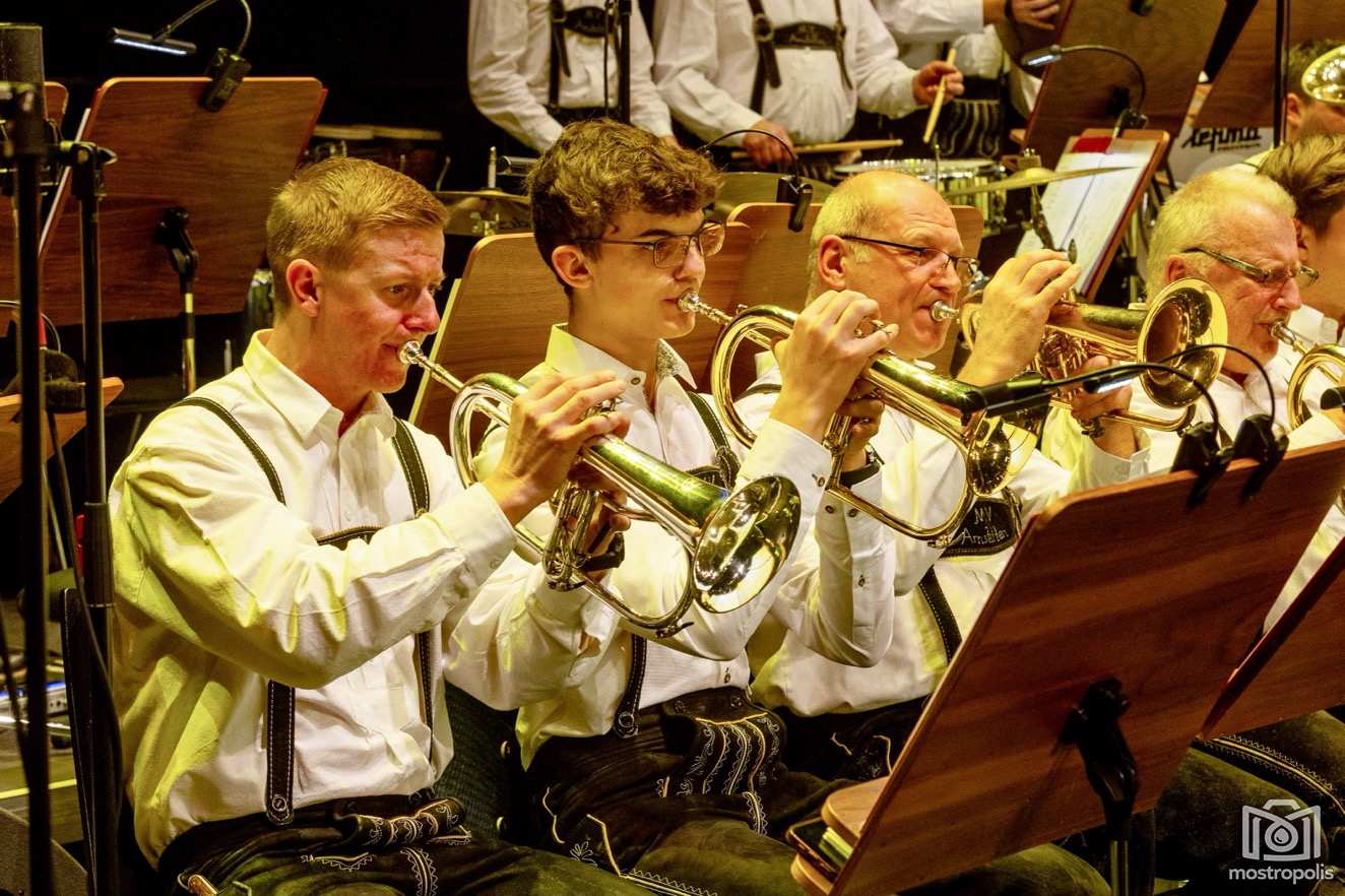 Nach der Begrüßung durch Obmann Herbert Klaus führte mit gewohnt launigem Charme Moderator Ernst Mayer durch das abwechslungsreiche Programm. Heuer reichte der musikalische Bogen von Fanfare und Marsch über alpine Inspirationen (in Erinnerung an die Konzertreise nach Wolkenstein/Südtirol) bis hin zu Bette Midler und einem Medley in Gedenken an Udo Jürgens.