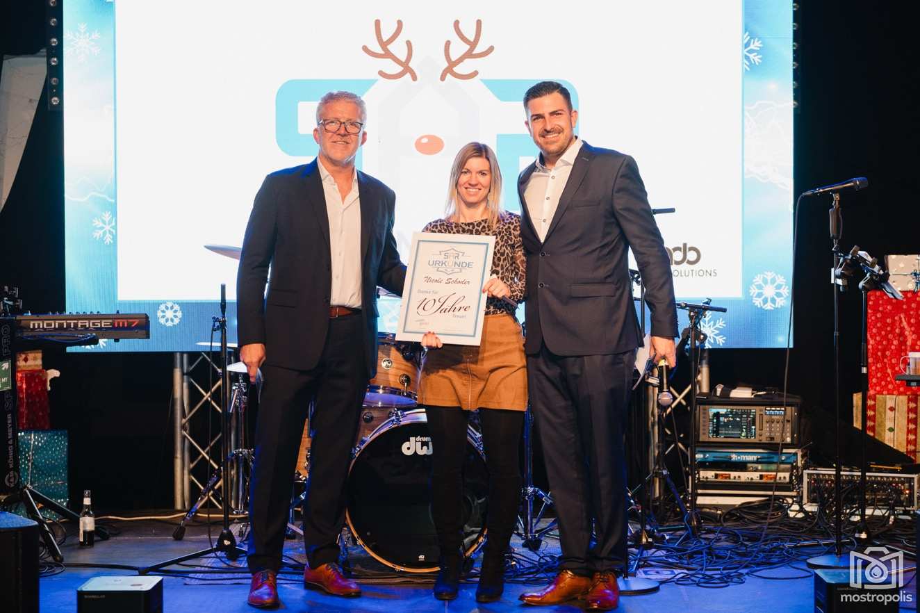 Auch die Treue und Loyalität zum Unternehmen wurde von der Geschäftsleitung - allen voran Arno Reisinger und Roman Prinz - gewürdigt. Und so wurden die besten MitarbeiterInnen für 5, 10 und 15 Jahre Firmenzugehörigkeit geehrt.