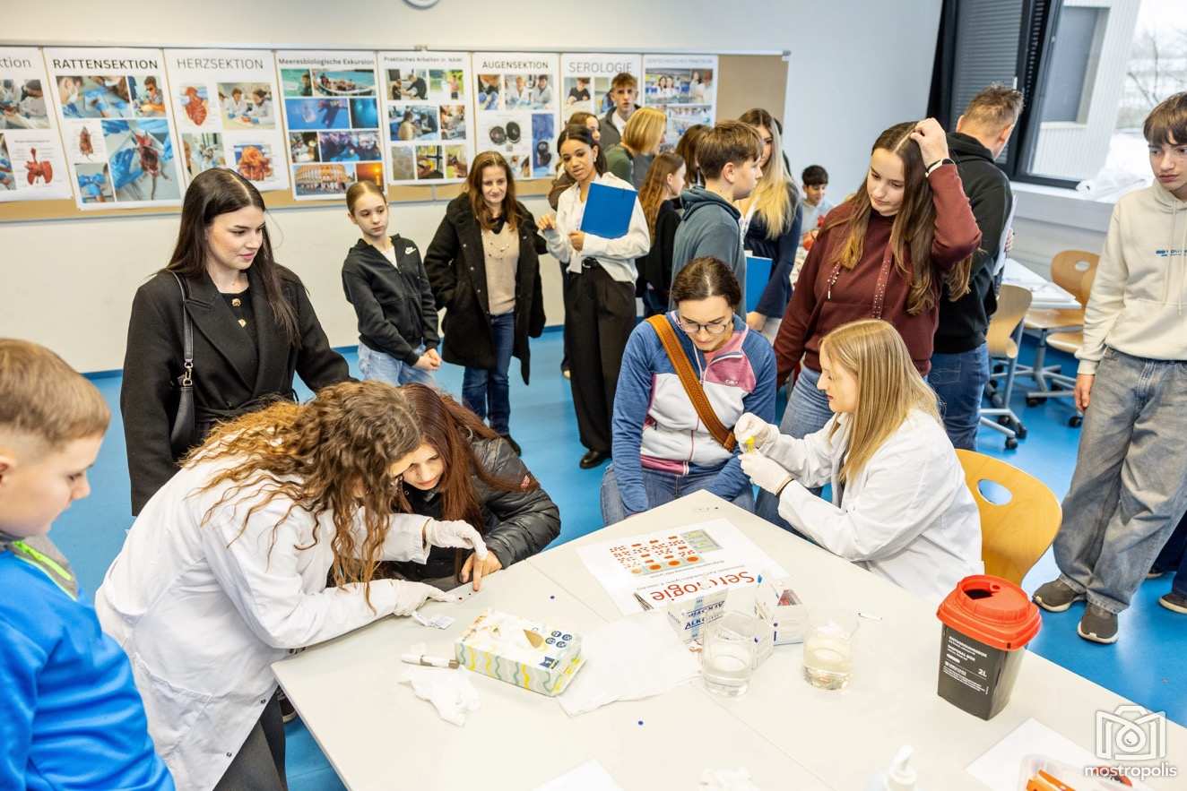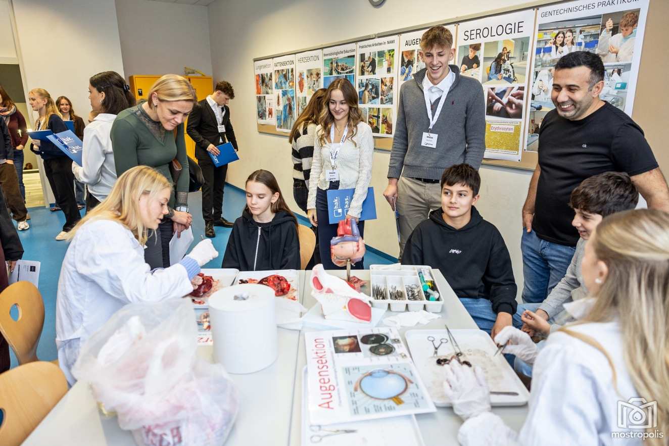 Lebendig präsentiert wurden auch allgemeinbildende Fächer wie Naturwissenschaften oder Sprachen. Das junge Publikum konnte Herz- und Augensektionen beiwohnen, sich die Blutgruppe bestimmen lassen, ein Video über die Sprach- und Kulturwoche in Riga sehen oder sich in Office Management ein eigenes Bild mittels KI gestalten lassen. Selbstgemachte Tapas und Plinis machten den Besuchern die Sprachen Russisch und Spanisch schmackhaft.