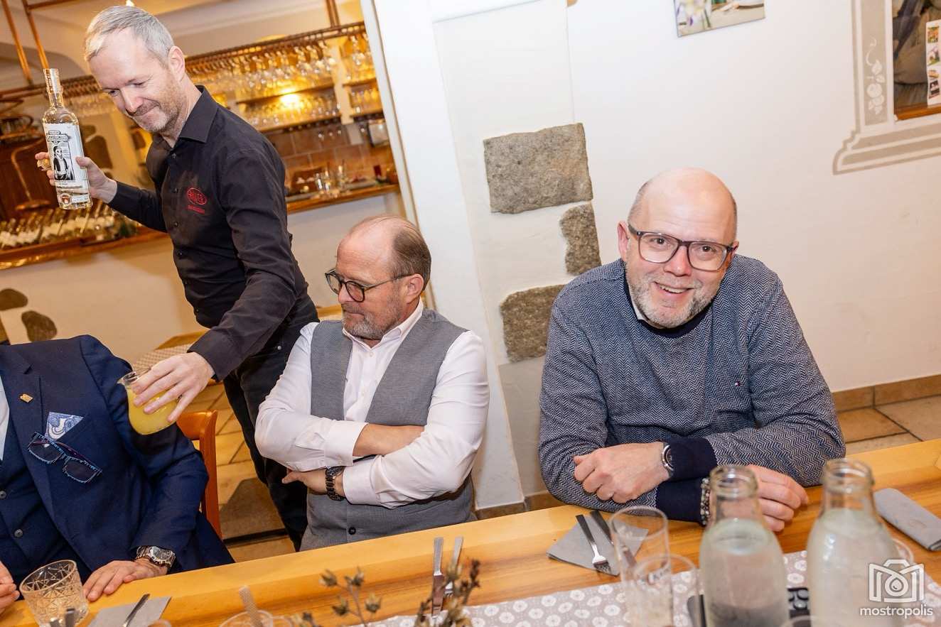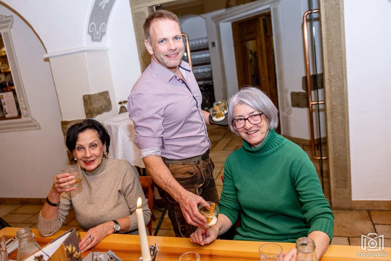 Bernhard Hauer, Serviceleiterin Andrea Hausberger und Catering-Mastermind Robert Gelbmann schenkten O-Vodka von der Destillerie Farthofer aus Öhling, Mezcal aus Mexiko, Kentucky Straight Bourbon Whiskey aus den U.S.A., alkoholfreien Tanqueray Gin aus Großbritannien, Brandy de Jerez Solera Gran Reserva aus Spanien, Rare Cask Rum aus Jamaika, Williamsbirne aus dem Hause Hauer sowie Sambuca aus Italien in die Gläser.