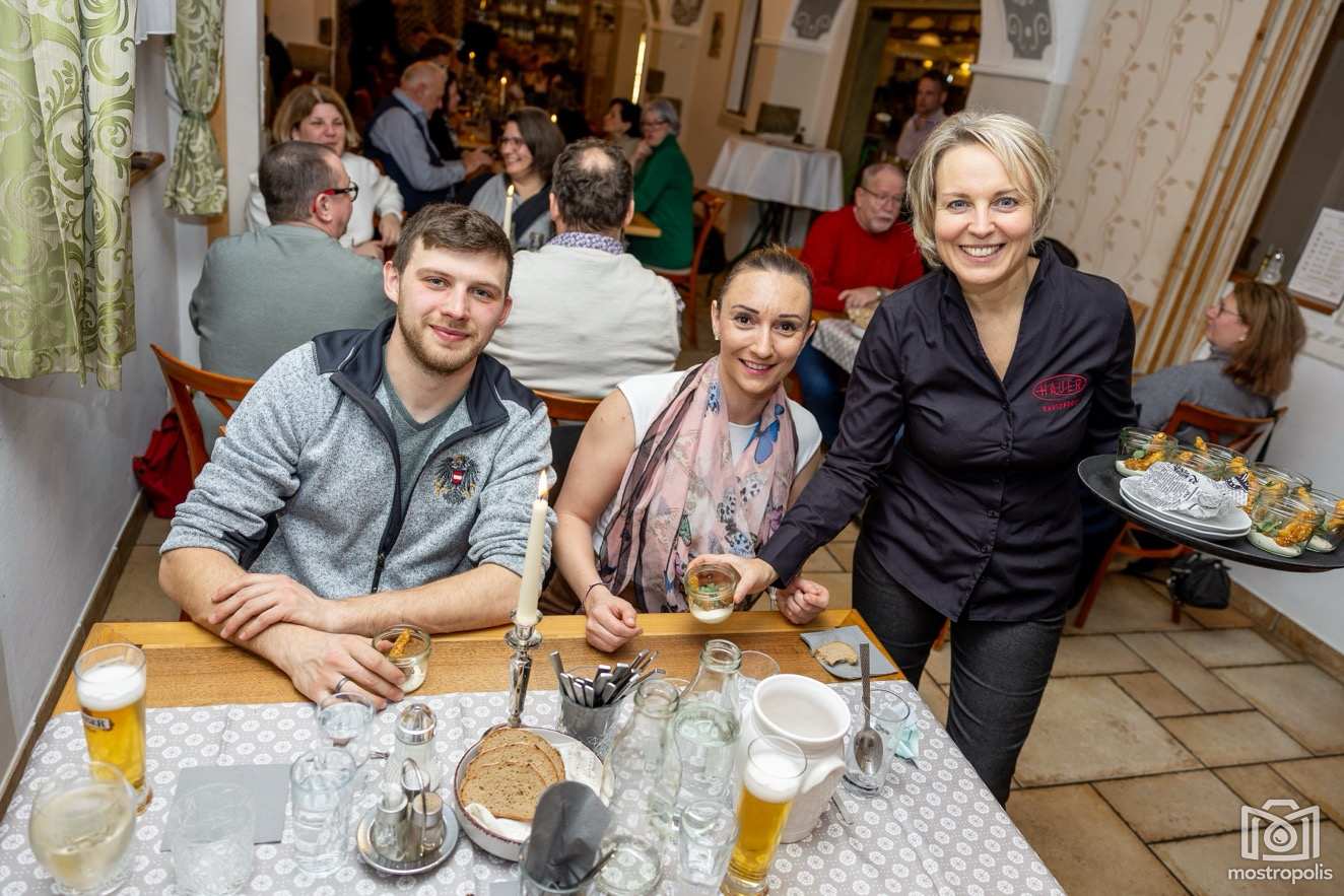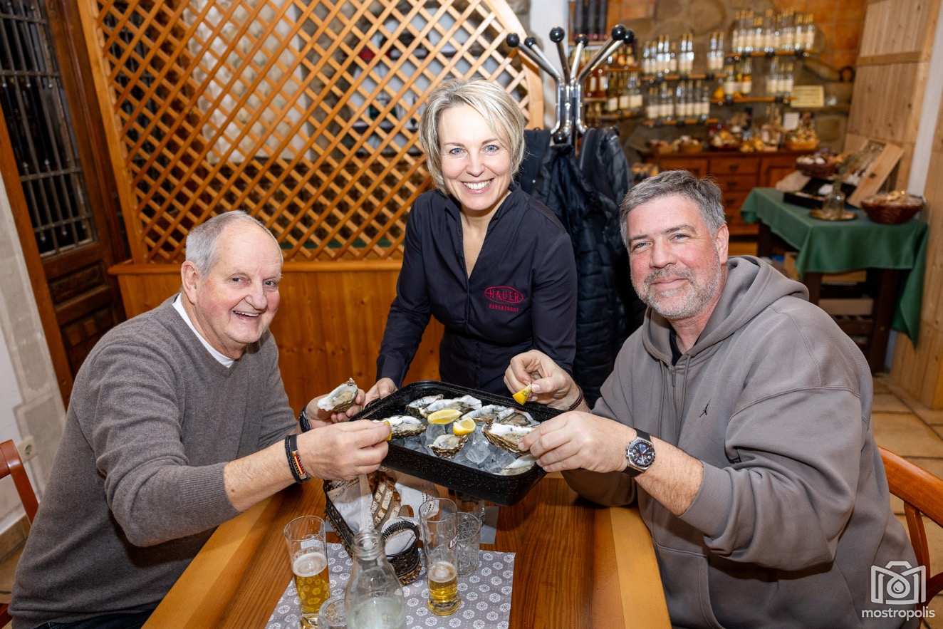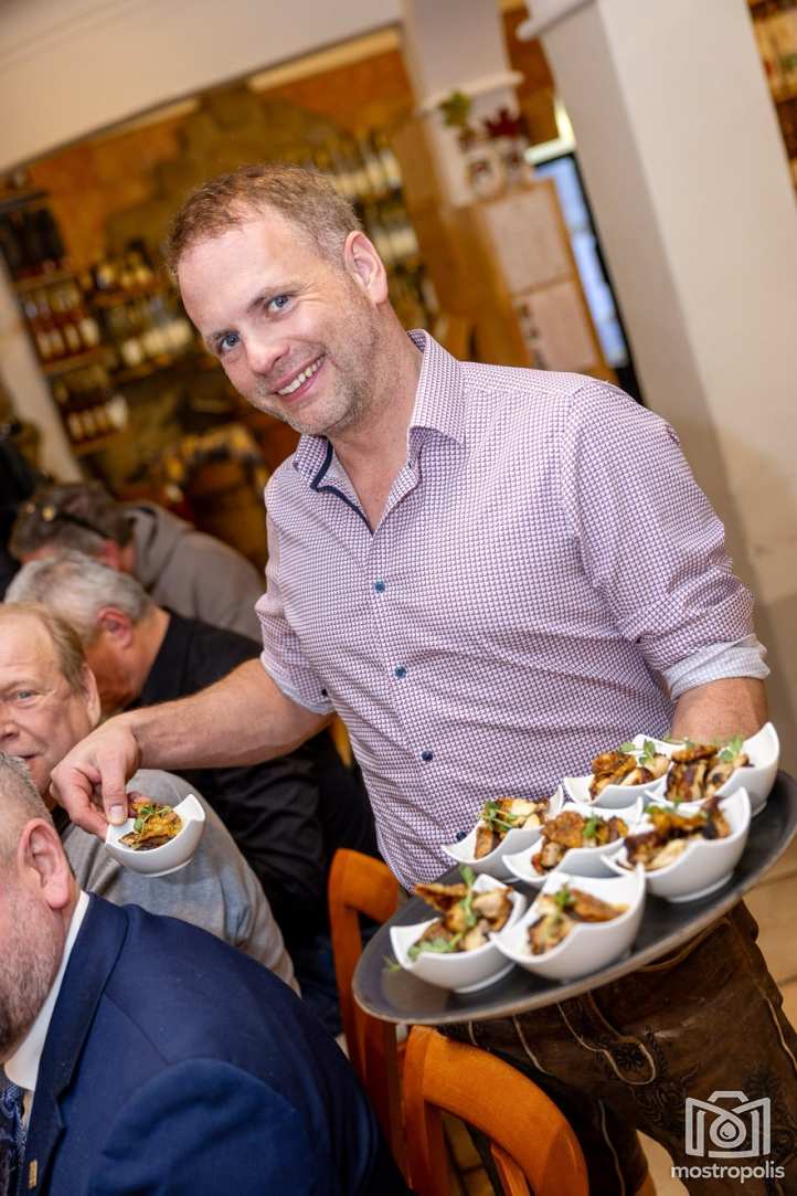 Küchenchef Thomas Naderer zauberte gemeinsam mit Maria Hauer erlesene Gaumenfreuden auf die Teller, wie Austern, Tacos al Pastor, panierte Avocadofingers, abgeflämtes Lachssushi mit Rosmarin, gebratene Ente mit Selleriepüree und Haselnusskrokant, Jerk Chicken mit Rum-Zwiebel Relish, flambierte Birne mit Vanilleeis und Hauer-Schmankerl.