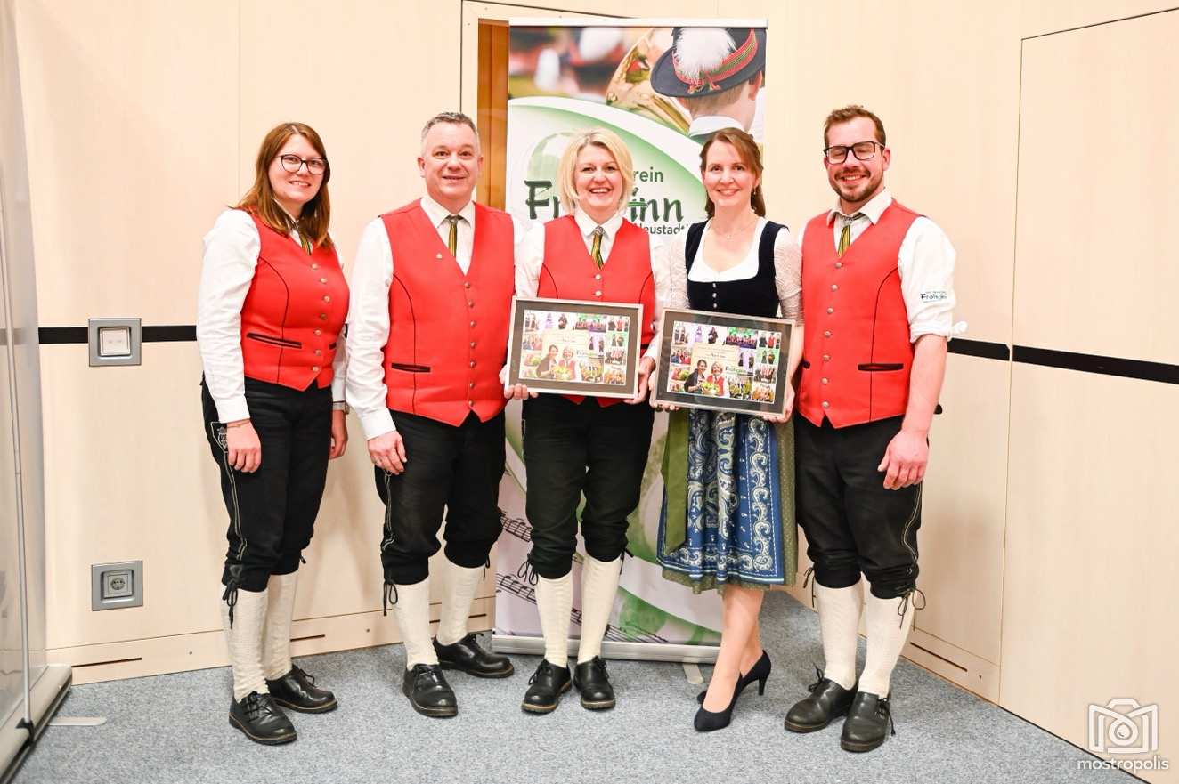 1. Foto, v.l.: Obmann Helmut Berger, Kapellmeister Franz-Peter Kriener, Johannes Wagner, Monika Berger (Raiffeisenbank Neustadtl), Alois Eder (Raiffeisenbank Region Amstetten) Vzbgm. Lukas Zeilinger u. Gerald Wagner (Regionalräte Raiffeisenbank Region Amstetten)