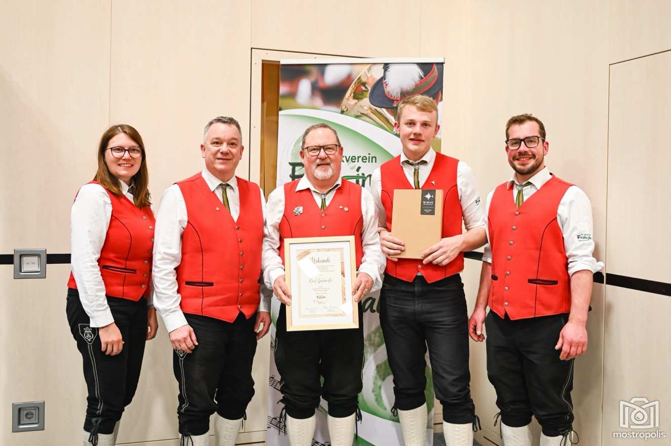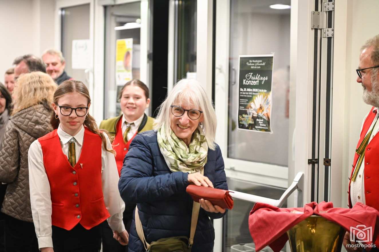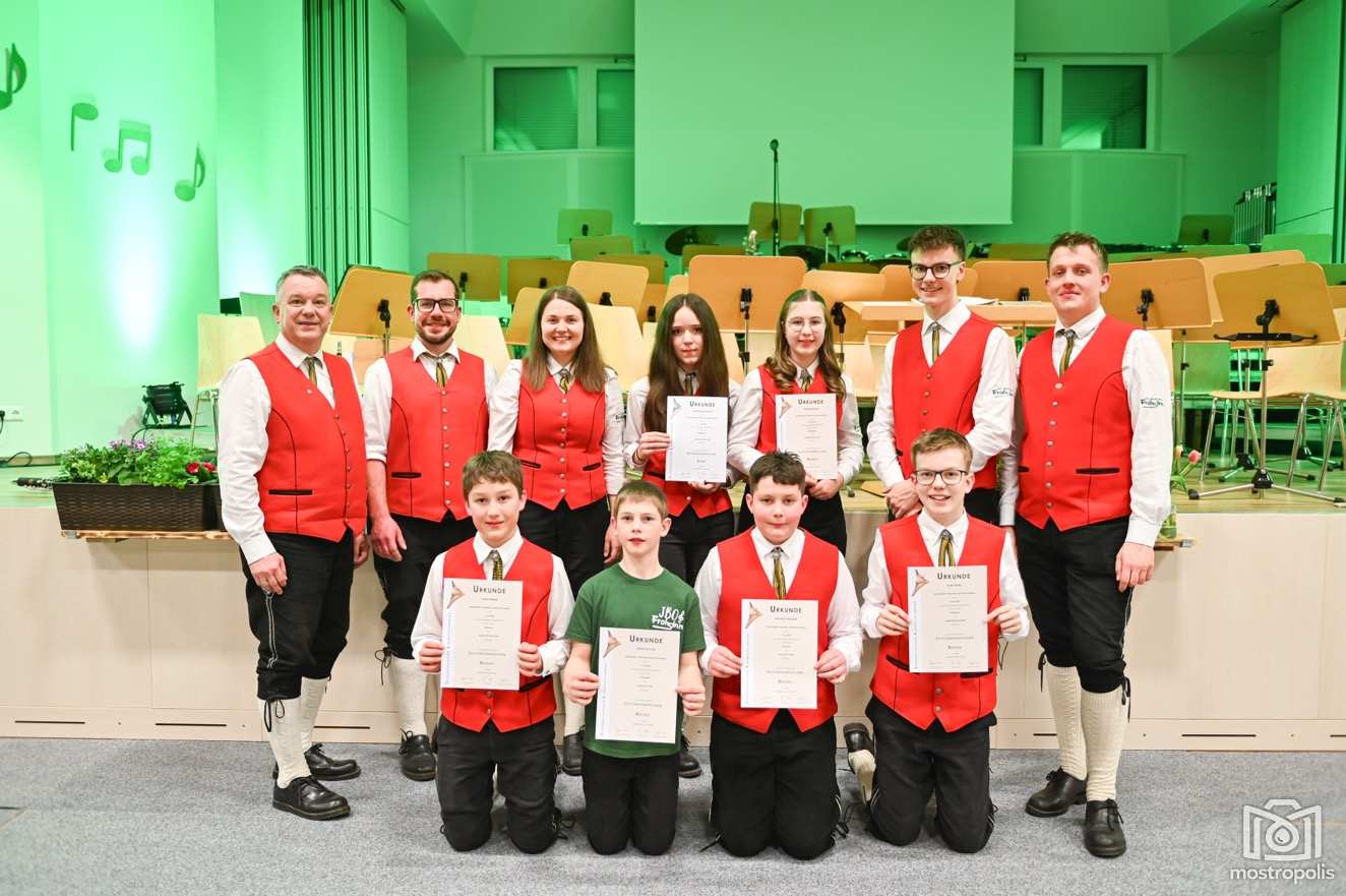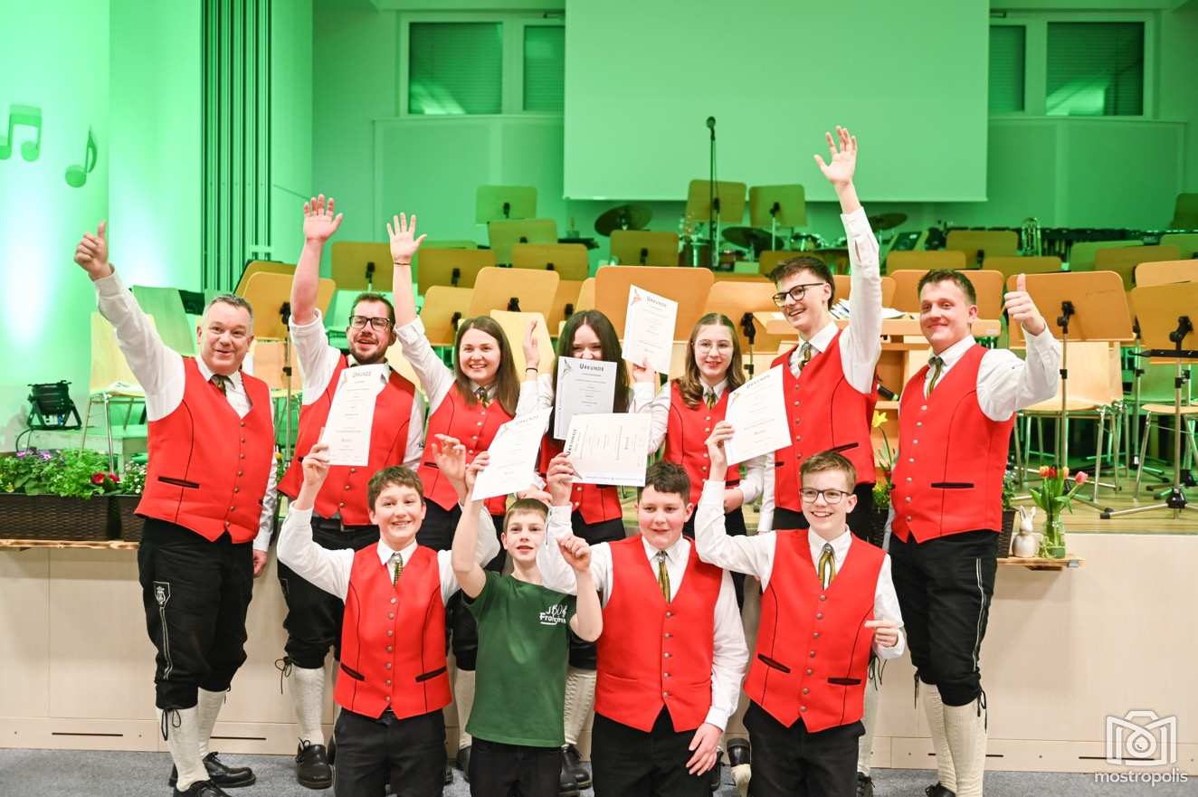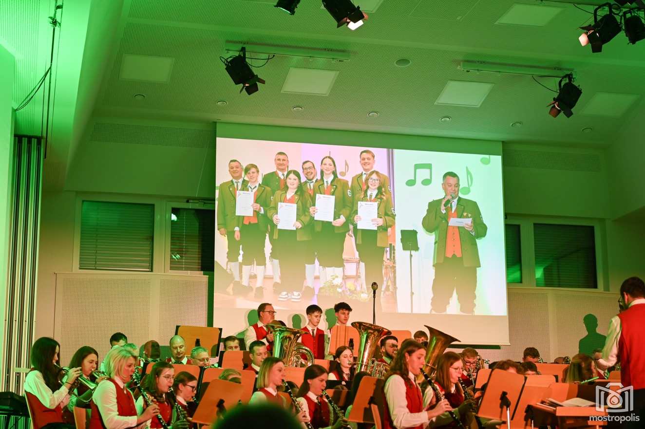 Besonderen Applaus erhielt das Jugendblasorchester, welches mehrere Stücke zum Besten gab. Der Musikverein unterstrich damit die große Bedeutung der Nachwuchsarbeit, die für die Zukunft des Vereins wichtig und unverzichtbar ist. Ein feierlicher Moment des Abends war die Ehrung von Karl Schmutz, der für seine langjährige und gewissenhafte Tätigkeit als Notenarchivar mit dem Verdienstzeichen „Notenarchivar“ ausgezeichnet wurde. Das Publikum würdigte seine Arbeit mit herzlichem Beifall.