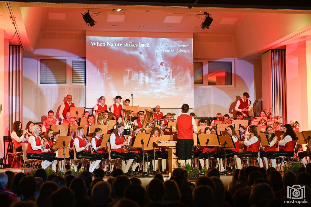 Über 400 Besucher und Besucherinnen folgten der Einladung und sorgten für einen voll besetzten Konzertsaal. Das Orchester präsentierte ein buntes und vielseitiges Programm, das von der schwungvollen Luftballonpolka über anspruchsvolle Konzertstücke und klassische Märsche bis hin zu einem mitreißenden Symphonic Rock Medley reichte. Die Musiker und Musikerinnen zeigten dabei eindrucksvoll ihr Können und ihre Begeisterung für die Blasmusik.