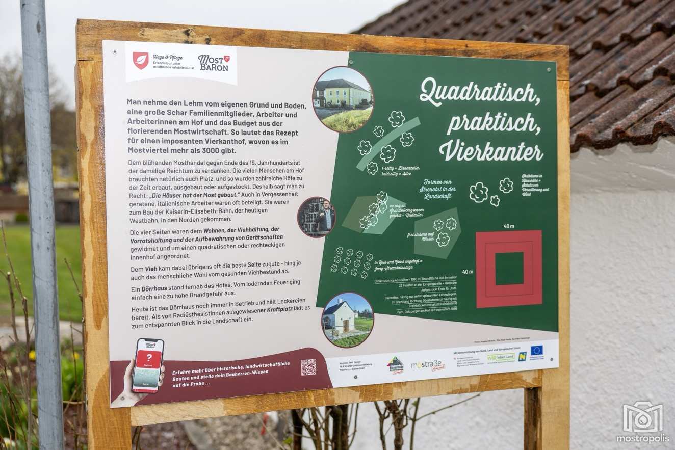 Der Lehrpfad beim Seppelbauer zeigt die Streuobstwiese als gepflegte Kulturlandschaft und Grundlage hochwertiger regionaler Produkte. Auf dem rund ein Kilometer langen Rundweg werden alte und junge Obstbestände, verschiedene Sorten, Ausblicke und das Dörrhaus als besonderer Platz am Weg erlebbar. Der Schwerpunkt liegt auf Pflege, Bewirtschaftung und der Bedeutung der Streuobstwiese für die Mostkultur.