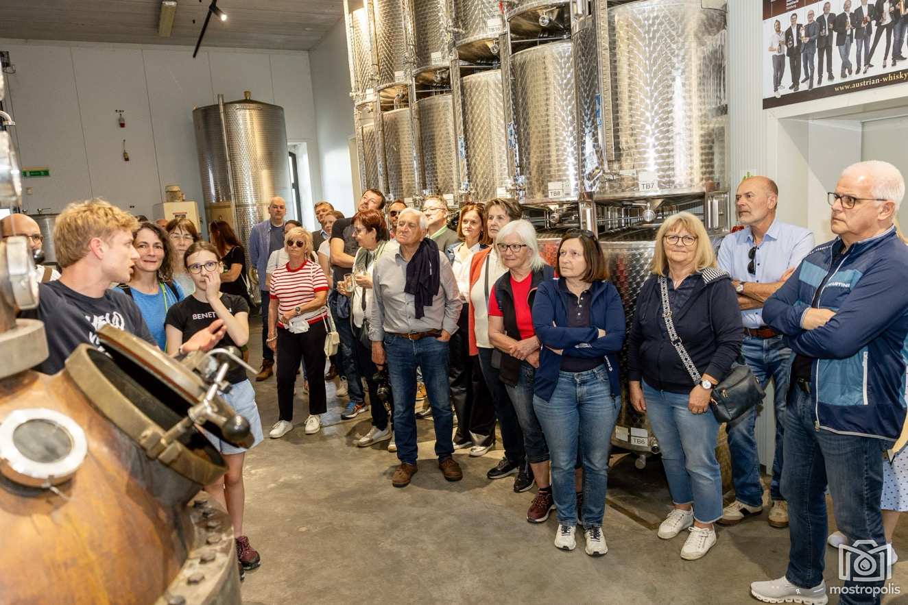 Und auch Josef Farthofer strahlte den ganzen Tag über das ganze Gesicht, wird doch auch sein Ausflugsziel, welches sowohl zur Produktion als auch als Schauraum mit Shop und Verkostung genutzt wird, bestens frequentiert. Bei Führungen in der Destillerie werden die Produktion des berühmten Mostello und anderer Brände und Liköre erläutert.