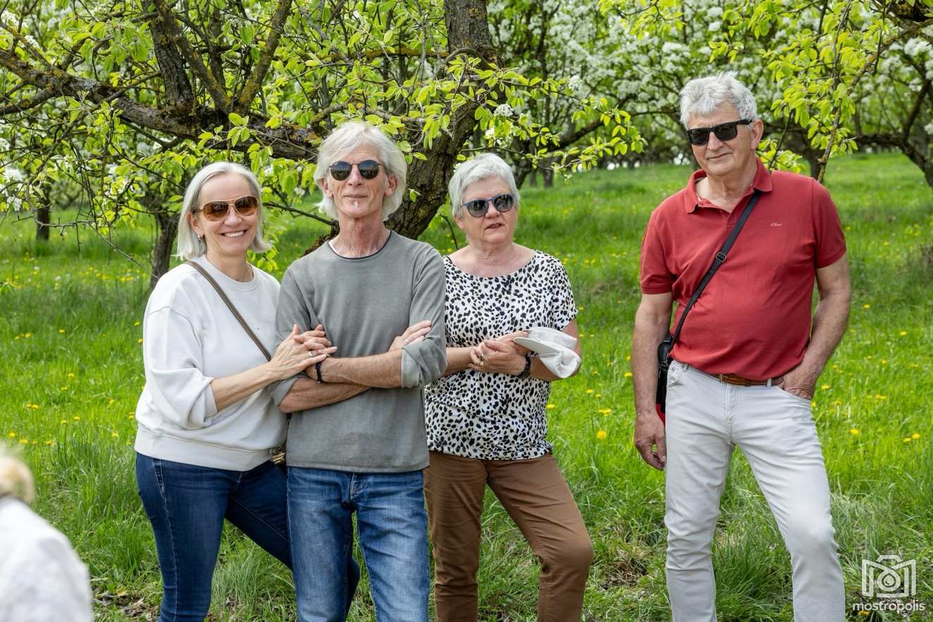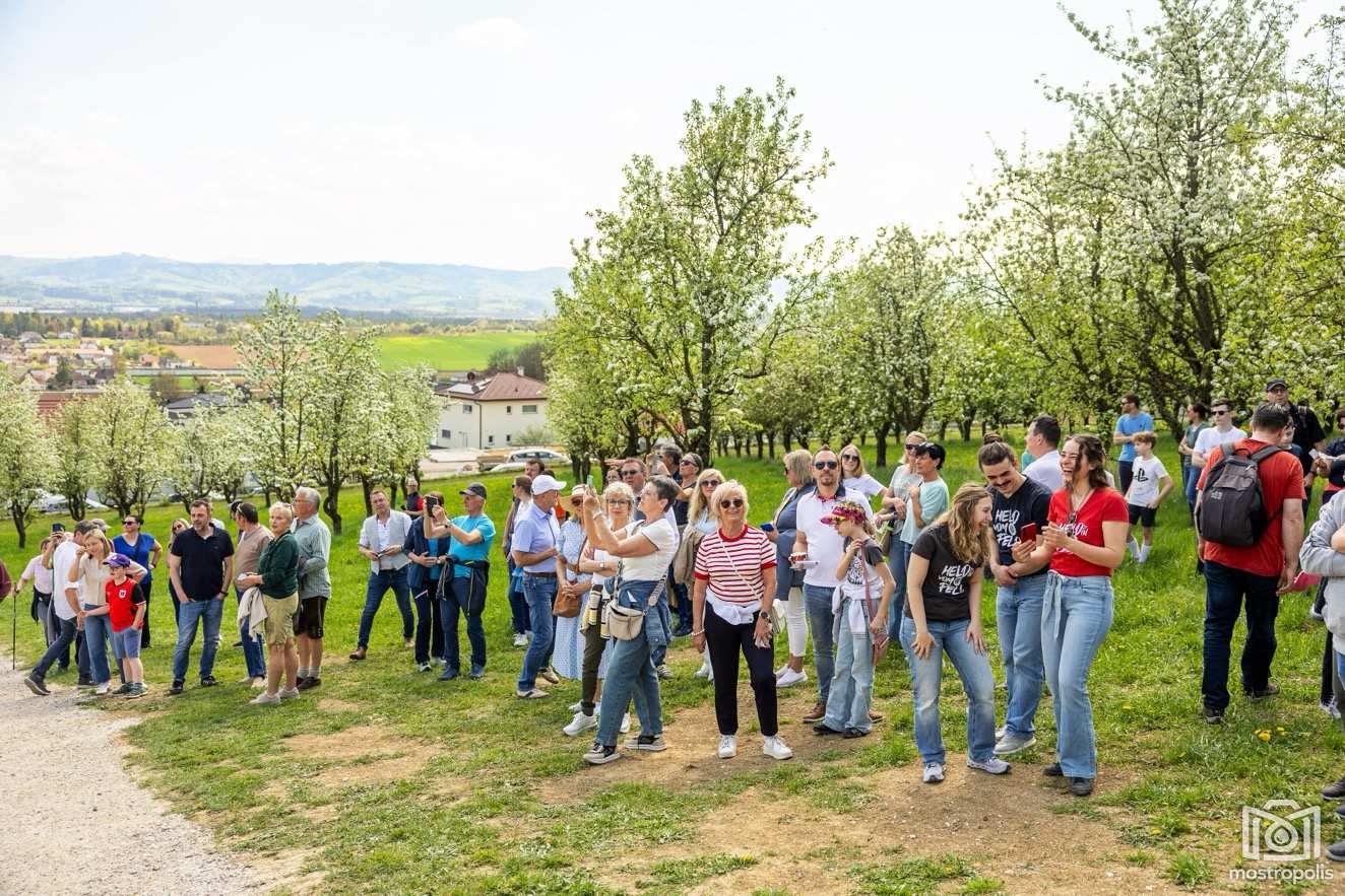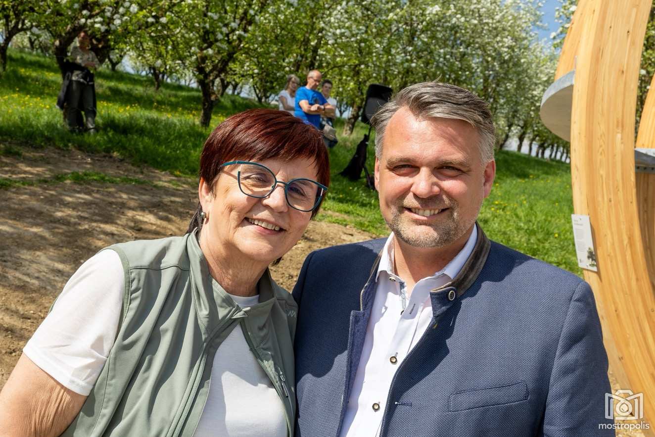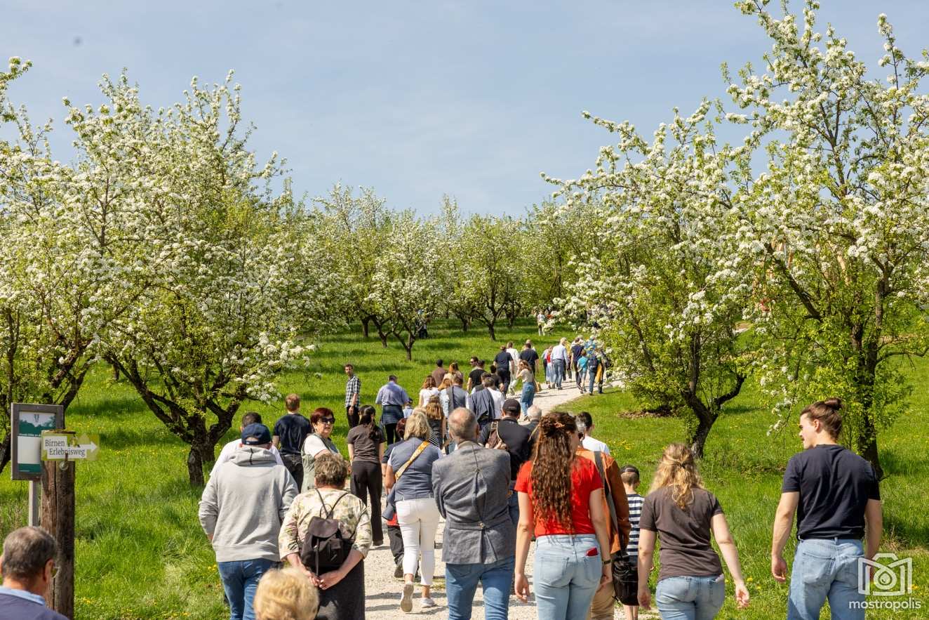 Bürgermeisterin und Moststraße-Obfrau Michaela Hinterholzer war an diesem Tag aus mehreren Gründen überglücklich: zum einen ob der Umsetzung des Projekts, wegen des Kaiserwetters und der Tatsache, dass punktgenau zur Eröffnung die Birnbäume in voller Blütenpracht standen und nicht zuletzt ob des großen Interesses und der vielen Besucher und Besucherinnen.