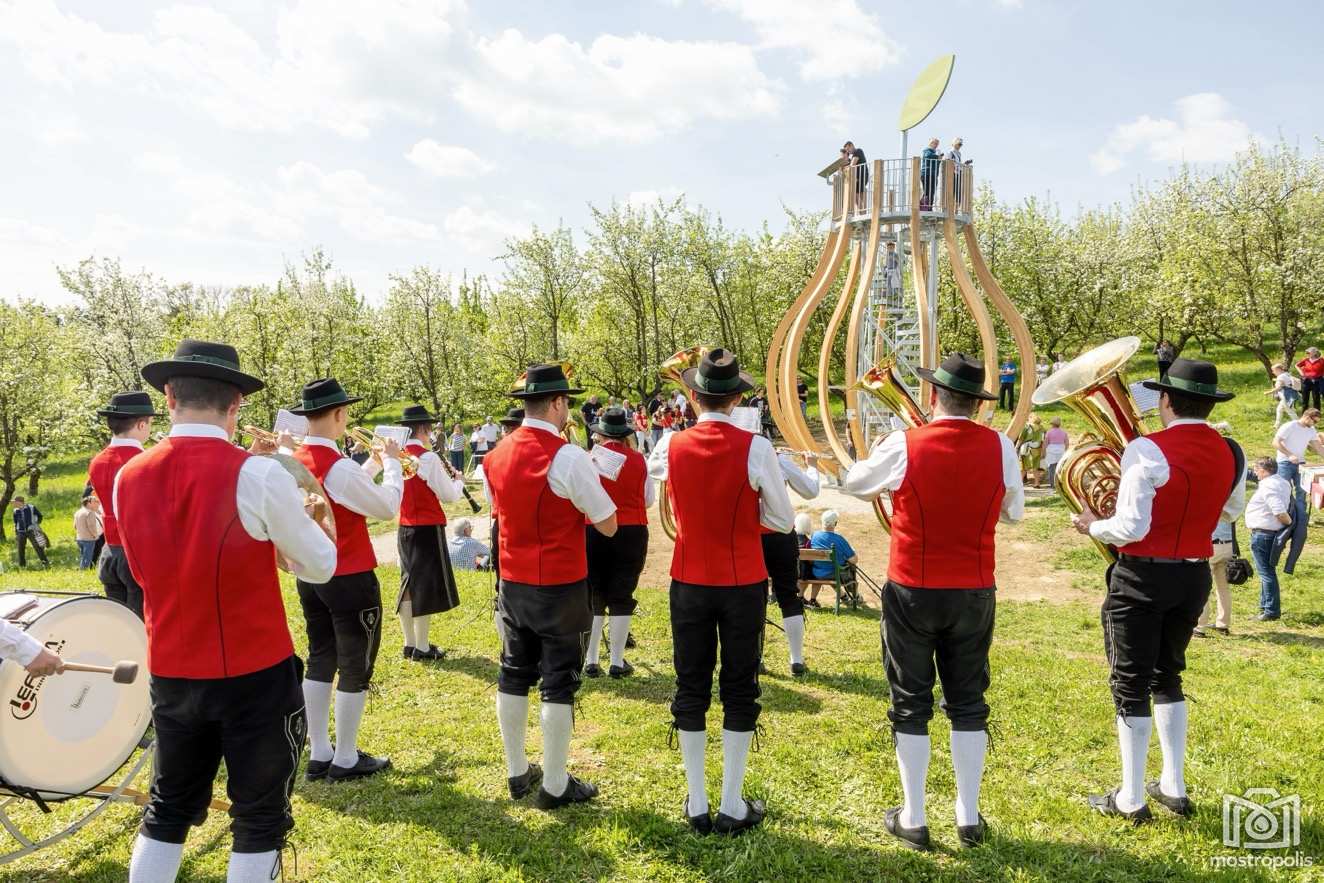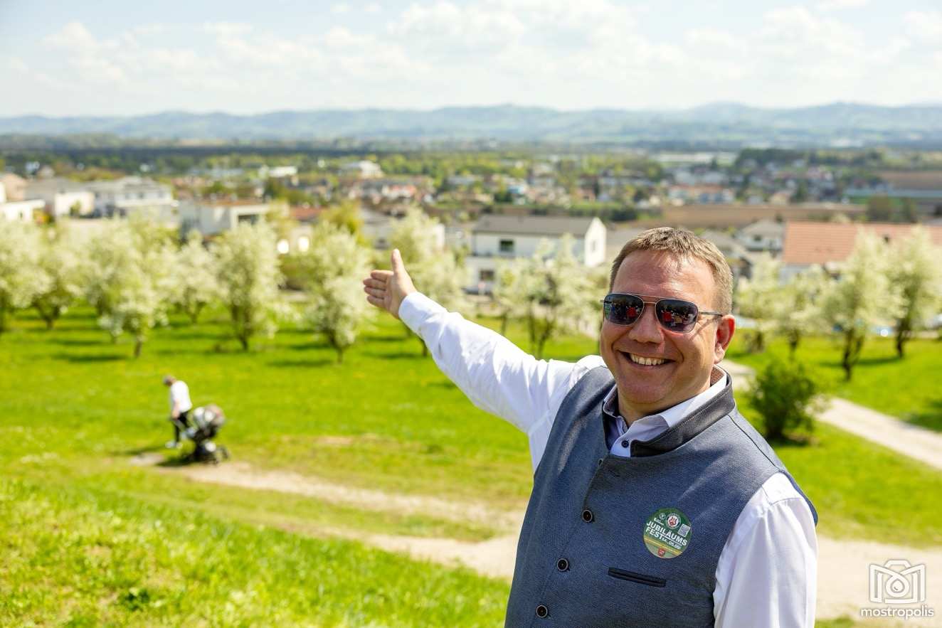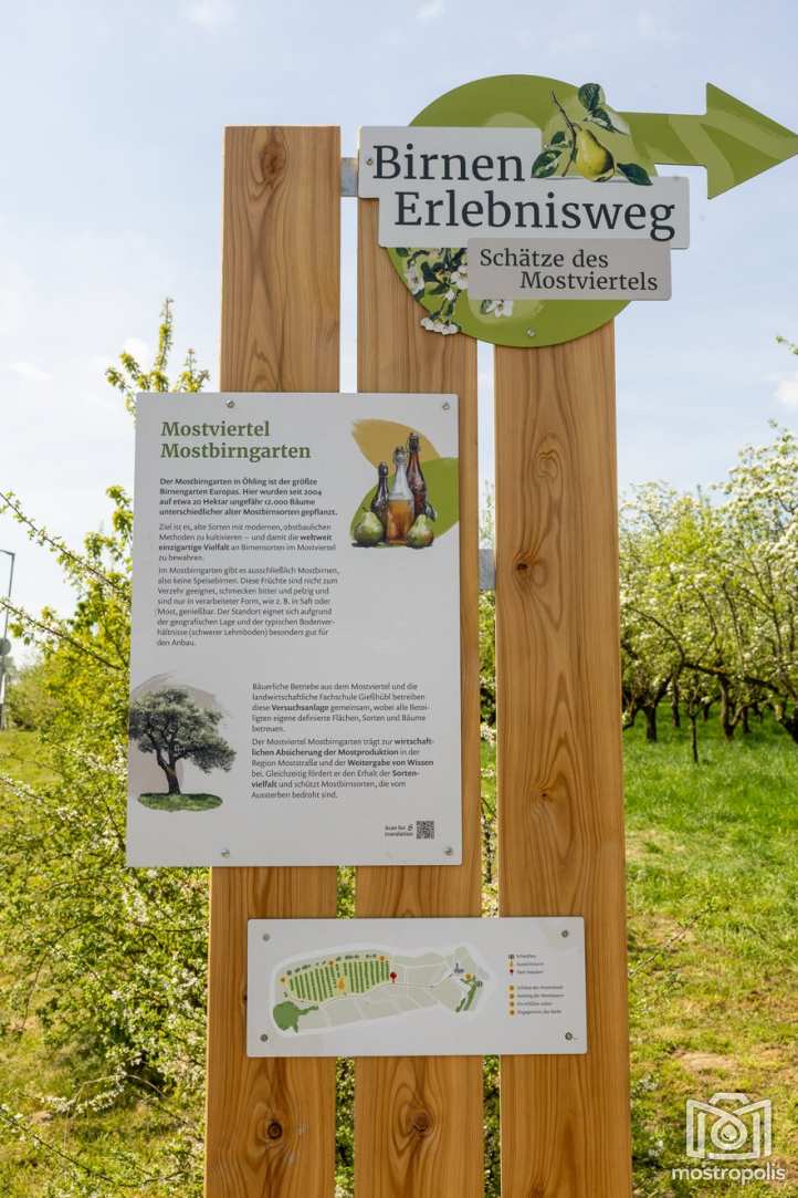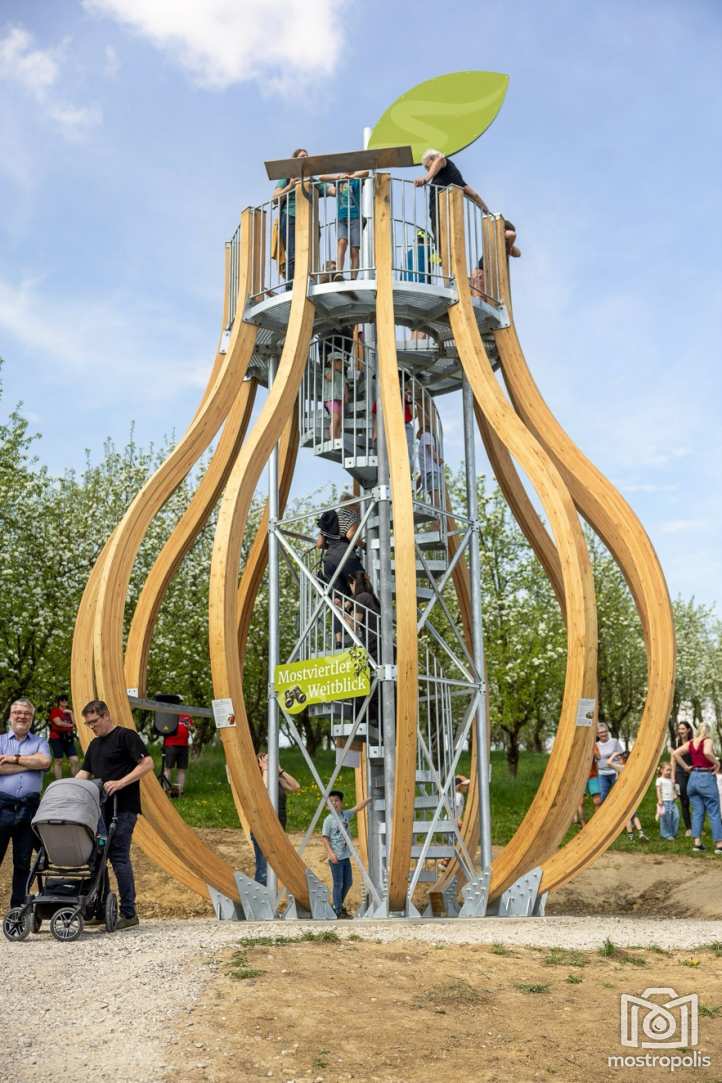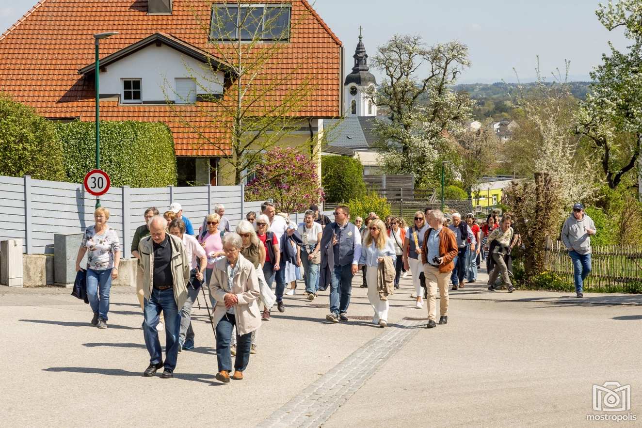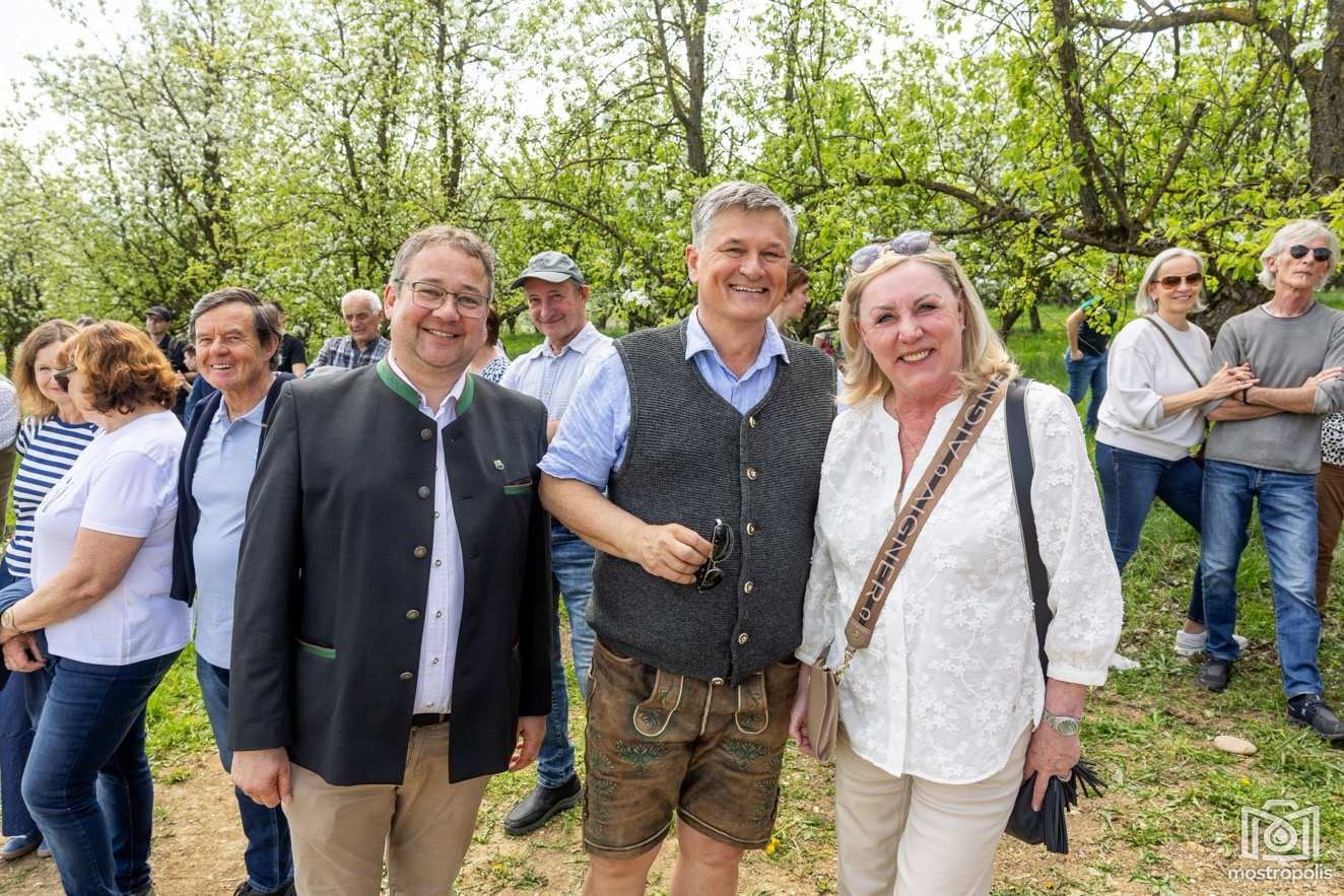 Bürgermeisterin und Moststraße-Obfrau Michaela Hinterholzer war an diesem Tag aus mehreren Gründen überglücklich: zum einen ob der Umsetzung des Projekts, wegen des Kaiserwetters und der Tatsache, dass punktgenau zur Eröffnung die Birnbäume in voller Blütenpracht standen und nicht zuletzt ob des großen Interesses und der vielen Besucher und Besucherinnen.