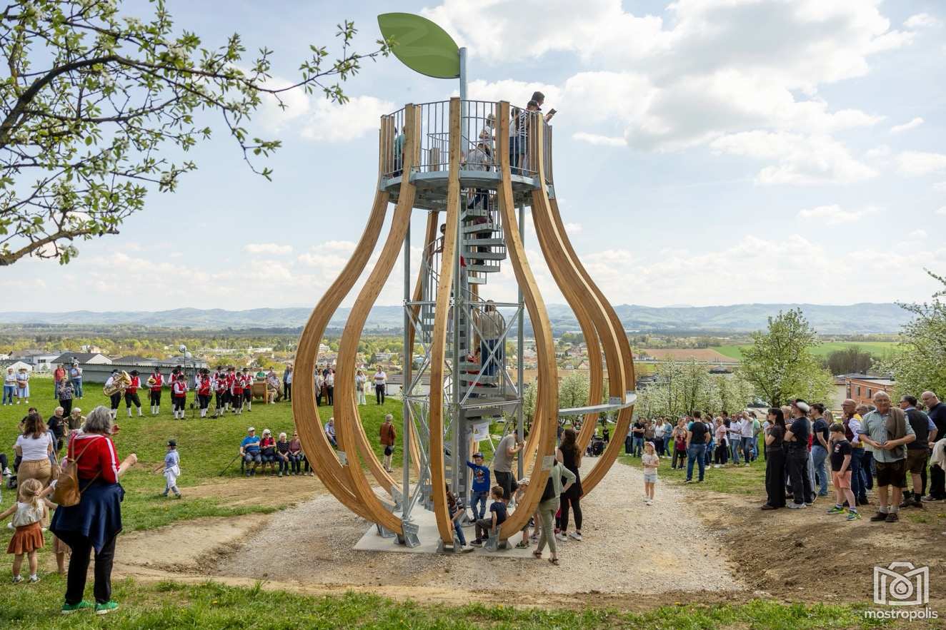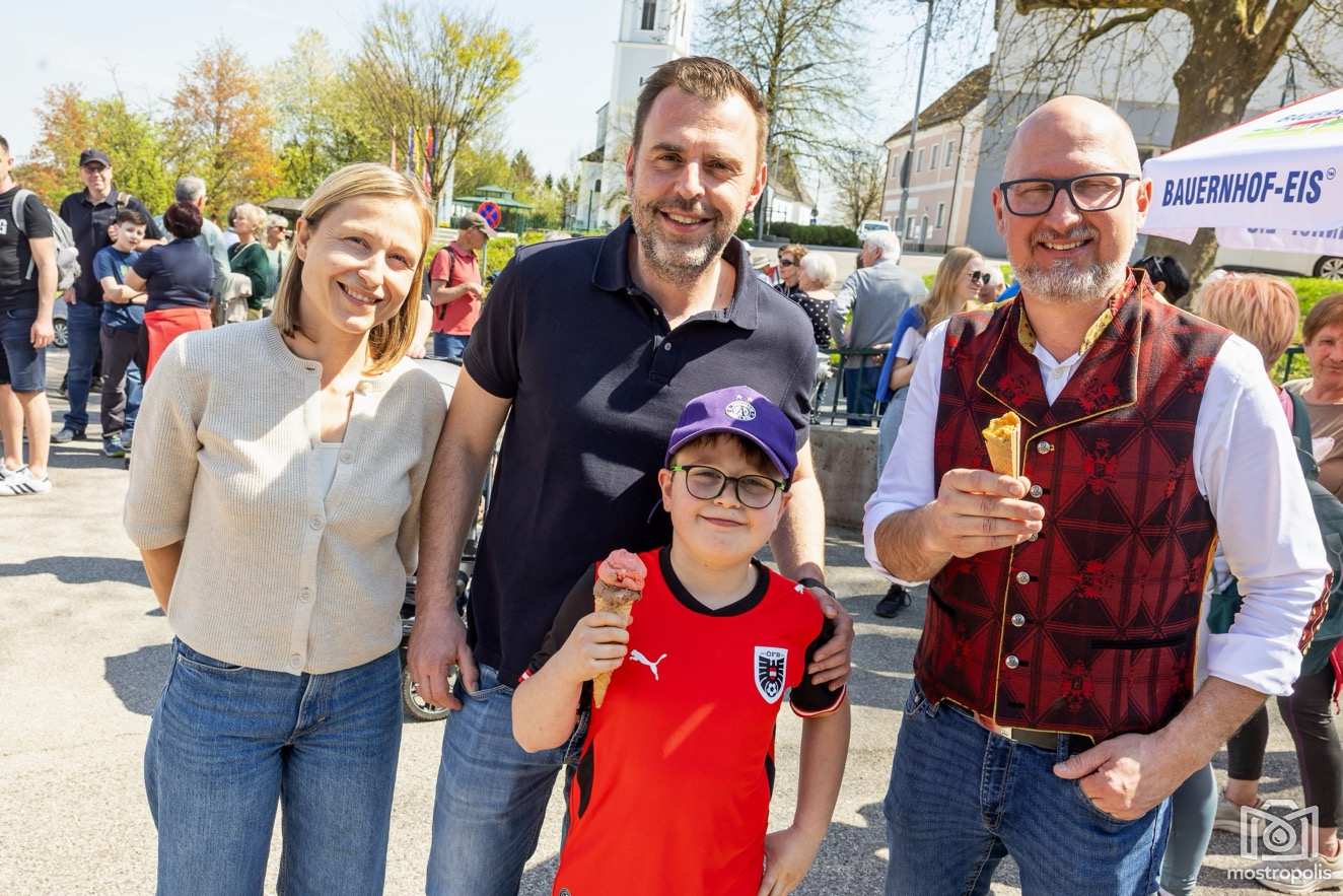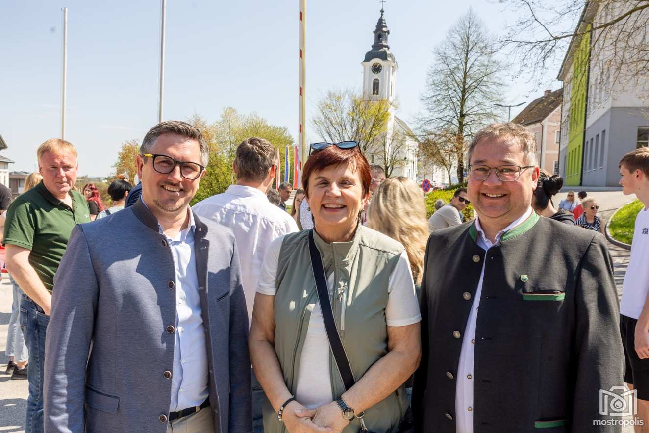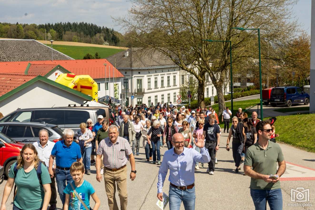 Bürgermeisterin und Moststraße-Obfrau Michaela Hinterholzer war an diesem Tag aus mehreren Gründen überglücklich: zum einen ob der Umsetzung des Projekts, wegen des Kaiserwetters und der Tatsache, dass punktgenau zur Eröffnung die Birnbäume in voller Blütenpracht standen und nicht zuletzt ob des großen Interesses und der vielen Besucher und Besucherinnen.
