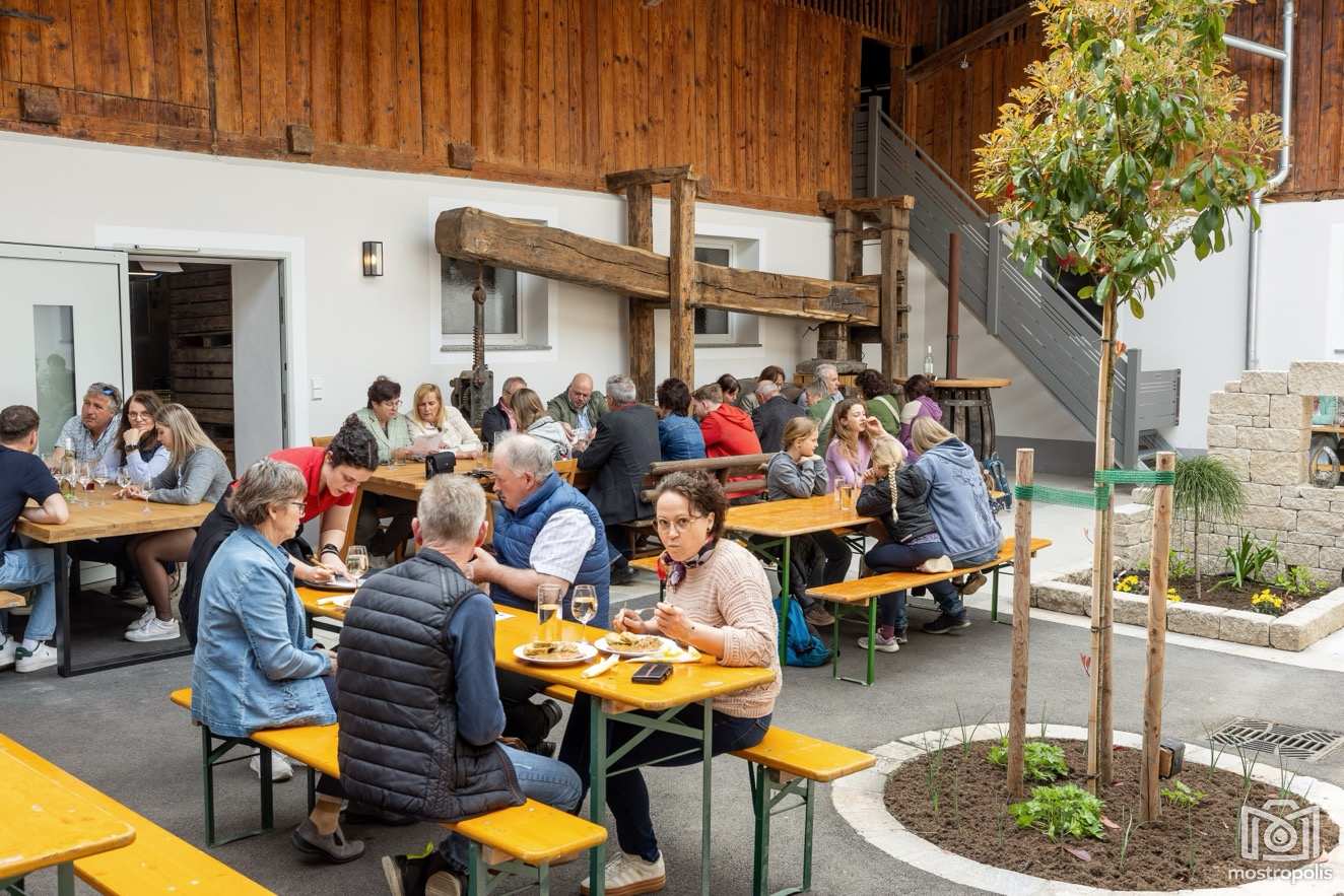 Die Mostbarone Bernhard und Jürgen Datzberger sind nicht nur erfolgreiche Produzenten und Direktvermarkter, sondern auch als Botschafter einer ganzen Region bekannt und geschätzt. Ihre Moste, Säfte und Edelbrände räumen nationale wie internationale Preise ab und konnten am Tag des Mostes ausgiebig verkostet werden. Aber auch kulinarisch wurde wieder einiges geboten, u.a. Lamm vom Grill, Mostbratl und himmlische Mehlspeisen. Und für den zusätzlichen Schwung sorgte heuer die Trachtenkapelle St. Georgen am Ybbsfelde.