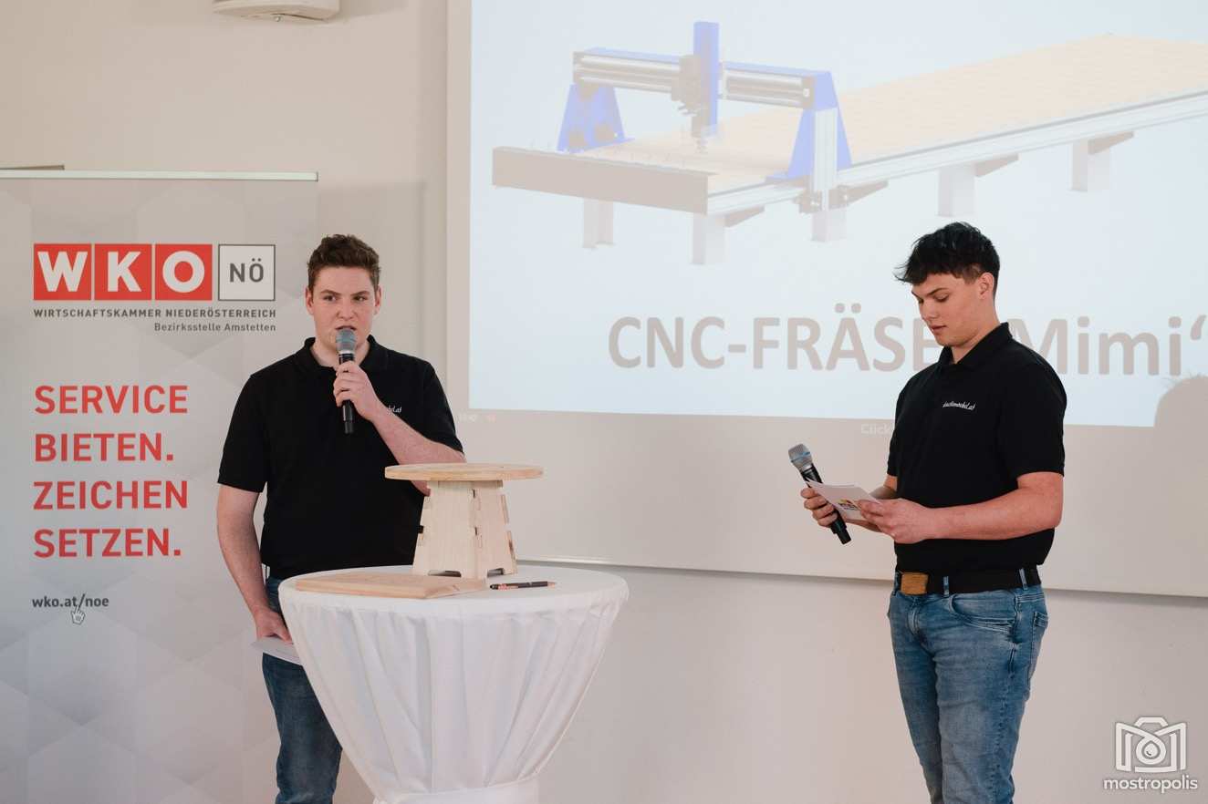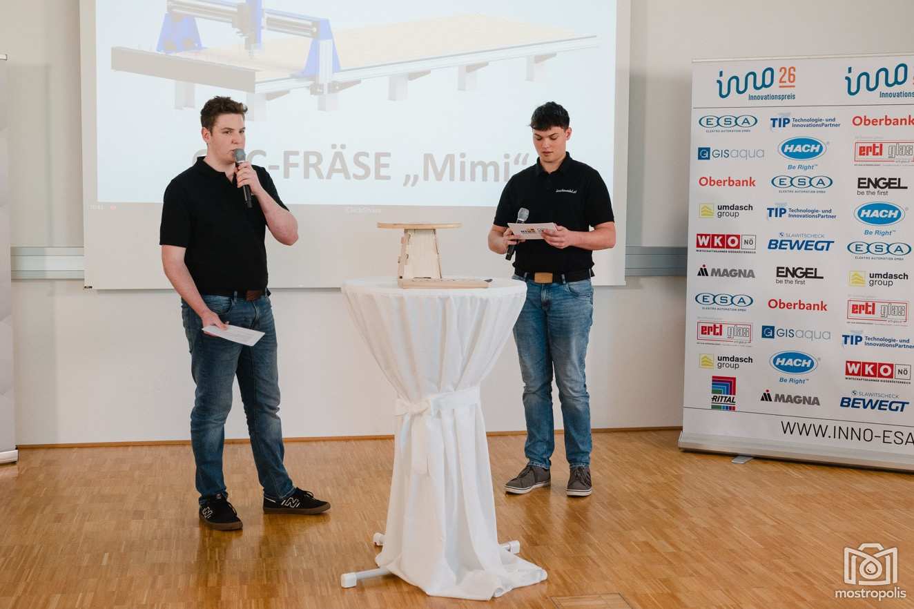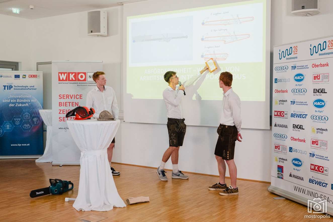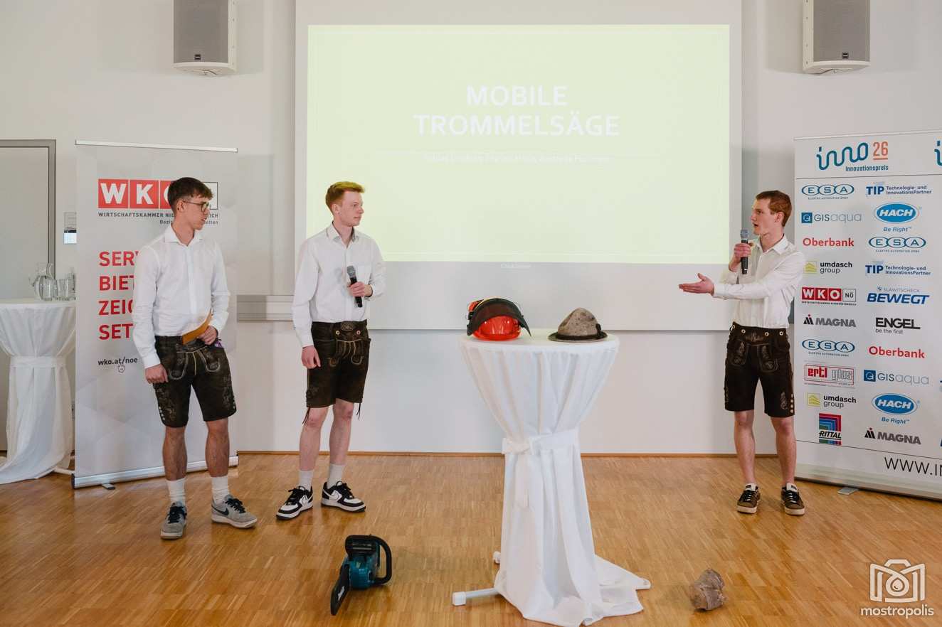 Ein besonders überzeugender Beitrag kam von der HTL Waidhofen an der Ybbs. Das Projekt „Mobile Trommelsäge“ von Tobias Lindner, Florian Hosa und Andreas Fürlinger konnte sich in der Gesamtwertung durchsetzen und überzeugte die Jury. Das Siegerteam erhielt 3.000 Euro Preisgeld und sicherte somit der HTL Waidhofen an der Ybbs ebenfalls als Siegerschule einen Scheck in der Höhe von 2.000 EUR.