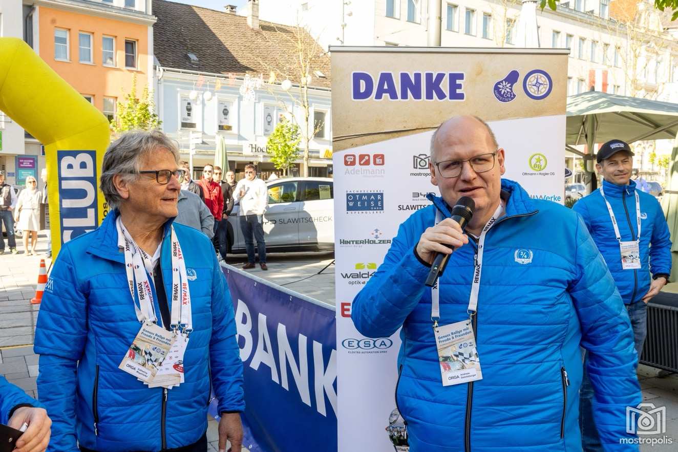 Club 41 Amstetten Präsident Andreas Gebetsberger dankte zuallererst dem Leading Team Hans Jesacher, Christian Weinfurter und Mario Eletzhofer sowie allen engagierten Clubkollegen und selbstverständlich allen TeilnehmerInnen. Hans Jesacher sprach ebenfalls allen Beteiligten großes Lob aus und dankte auch allen Sponsoren für die Unterstützung: allen voran dem Hauptsponsor Dachdeckerei & Spenglerei Otmar Weise sowie Heinrich Slawitscheck, der mit BYD die Organisationsfahrzeuge bereitstellte.