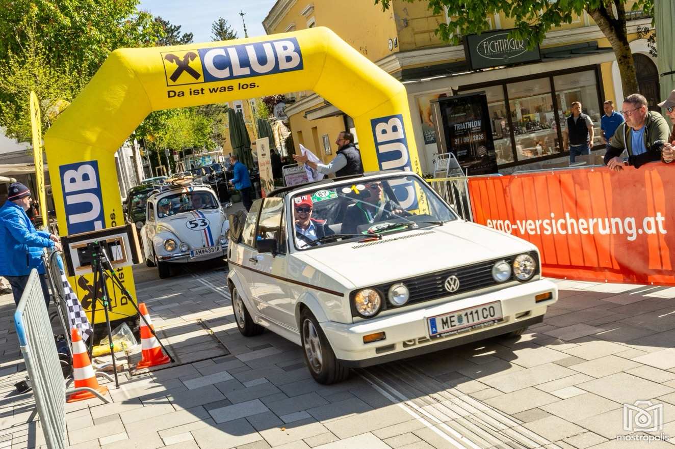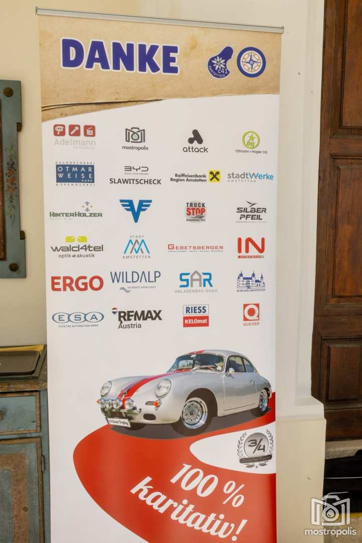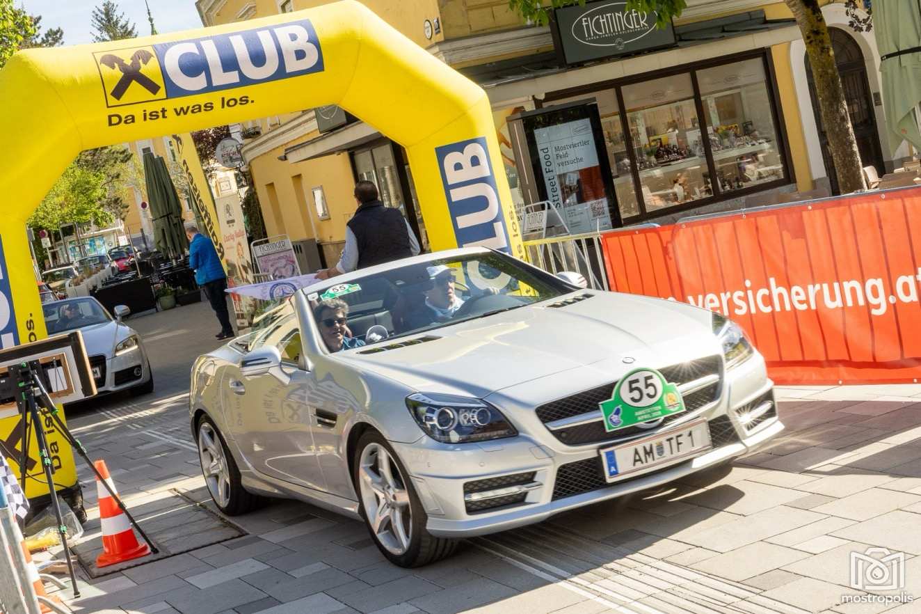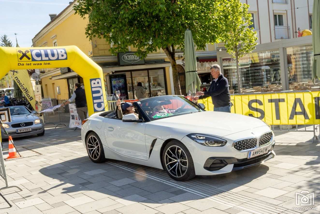Die Charity Veranstaltung führte 81 Autos durch die hügelige und blühende Landschaft des nördlichen Mostviertels und des südlichen Mühlviertels. Nach einem Frühstück im Brothers im Hotel Exel ging es am Amstettner Hauptplatz an den Start. Moderator Jürgen Adelmann und Starthelfer Vzbgm. Markus Brandstetter sorgten mit Unterstützung der Polizei für einen reiblungslosen Start. Dann ging es zur 1. und 2. Sonderprüfung nach Krummnußbaum, wo sich die StarterInnen am Kicken und Lattlschießen matchen konnten. Nach der herzlichen Begrüßung durch Alix Fraye von der Familie Hohenberg, dem Sektempfang und einer Führung durch das bezaubernde Schloß Artstetten ging es über den weltberühmten Luftkurort Rudelhäuser nach Altenmarkt, wo die TeilnehmerInnen im Gasthaus Zur Linde kulinarisch verwöhnt wurden. Gestärkt führte die Rallye weiter über Waldhausen in den Gewerbepark Bad Kreuzen, wo die 3. und 4. Sonderprüfung bereits wartete: zuerst drei Luftfilter werden und danach die Fahrzeuge präzise positionieren. Kurz vor dem Ziel im Hauer-Hof in Ardagger mussten die StarterInnen einen Ball auf einem Tennisschläger während der Fahrt auf einem kurvenreichen Parcours absolvieren.