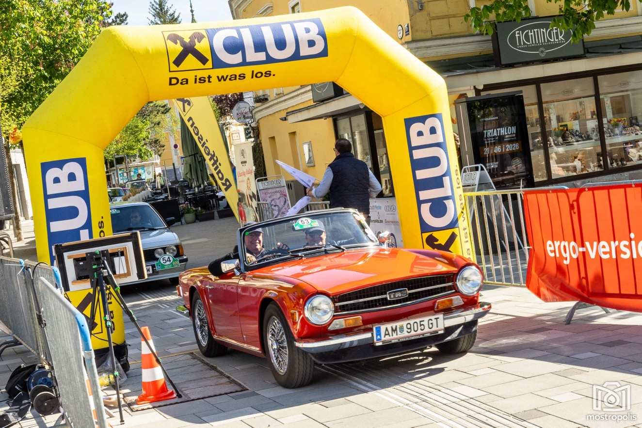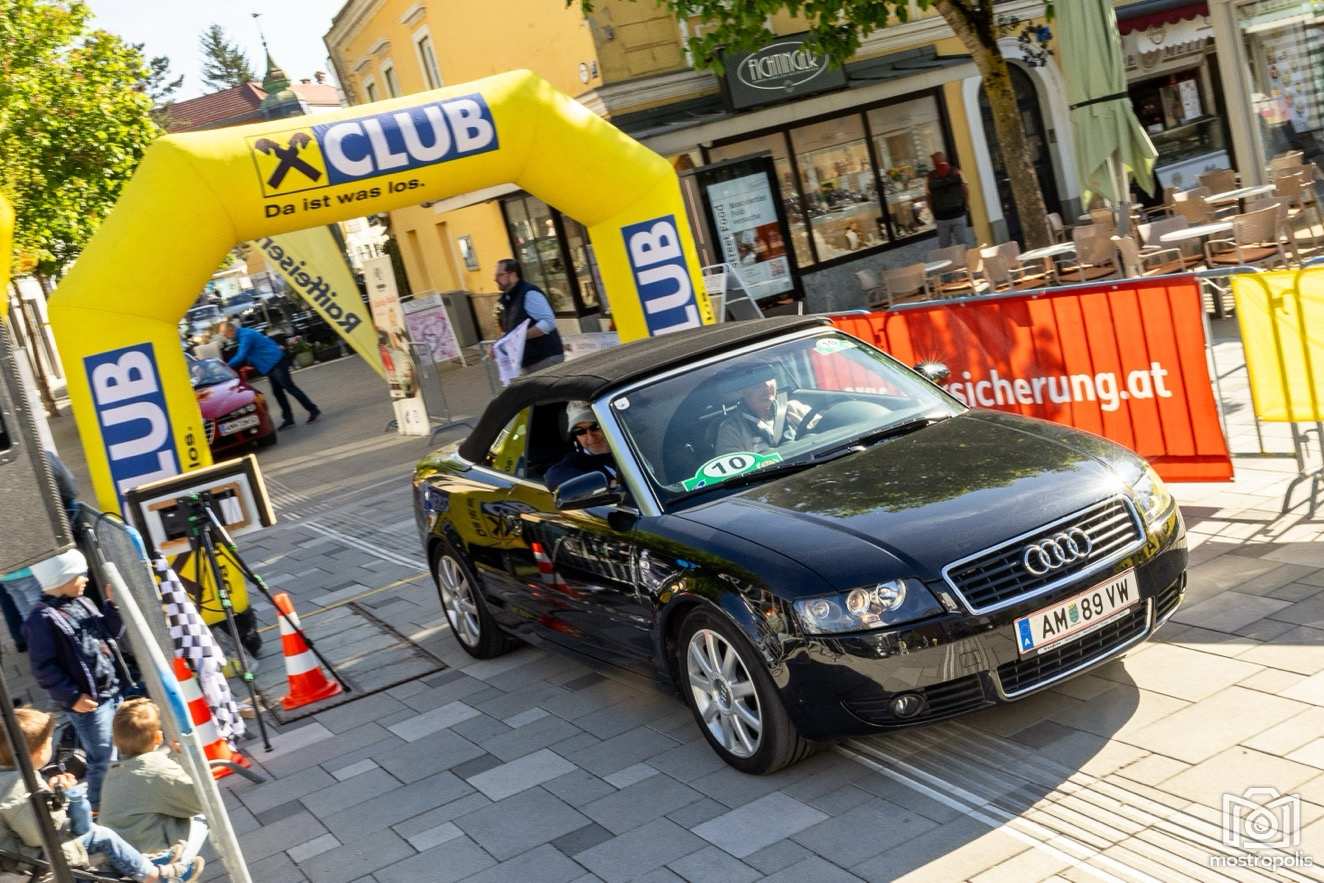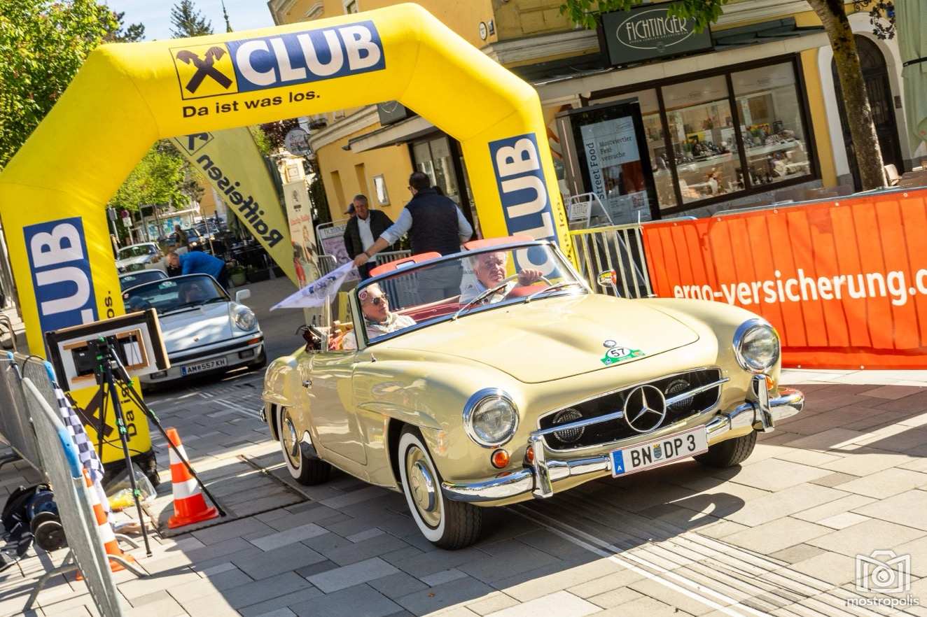 Die Charity Veranstaltung führte 81 Autos durch die hügelige und blühende Landschaft des nördlichen Mostviertels und des südlichen Mühlviertels. Nach einem Frühstück im Brothers im Hotel Exel ging es am Amstettner Hauptplatz an den Start. Moderator Jürgen Adelmann und Starthelfer Vzbgm. Markus Brandstetter sorgten mit Unterstützung der Polizei für einen reiblungslosen Start. Dann ging es zur 1. und 2. Sonderprüfung nach Krummnußbaum, wo sich die StarterInnen am Kicken und Lattlschießen matchen konnten. Nach der herzlichen Begrüßung durch Alix Fraye von der Familie Hohenberg, dem Sektempfang und einer Führung durch das bezaubernde Schloß Artstetten ging es über den weltberühmten Luftkurort Rudelhäuser nach Altenmarkt, wo die TeilnehmerInnen im Gasthaus Zur Linde kulinarisch verwöhnt wurden. Gestärkt führte die Rallye weiter über Waldhausen in den Gewerbepark Bad Kreuzen, wo die 3. und 4. Sonderprüfung bereits wartete: zuerst drei Luftfilter werden und danach die Fahrzeuge präzise positionieren. Kurz vor dem Ziel im Hauer-Hof in Ardagger mussten die StarterInnen einen Ball auf einem Tennisschläger während der Fahrt auf einem kurvenreichen Parcours absolvieren.