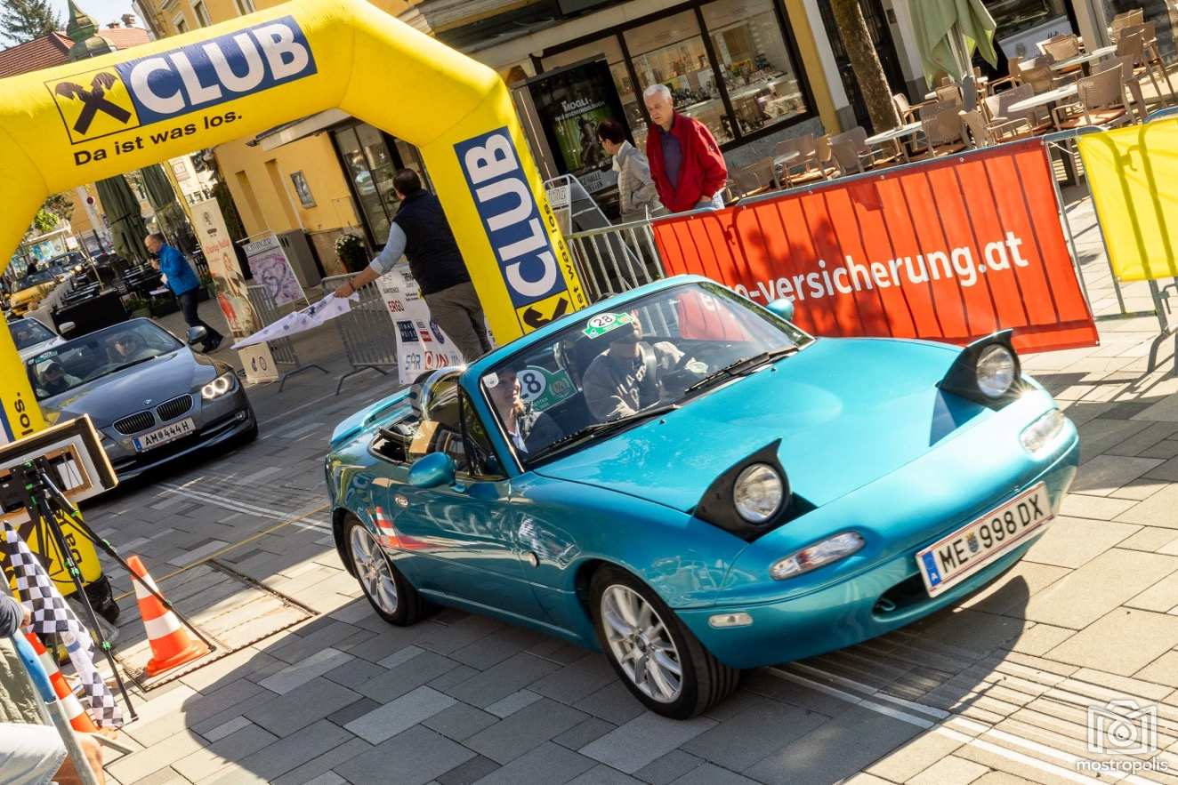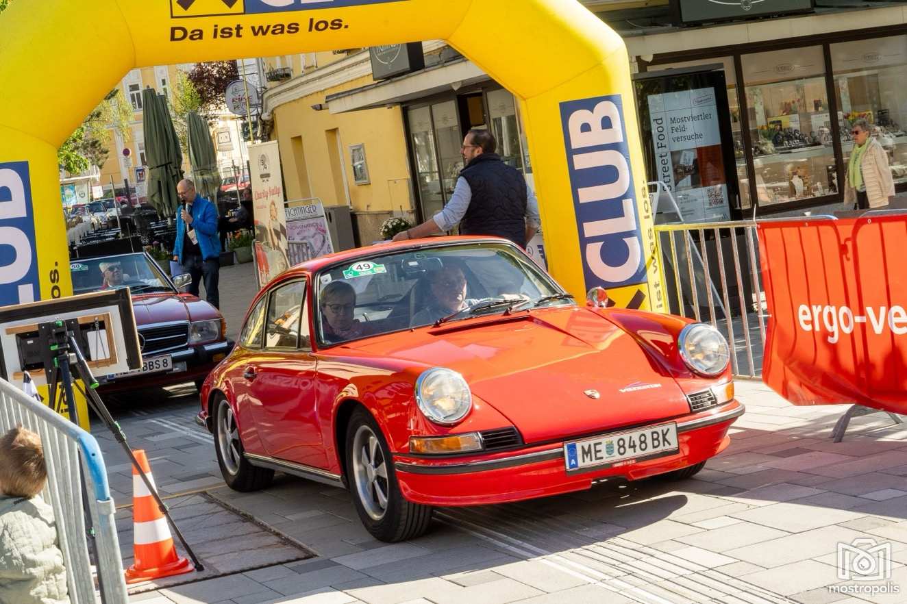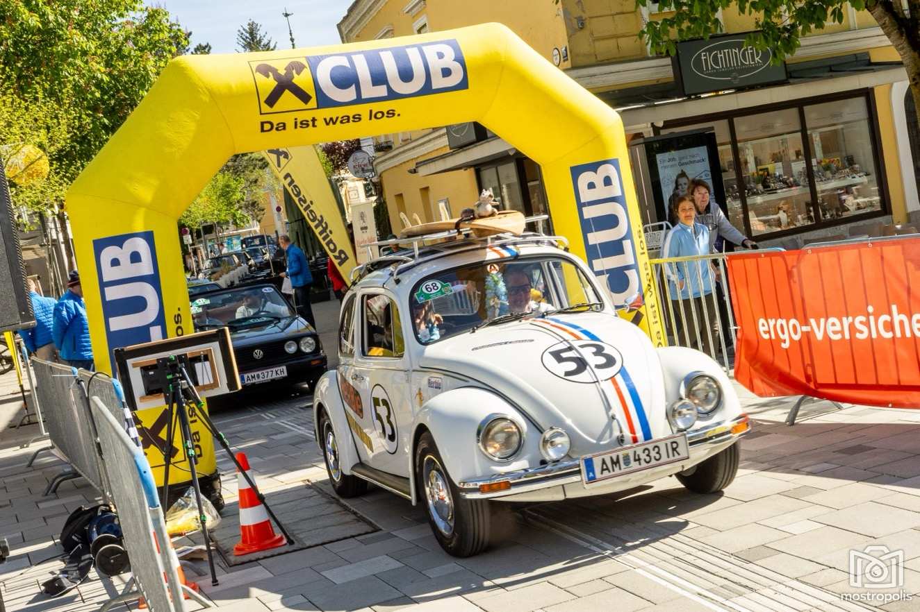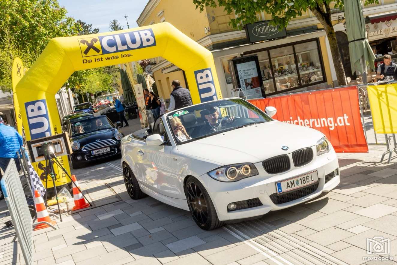 Die Charity Veranstaltung führte 81 Autos durch die hügelige und blühende Landschaft des nördlichen Mostviertels und des südlichen Mühlviertels. Nach einem Frühstück im Brothers im Hotel Exel ging es am Amstettner Hauptplatz an den Start. Moderator Jürgen Adelmann und Starthelfer Vzbgm. Markus Brandstetter sorgten mit Unterstützung der Polizei für einen reiblungslosen Start. Dann ging es zur 1. und 2. Sonderprüfung nach Krummnußbaum, wo sich die StarterInnen am Kicken und Lattlschießen matchen konnten. Nach der herzlichen Begrüßung durch Alix Fraye von der Familie Hohenberg, dem Sektempfang und einer Führung durch das bezaubernde Schloß Artstetten ging es über den weltberühmten Luftkurort Rudelhäuser nach Altenmarkt, wo die TeilnehmerInnen im Gasthaus Zur Linde kulinarisch verwöhnt wurden. Gestärkt führte die Rallye weiter über Waldhausen in den Gewerbepark Bad Kreuzen, wo die 3. und 4. Sonderprüfung bereits wartete: zuerst drei Luftfilter werden und danach die Fahrzeuge präzise positionieren. Kurz vor dem Ziel im Hauer-Hof in Ardagger mussten die StarterInnen einen Ball auf einem Tennisschläger während der Fahrt auf einem kurvenreichen Parcours absolvieren.
