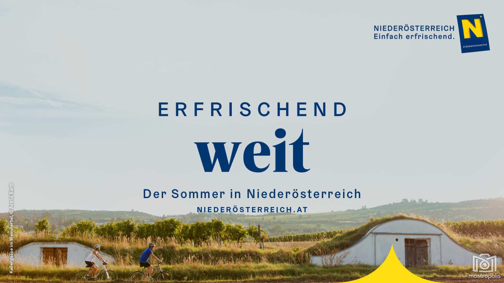 In den letzten Wochen wurde in der Niederösterreich Werbung intensiv an den Sujets der neuen Werbelinie gearbeitet. Die Anforderungen dafür waren klar: Die Attribute „erfrischend“, „authentisch“ und „anregend“ finden sich in einer frischen, modernen und klaren Linie wieder. Das weite Land, die enorme Vielfalt an Landschaften und Naturräumen, die regionale Kulinarik und anregende Kunst rücken in den Mittelpunkt.
