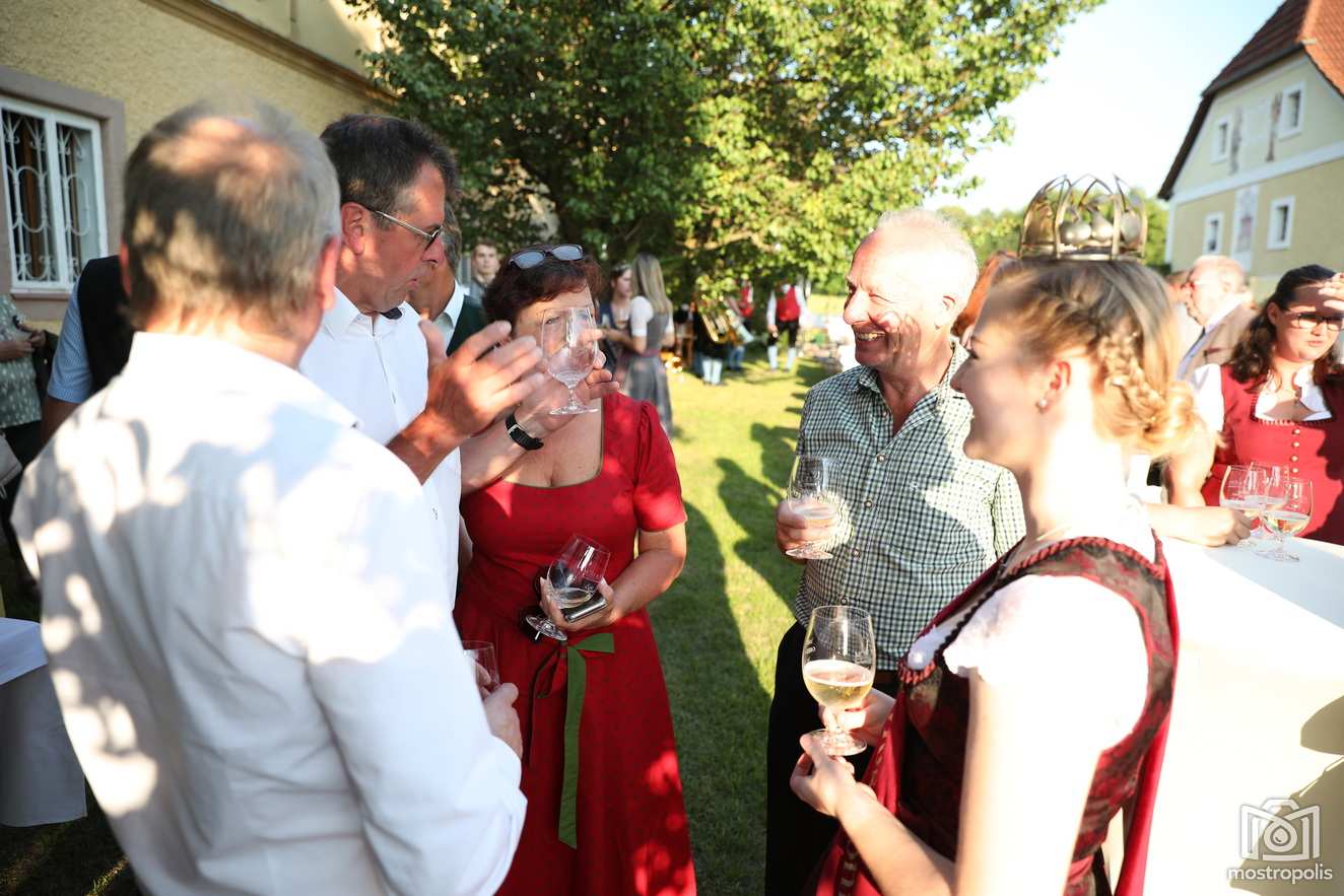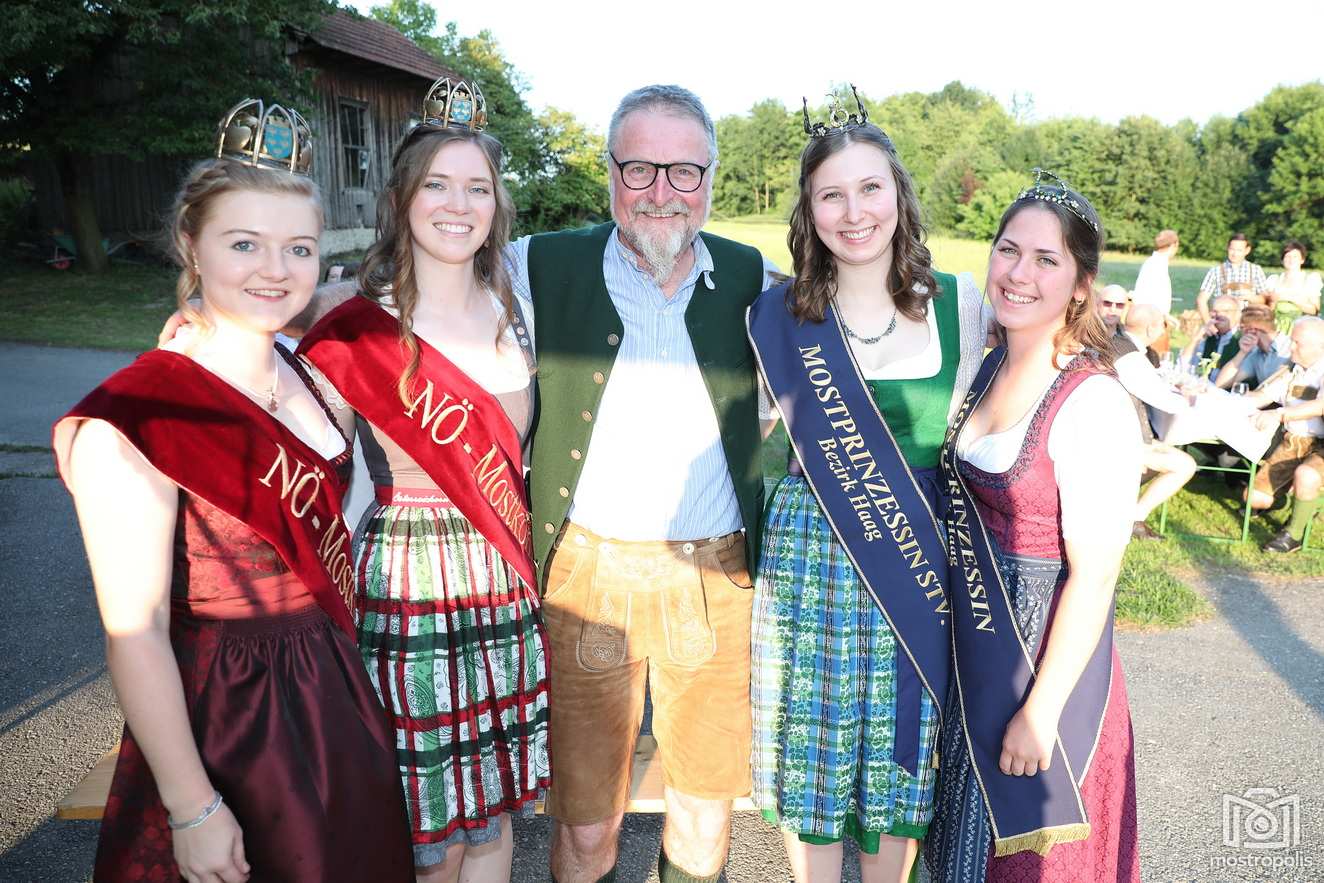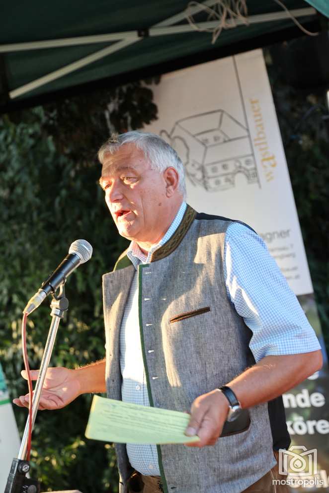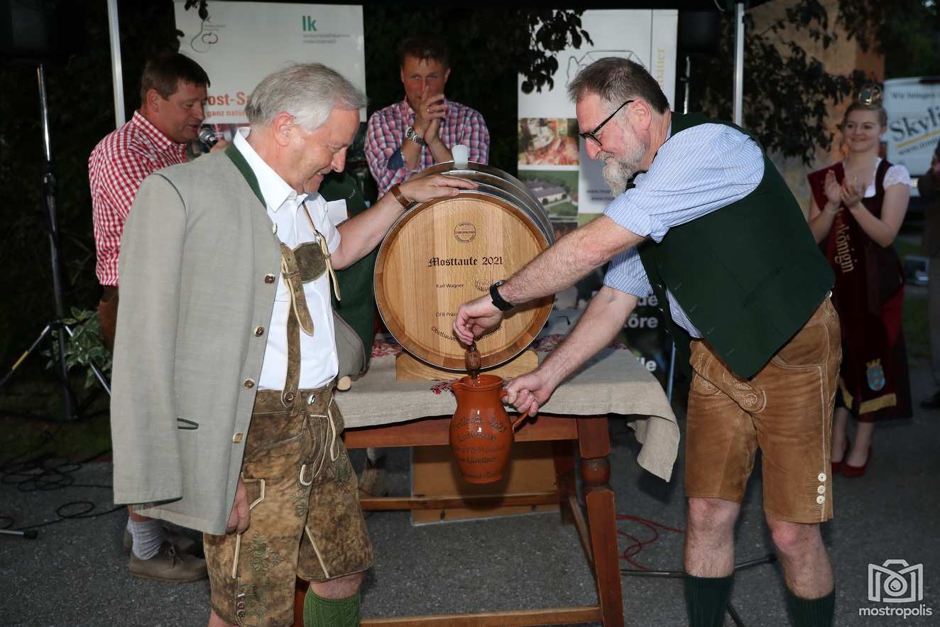 Nach der musikalischen Einstimmung durch eine Abordnung der Trachtenmusikkapelle Strengberg unter der Leitung von Obmann Leopold Kitzberger begrüßte Obmann Hiebl gemeinsam mit der NÖ Mostkönigin Sigrid I. und ihrer Stellvertreterin Theresa I. die Festgäste. Danach folgten Grußworte von Bürgermeister Johann Bruckner und Gastgeber Wagner. Im Anschluss interviewte GF Ennser ÖFB Präsident und Mostpate Leo Windtner sowie den Kommandanten des Jägerbataillons 12 Oberst Rudolf Halbartschlager, die beide einen starken Bezug zum Most und zur Mostkultur haben. Bevor die NÖ Mostköniginnen sowie die Mostprinzessin des Bezirks Haag Monika I. und ihre Stellvertreterin Stephanie I. gemeinsam den Taufbrief vorlasen, sprach Präsident Windtner über seine Heimat St. Florian und natürlich über die beliebte Fußballnationalmannschaft.